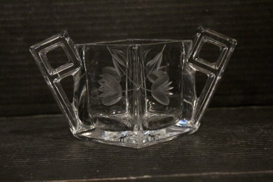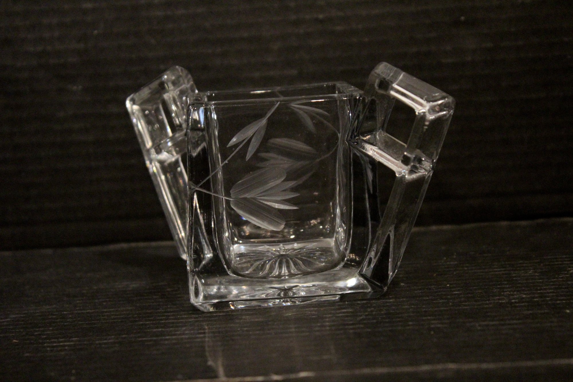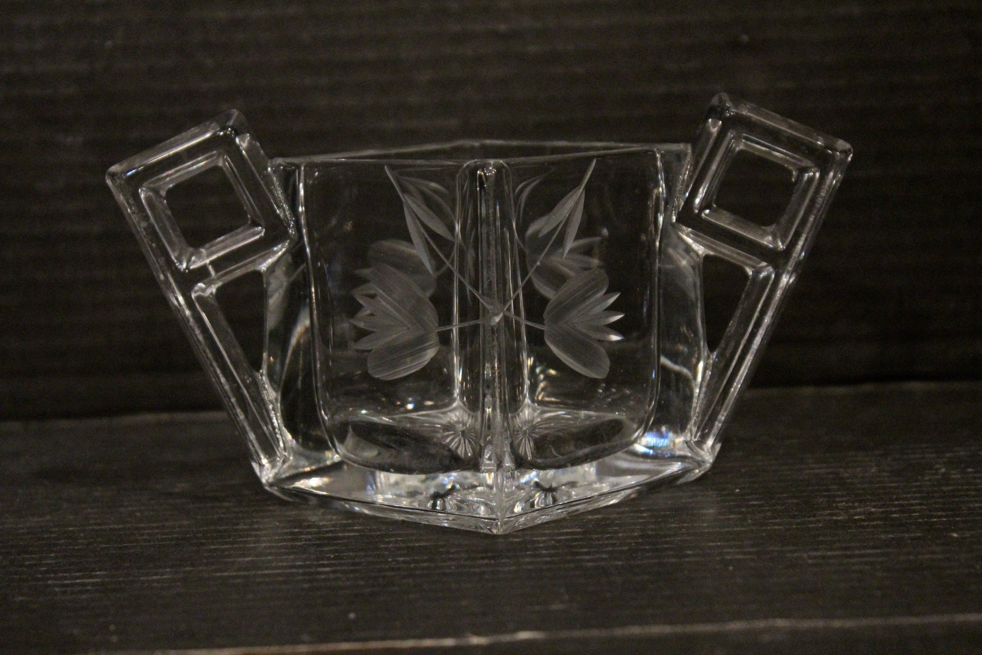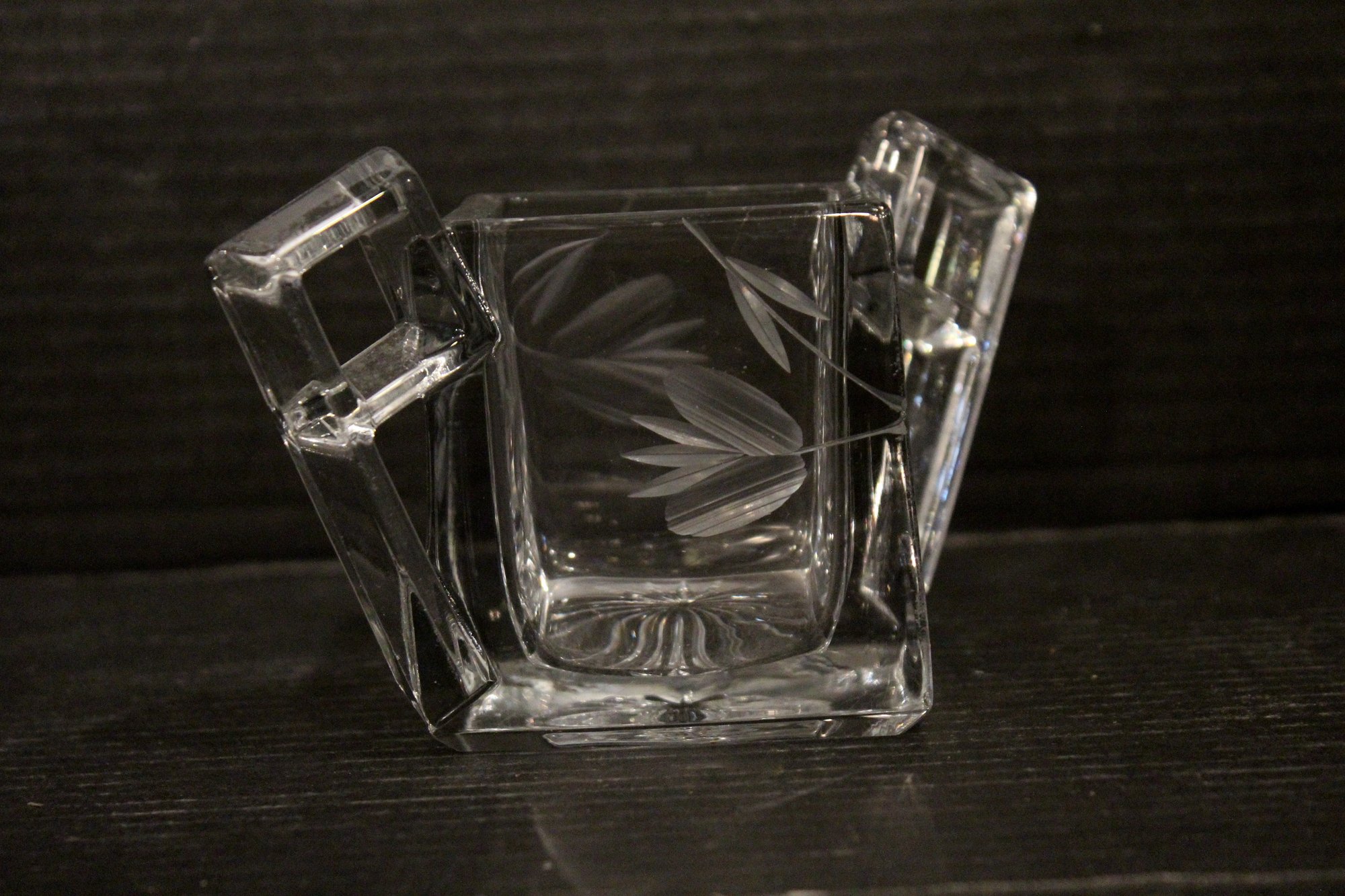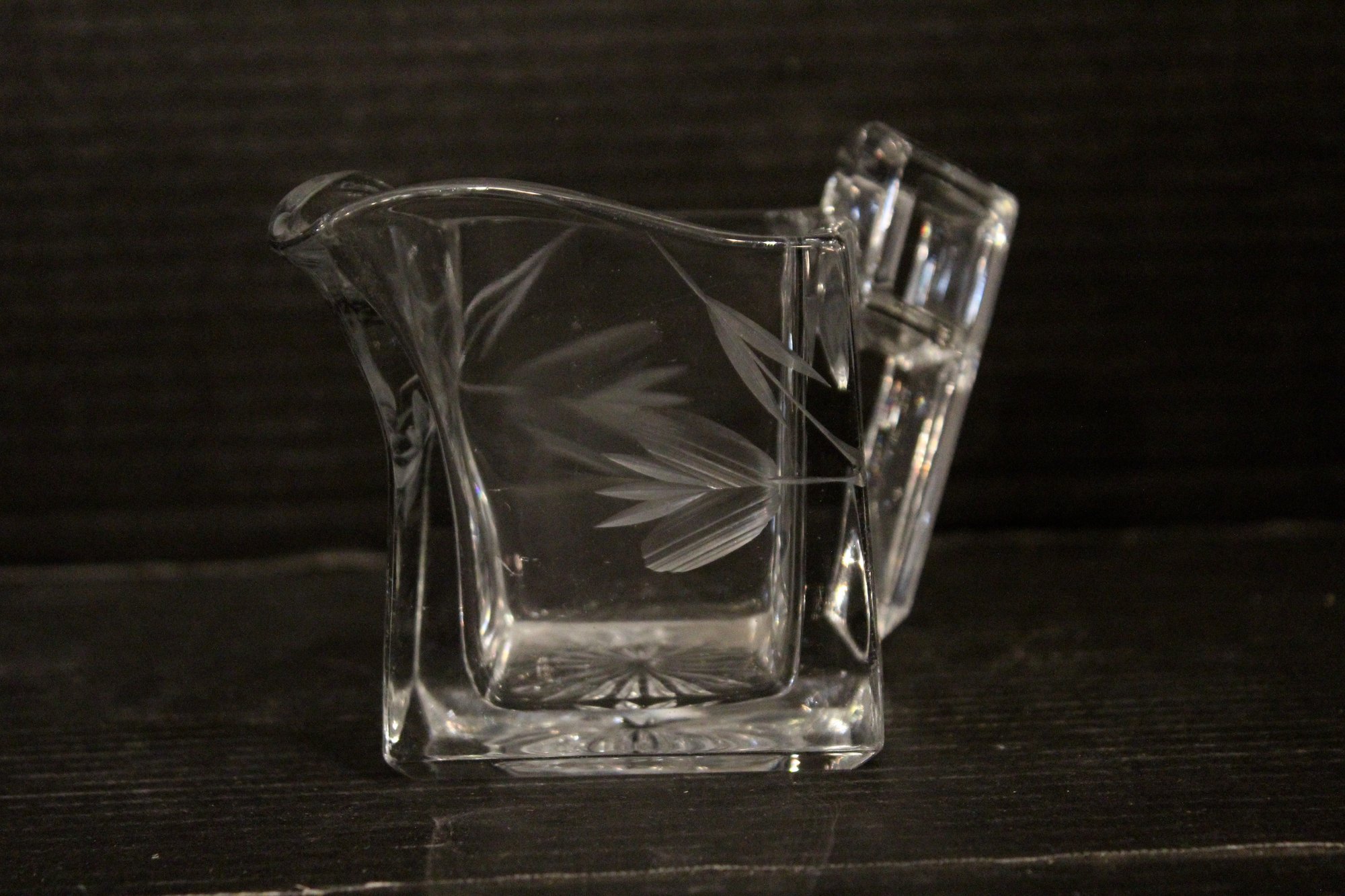 antique Heisey "Quator pattern" Art Deco etched glass creamer and sugar set 4" x 6"