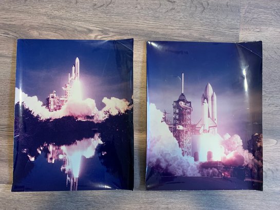Set of 2 photos from the NASA Columbia Space Shuttle launch STS-1. First launch. Full size photos 11x14