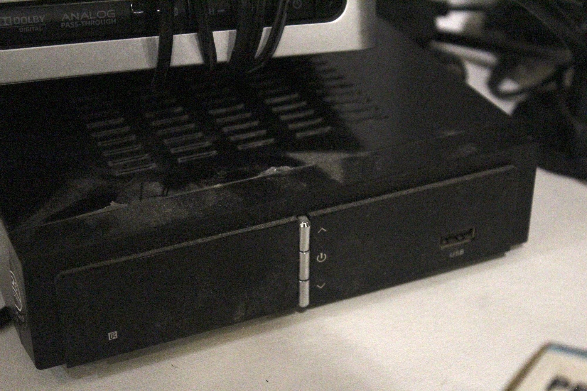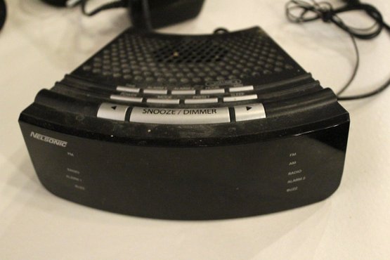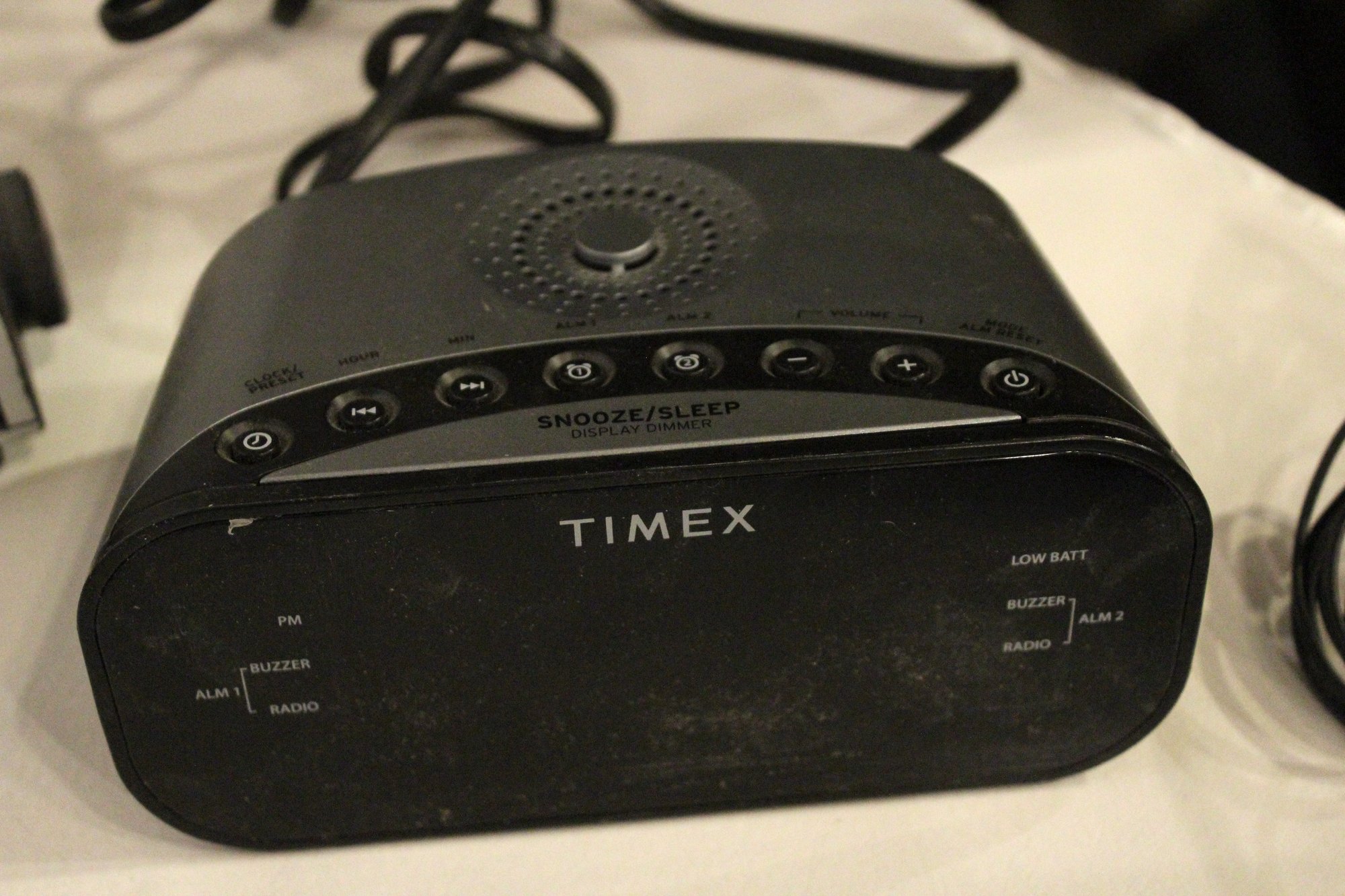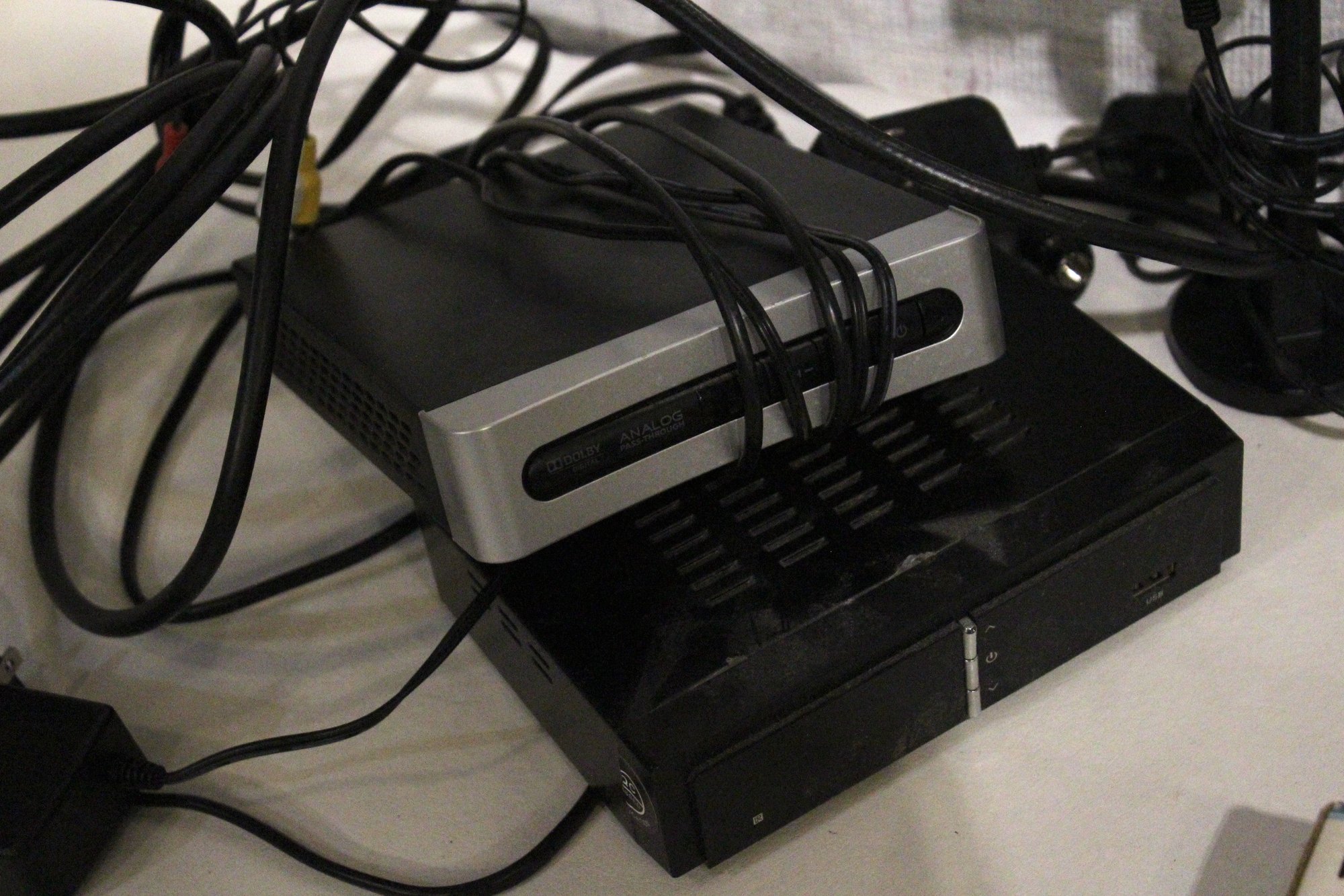 A RCA Digital to Analog Converter Box, a Digital TV Converter Box, GE Futura amplified indoor/outdoor HDTV antenna, an indoor television antenna, a vintage Archer Color Supreme II TV and FM stereo antenna, vintage Emerson AM/FM clock radio, a Timex AM/FM Dual Alarm Clock Radio, a Nelsonic Digital AM/FM Clock Radio with a built-in aux cord. These items can be shipped.