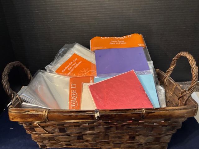 basket of gift bag for gift baskets and candy making paper - 8 packages and basket in lot