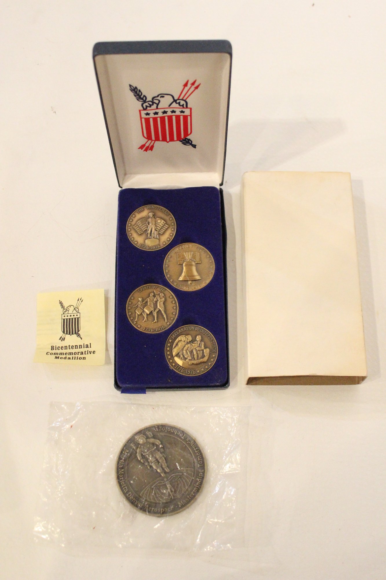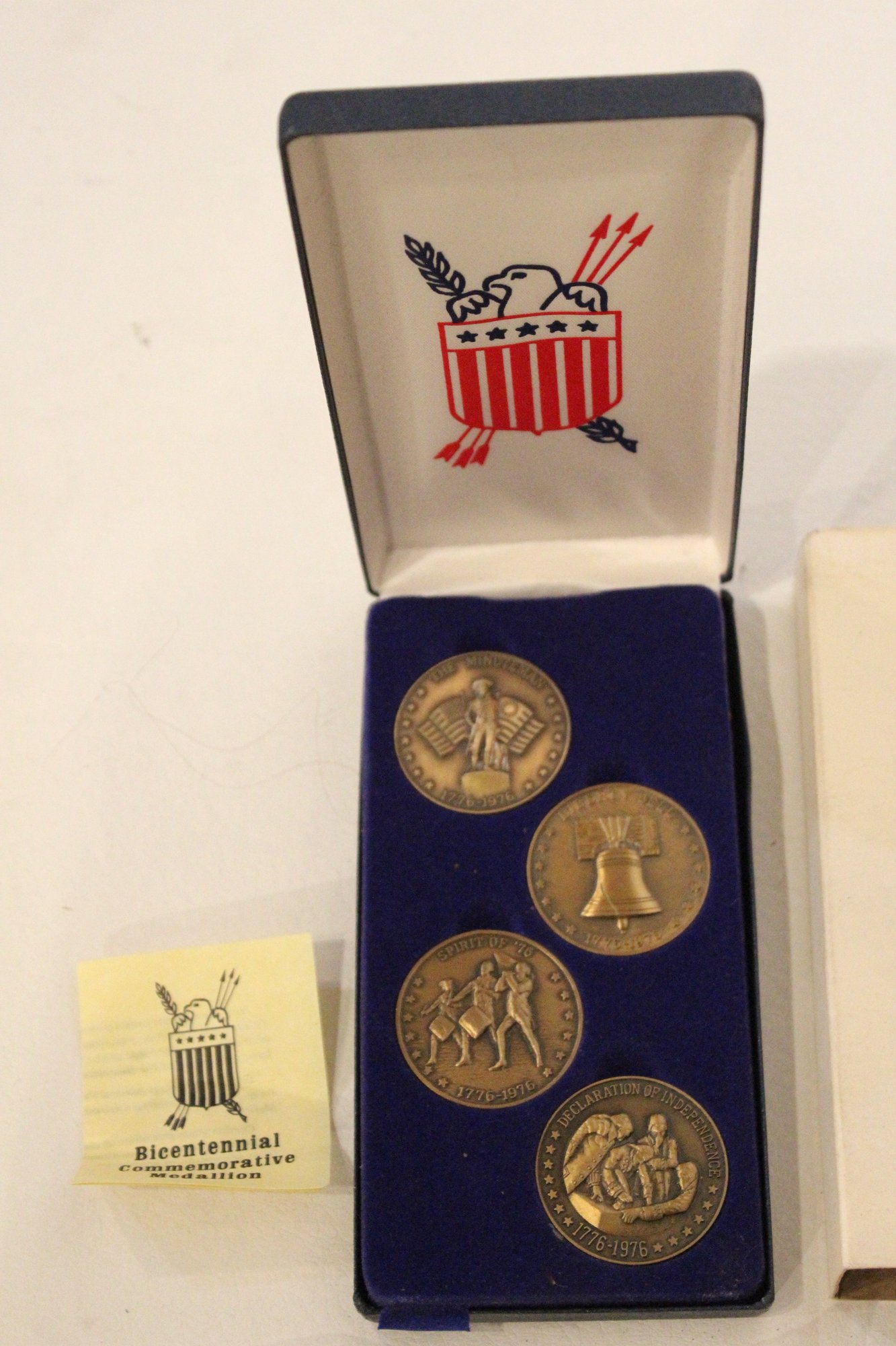 A vintage set 1776-1976 Bicentennial Commemorative Medallions. These collectibles were produced to celebrate the 200th anniversary of American independence.