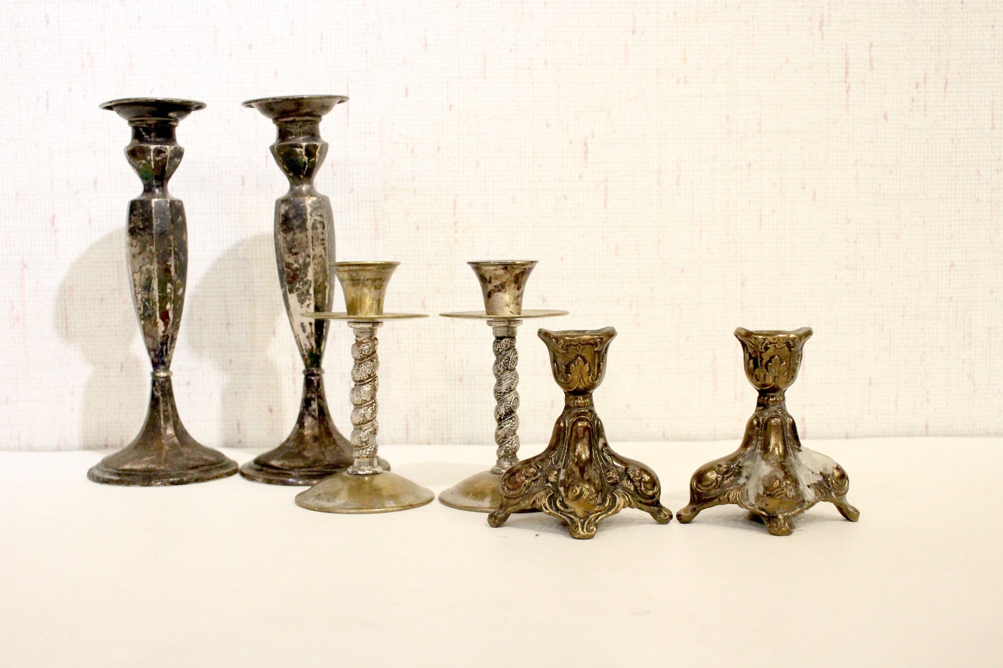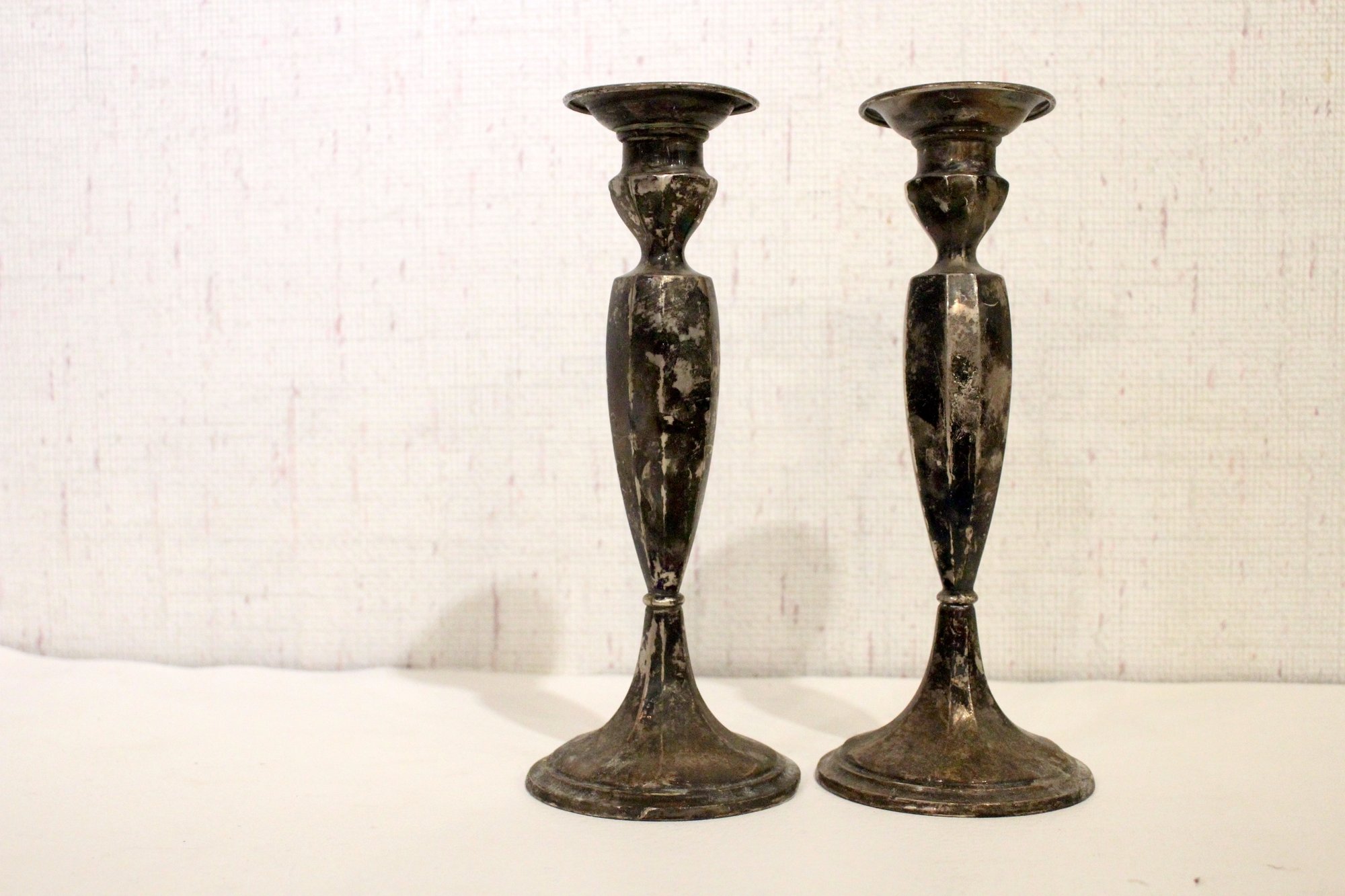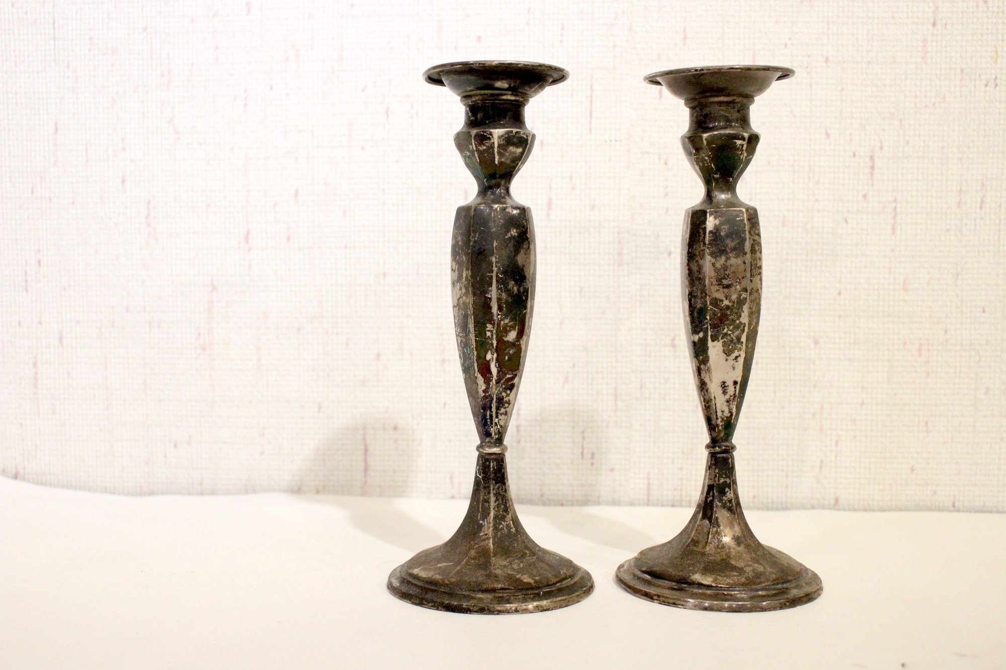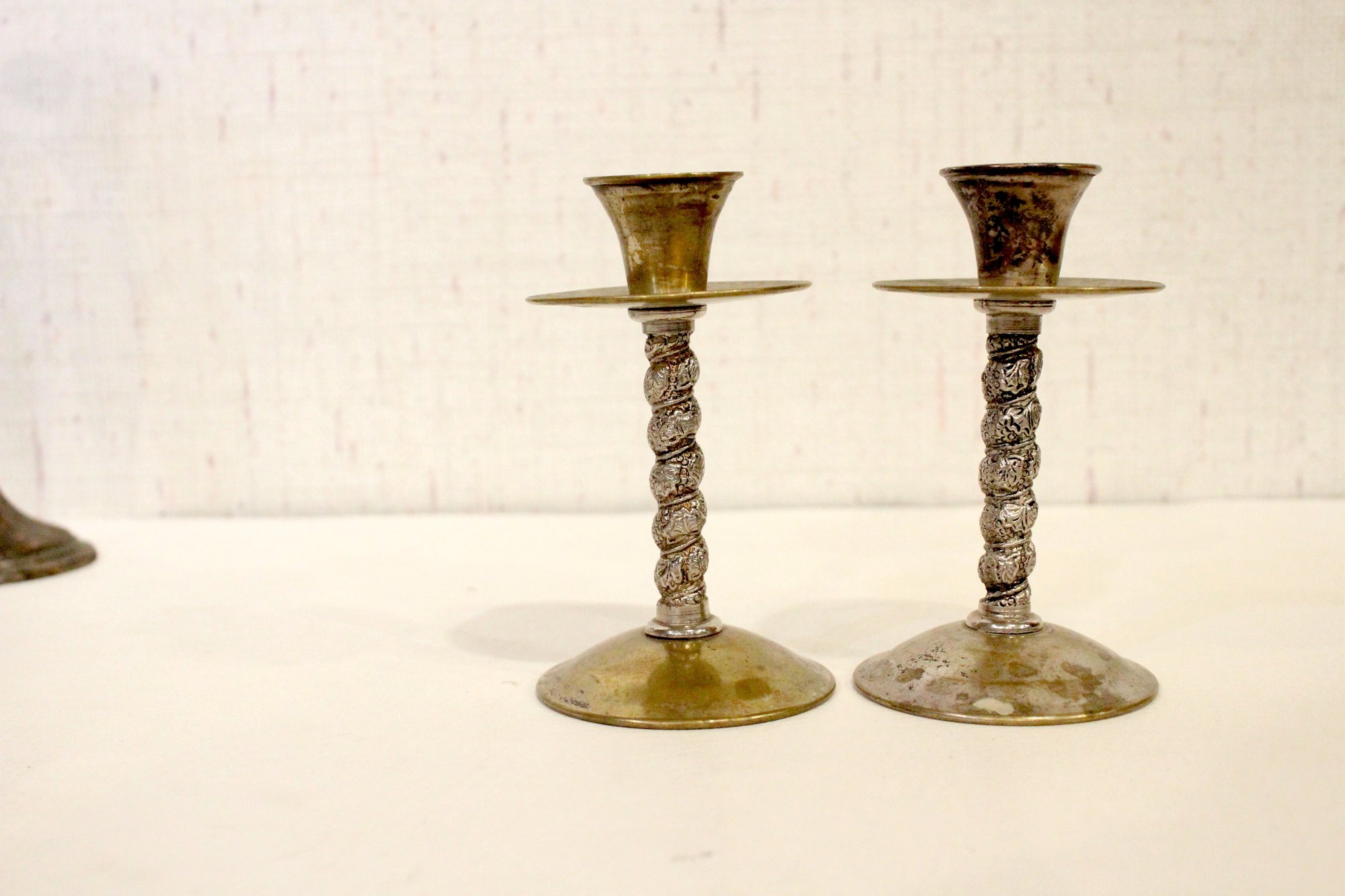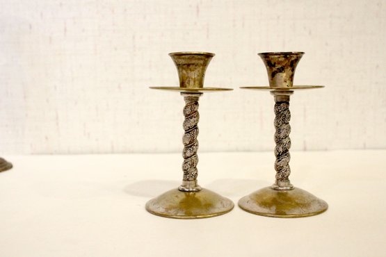 a pair of vintage silver-plated grapevine candlesticks 5.5" tall