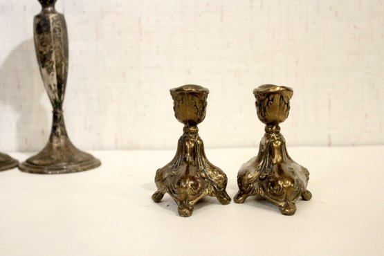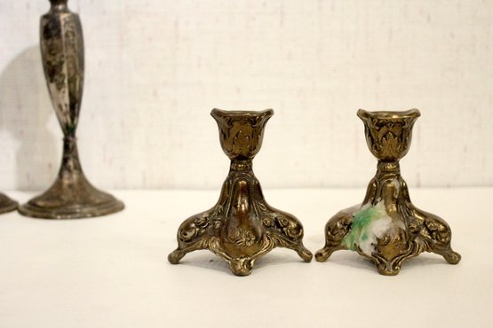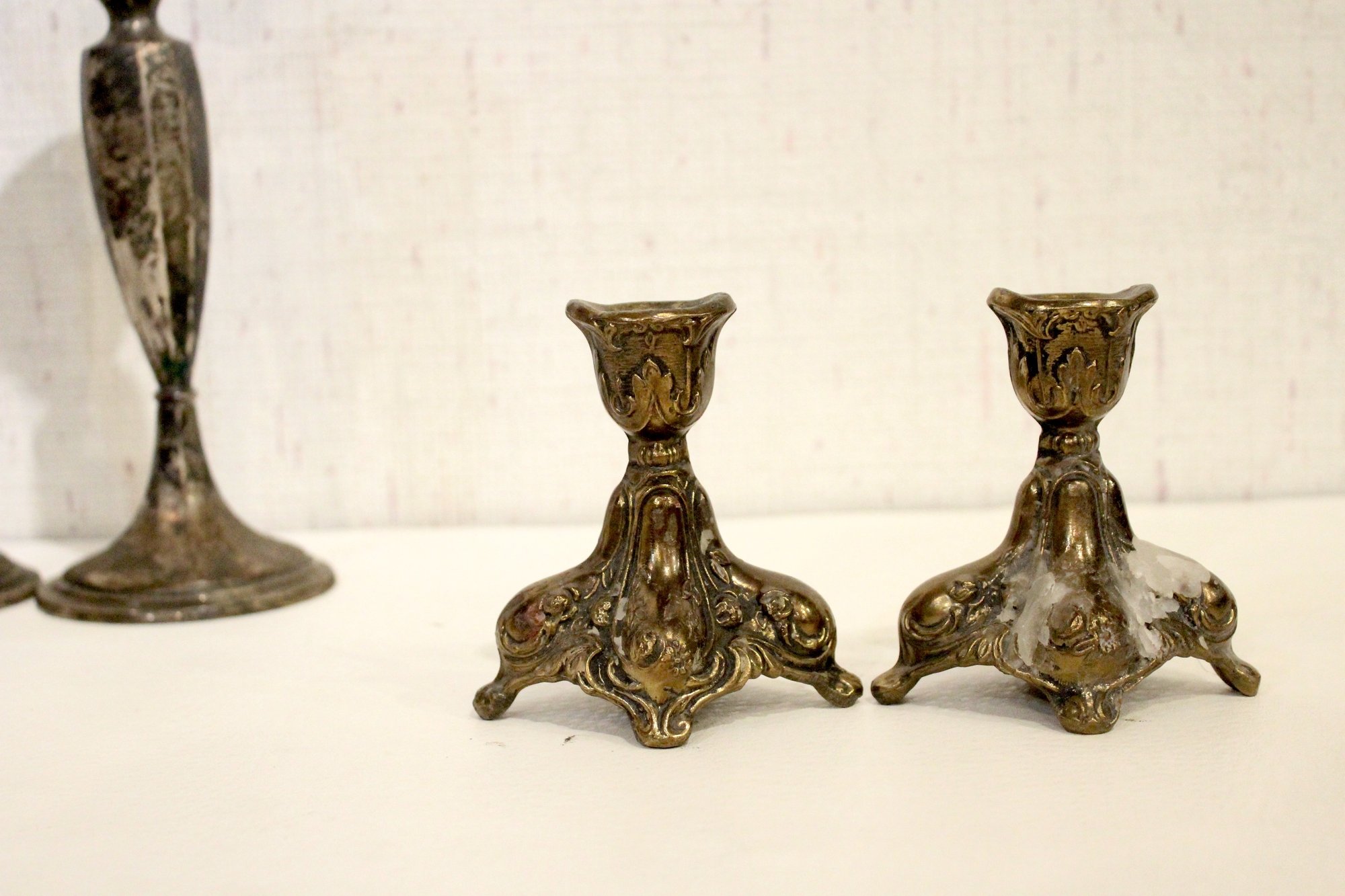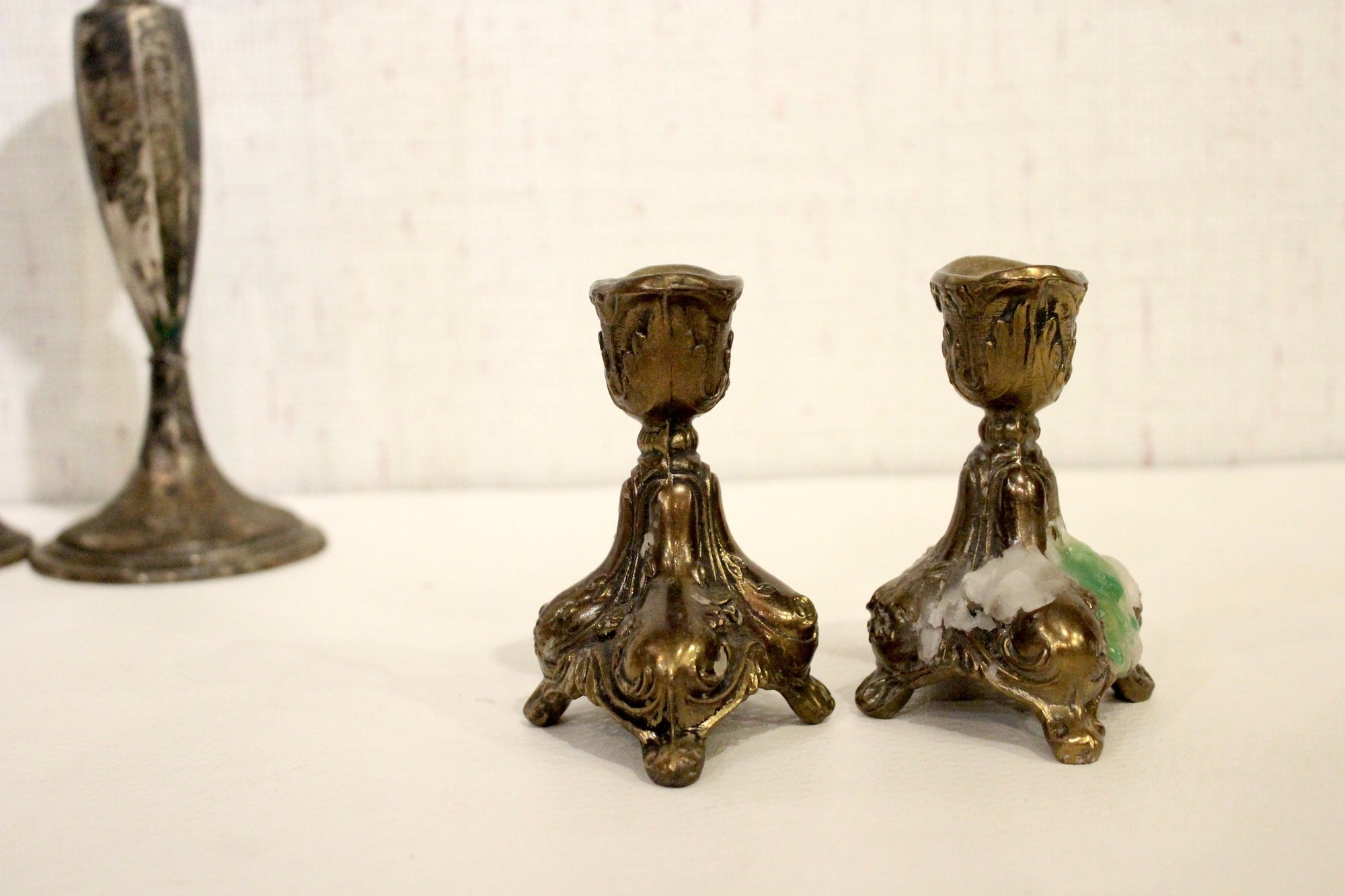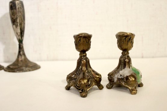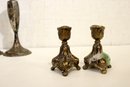 Vintage Brass Candlestick Set: Hollywood Regency Dinner Candle Holders 4" x 4"