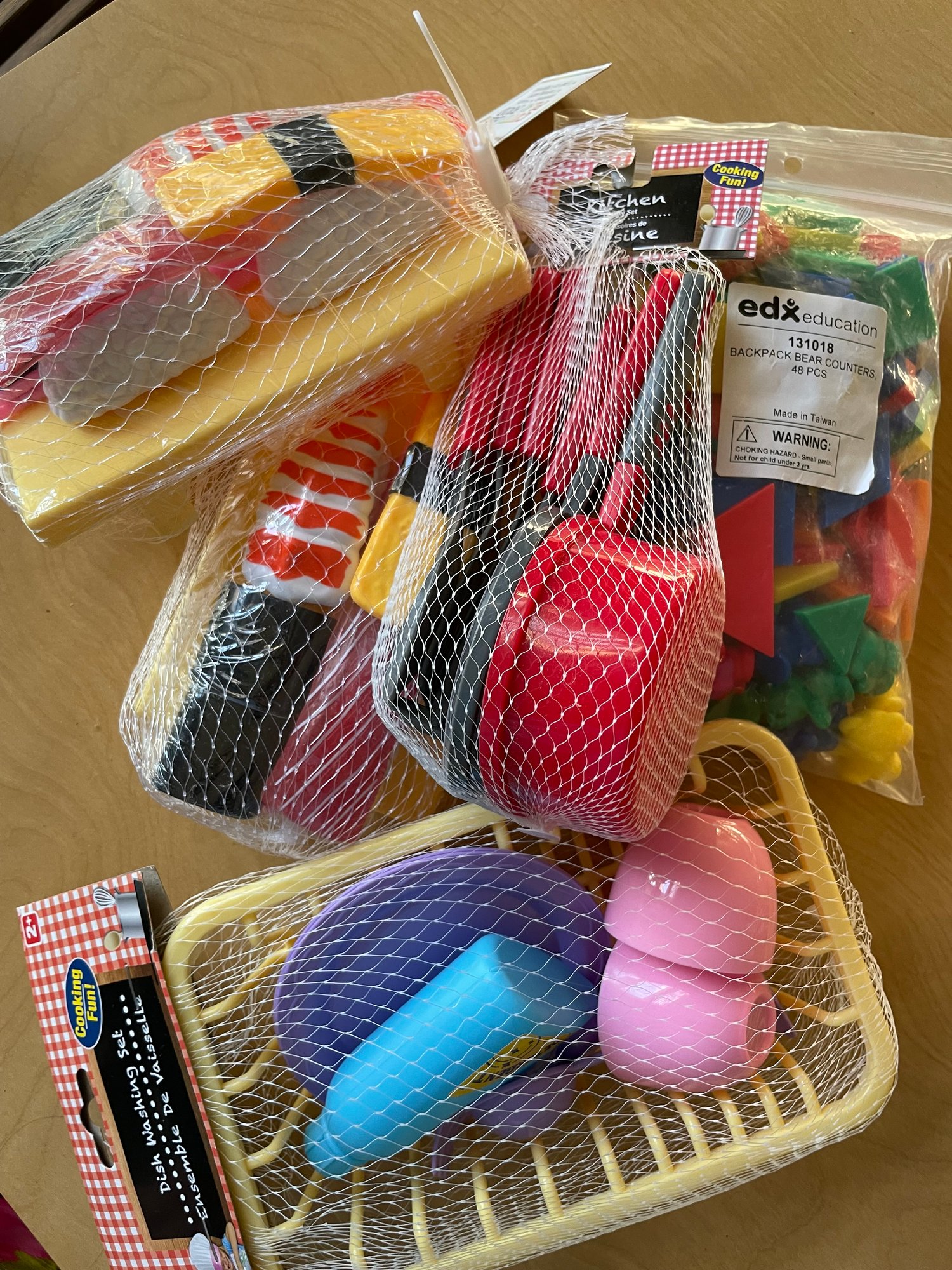 Several pieces of new kids play food and pots
