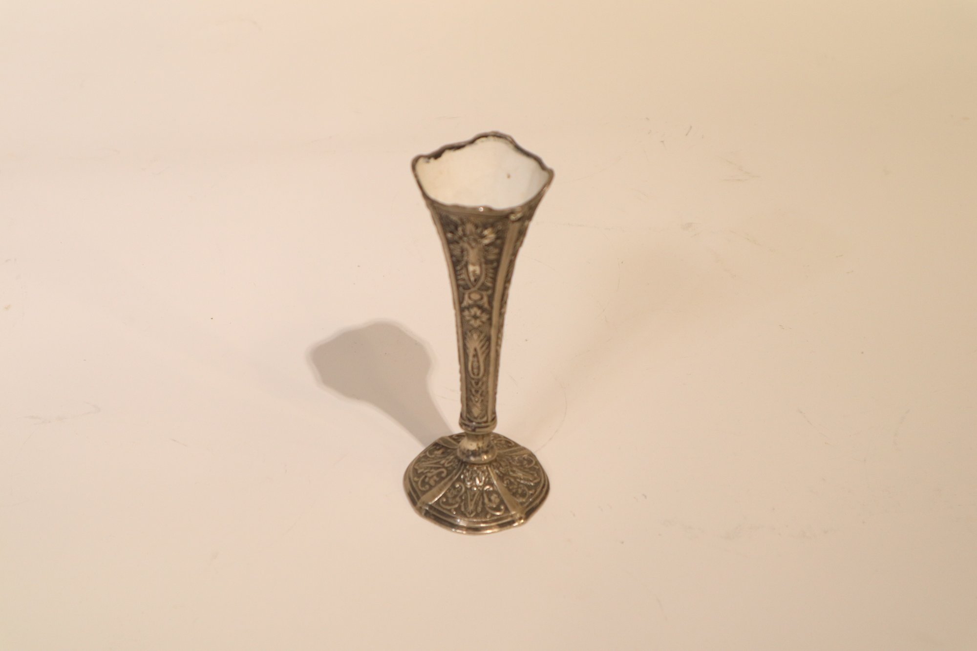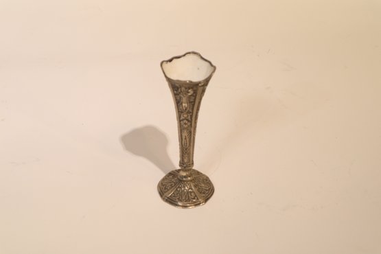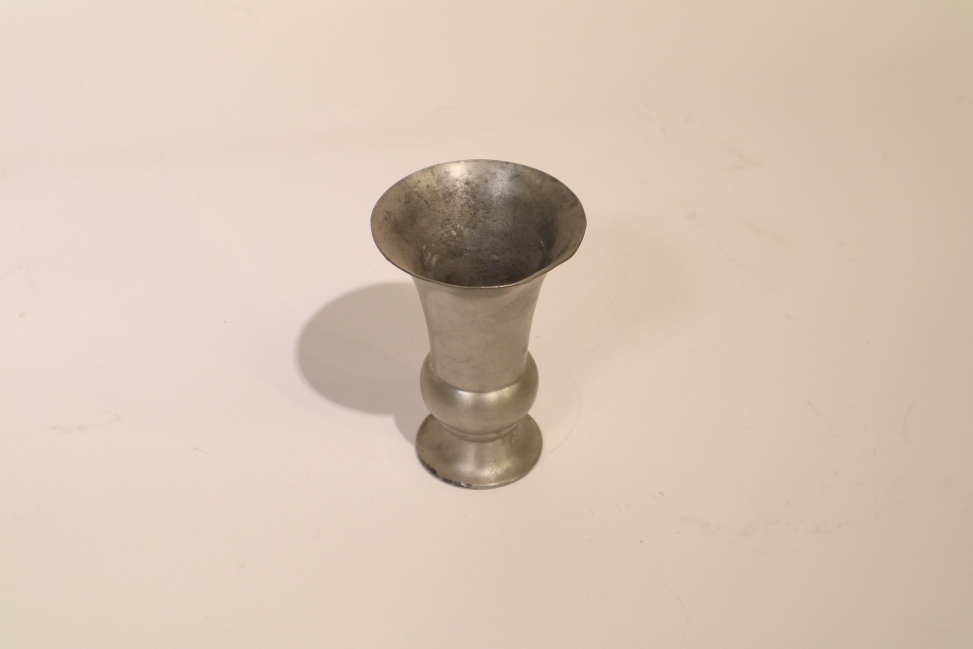 Notes: The pewter vase is lightly dented on the rim, and the silverplate vase is tarnished and has slight signs of wear around the rim.
