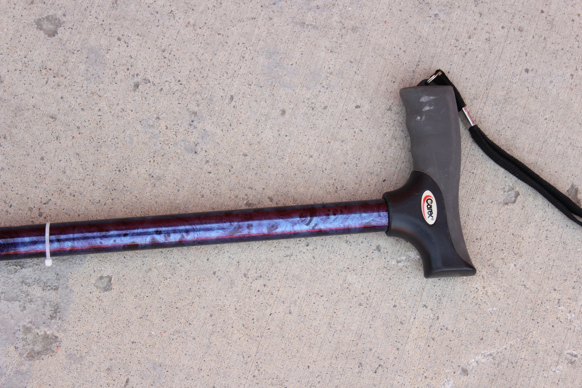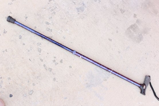 A Carex blue, size adjustable, carbon fiber cane, 39" - 28" long. This item can be shipped.