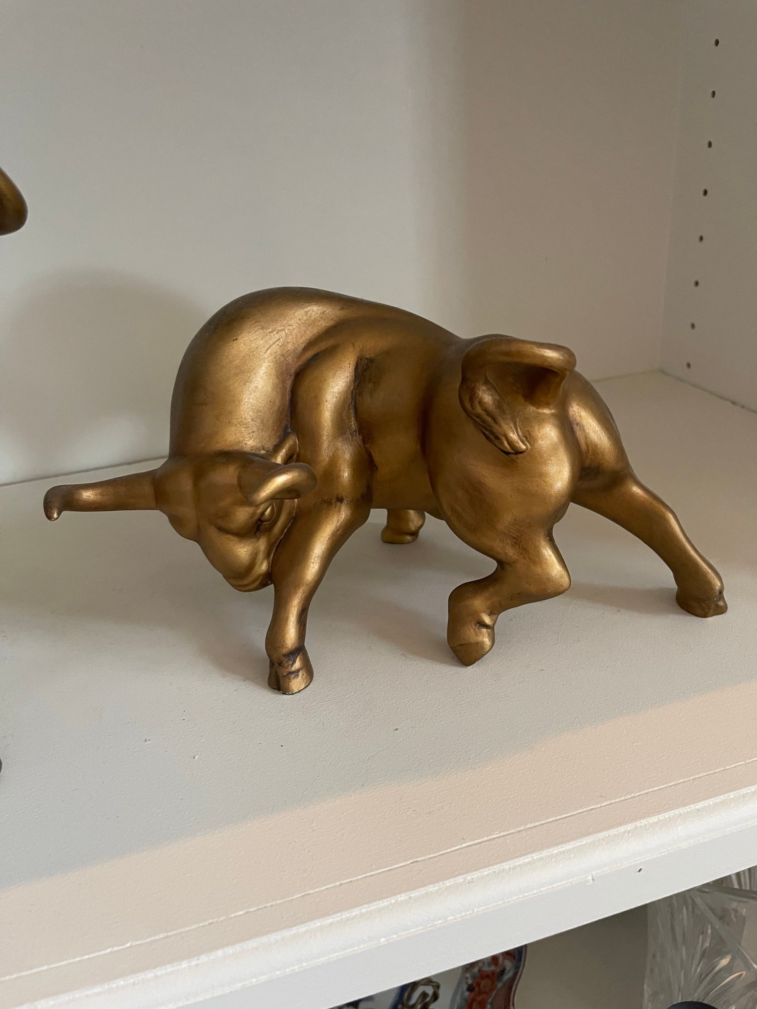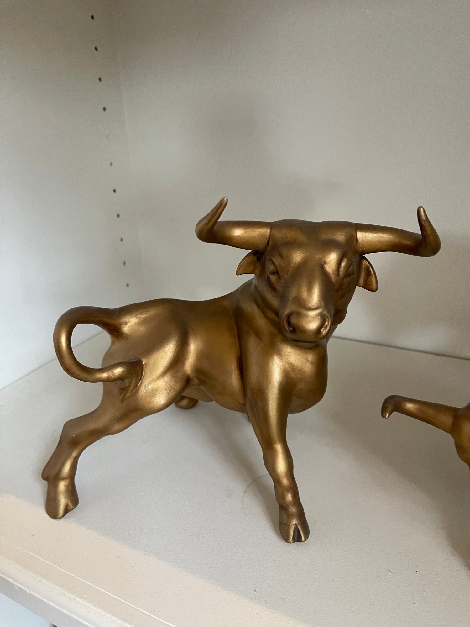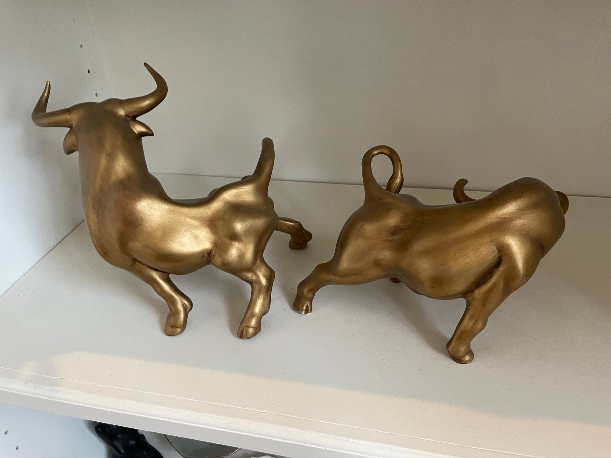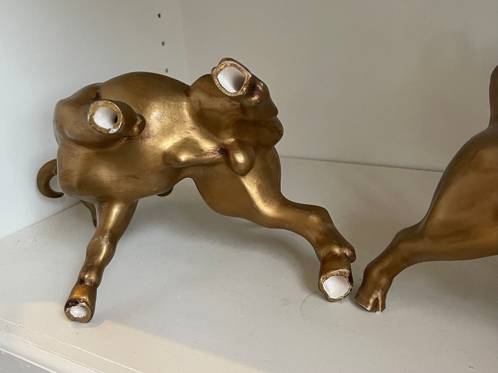 These are in great condition with no chips. Gold painted ceramic. 9 h x 11 w, and 6.5 h x 11 w