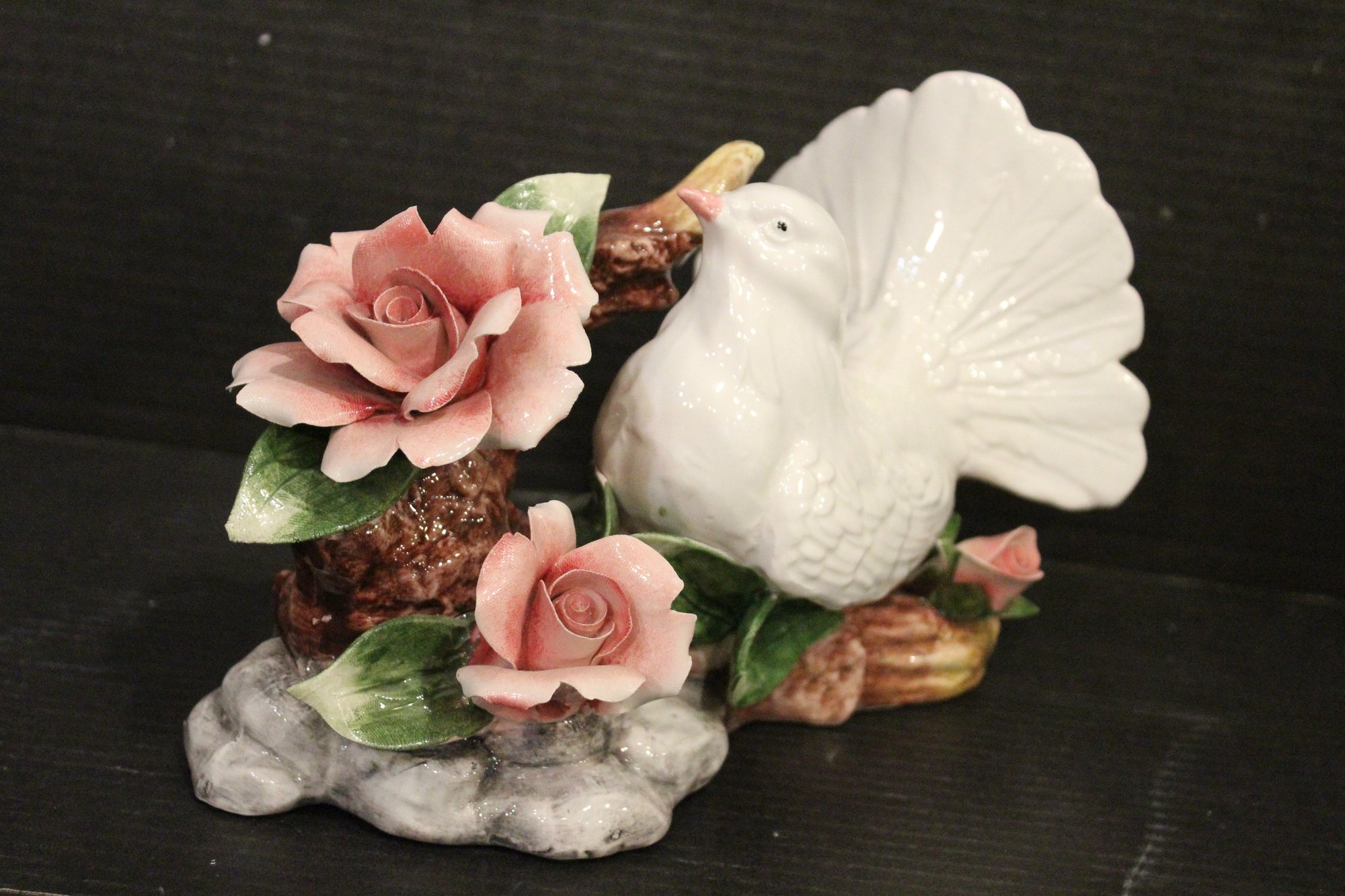 A vintage Cesar Capodimonte by Surastano porcelain, decorative dove figurine, made in Italy, 10" x 7" x 5". This item can be shipped.