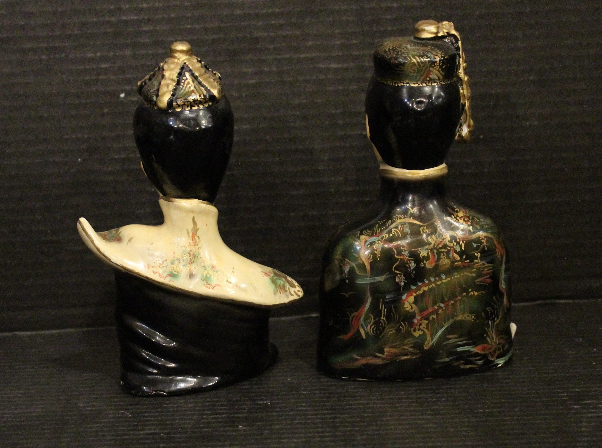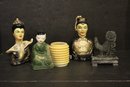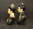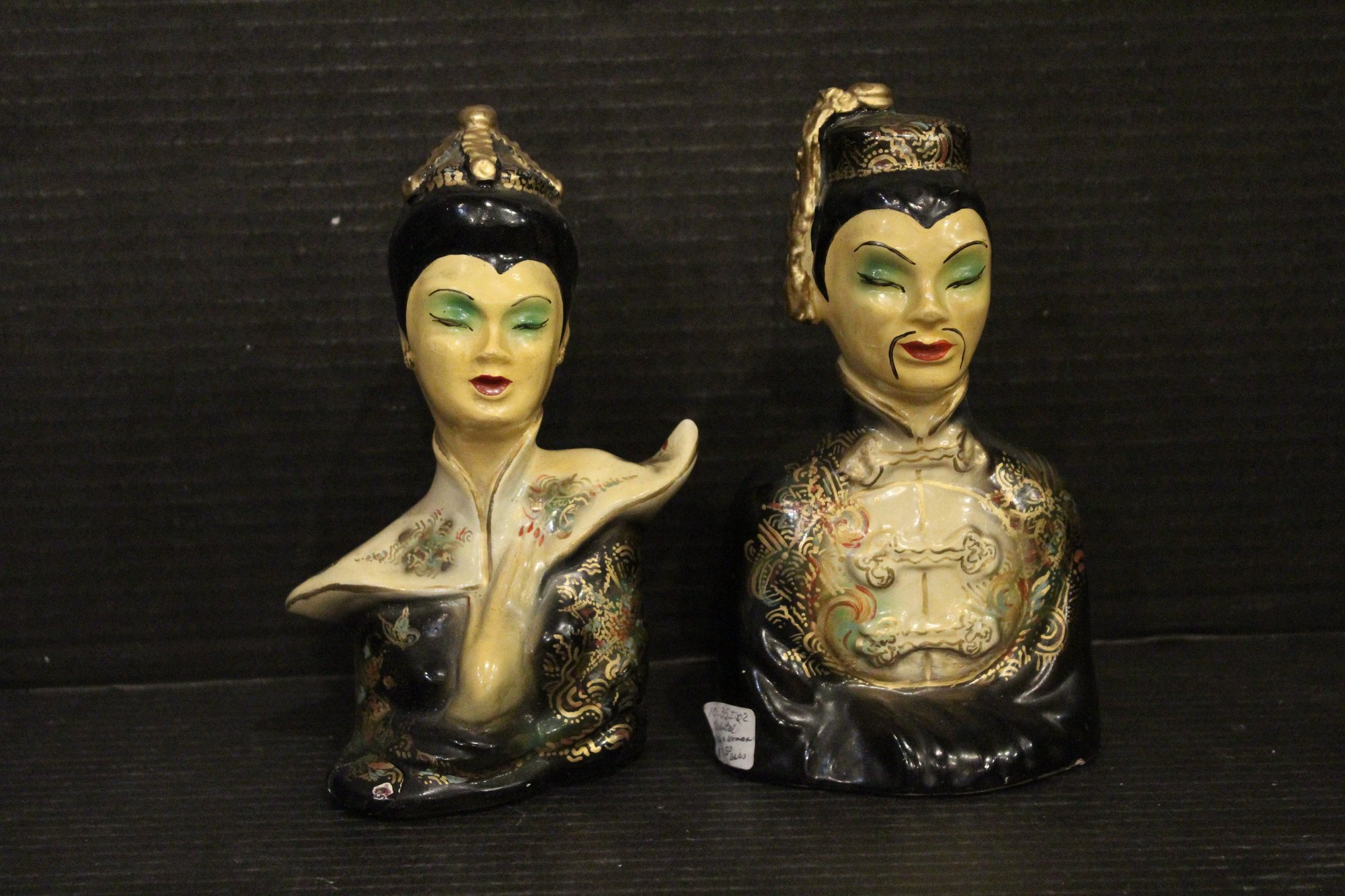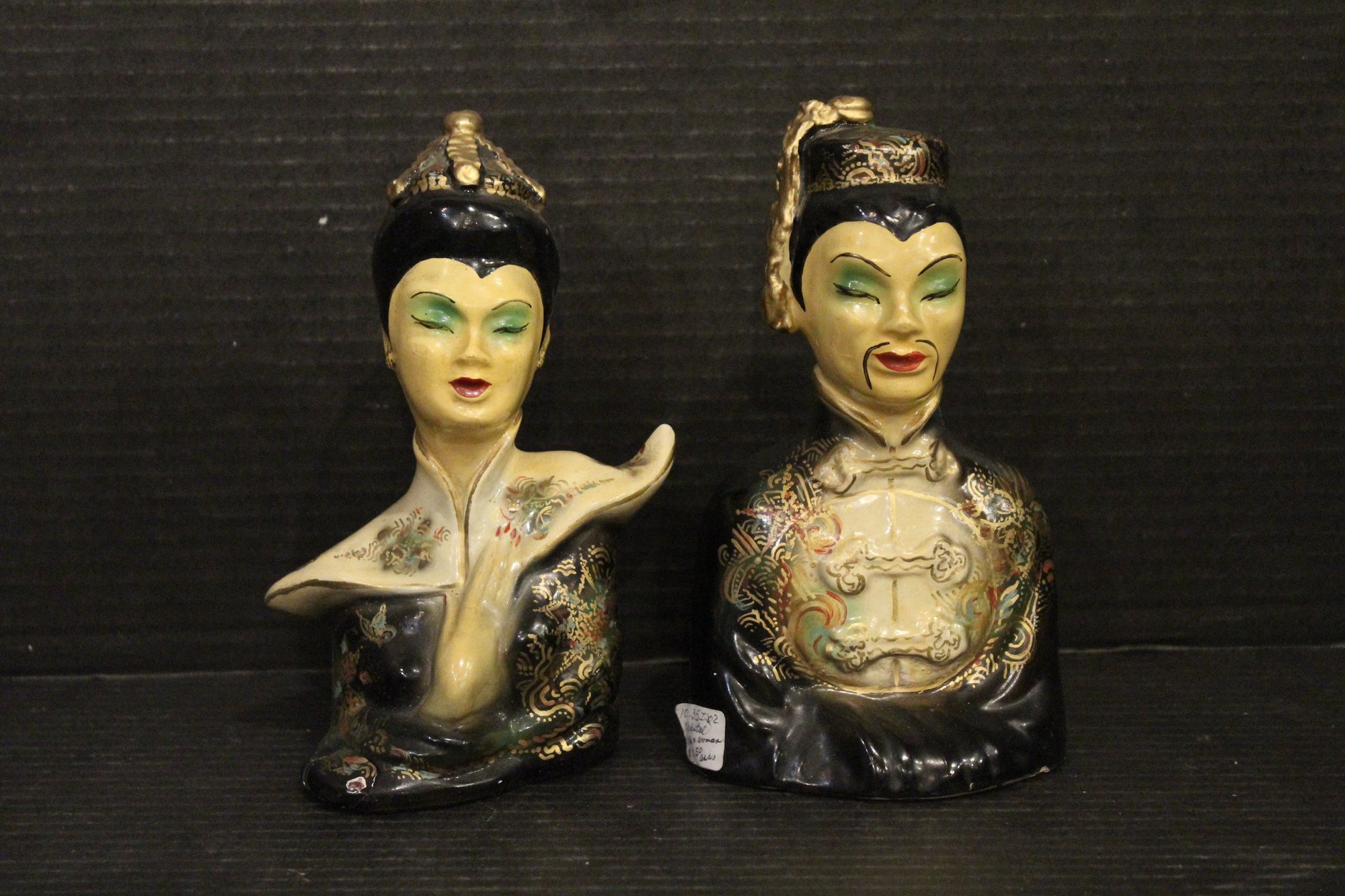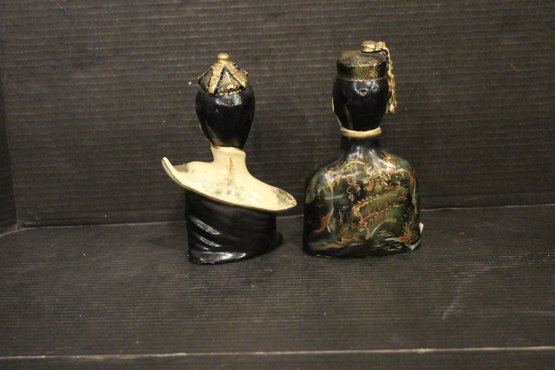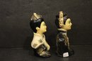 Antique Chinese pottery glazed man and women busts 7"