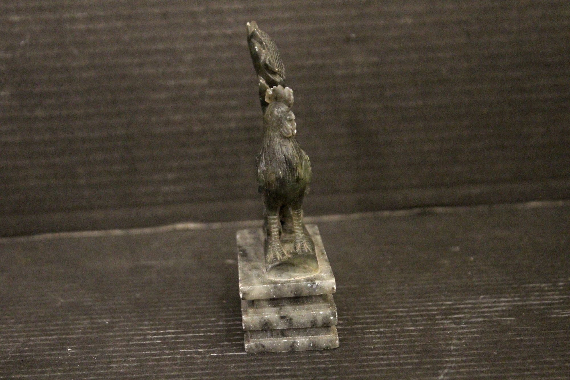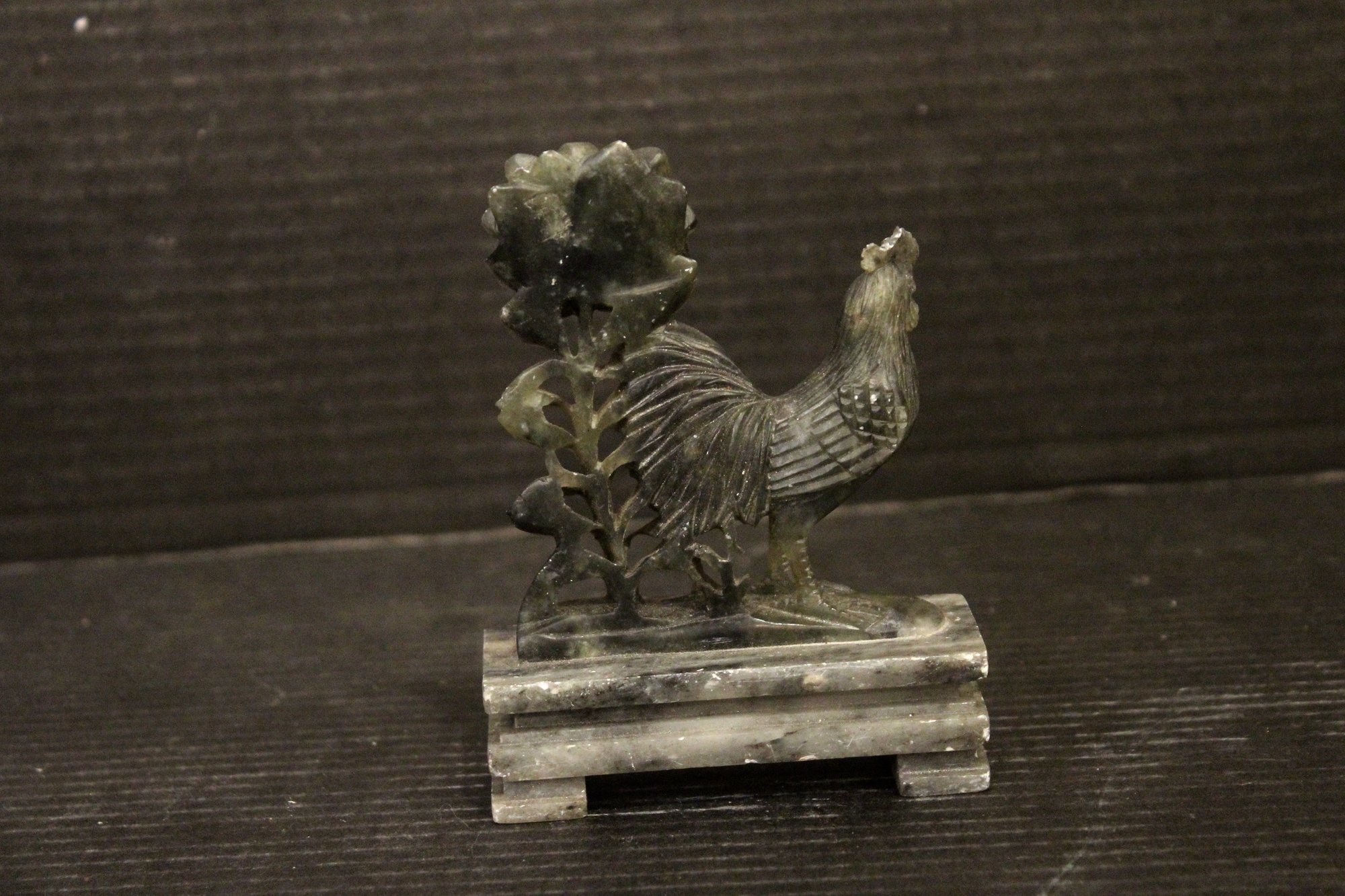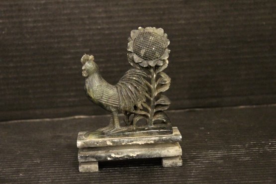 A carved rooster (cockerel) and sunflower figurine, possibly made of soapstone or jade, buyers be ware 5"
