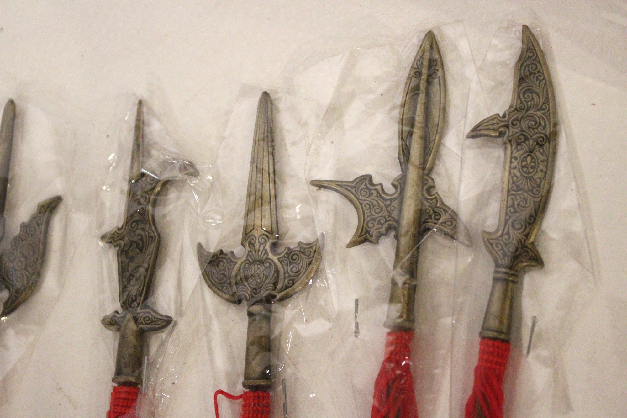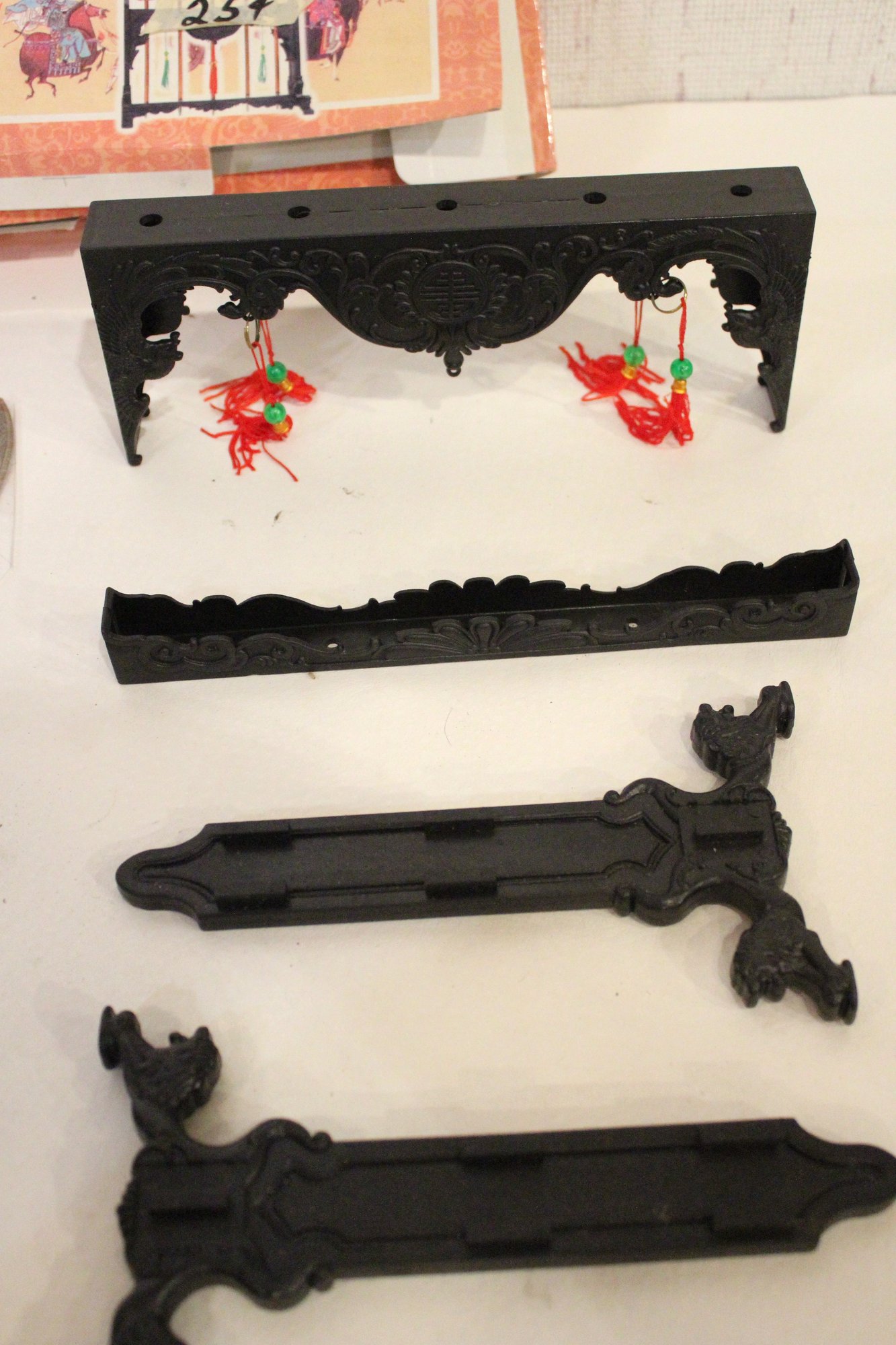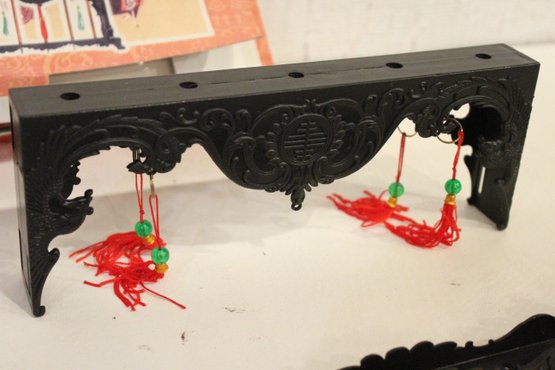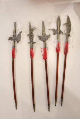 collectible set of miniature Chinese polearms and display stand, 13" x 9". This item can be shipped.
