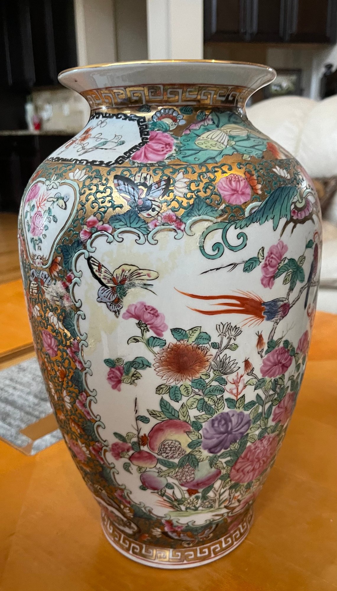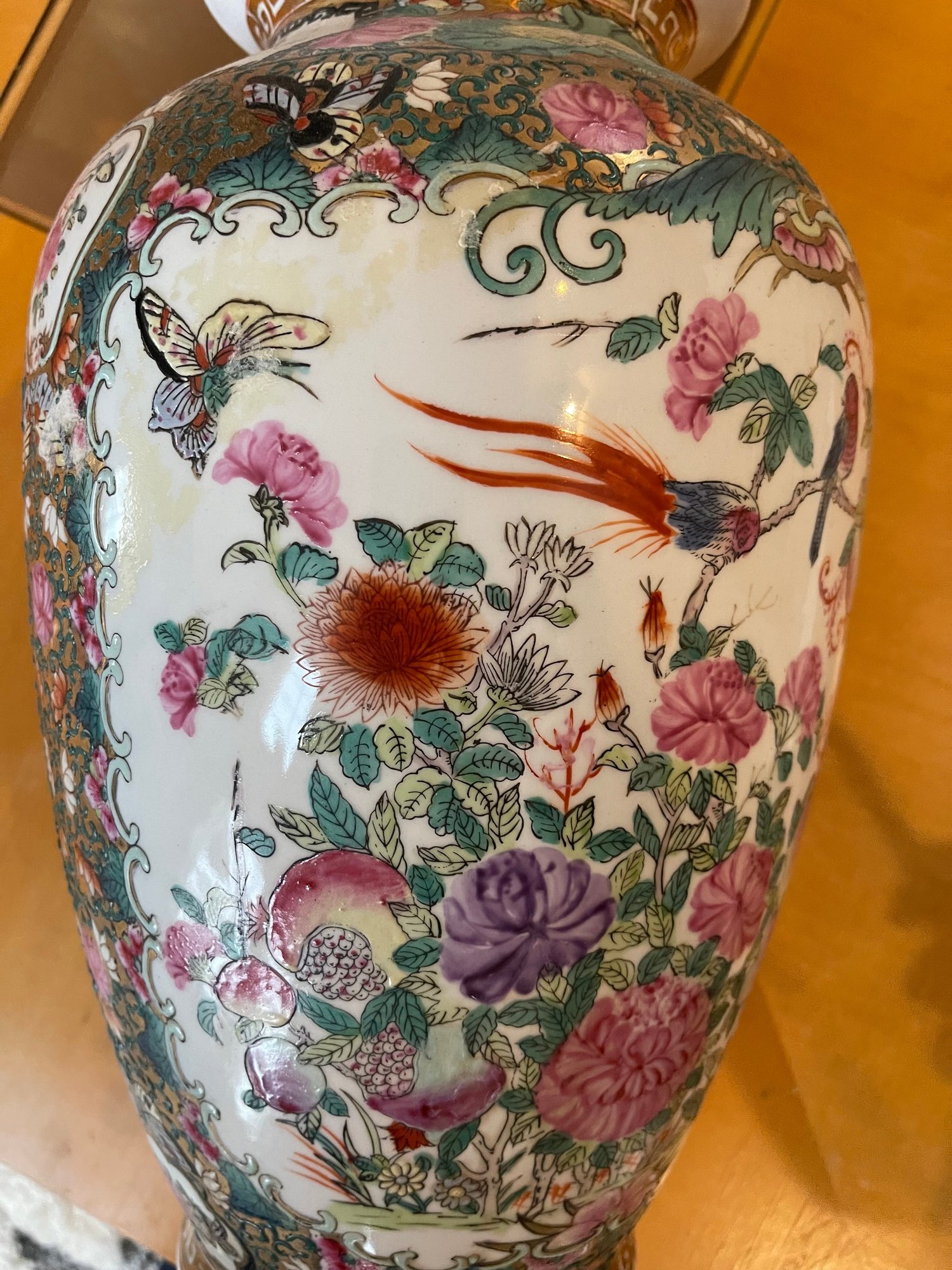 Famille Rose /Rose Medallion pattern with birds, flowers and gold accents