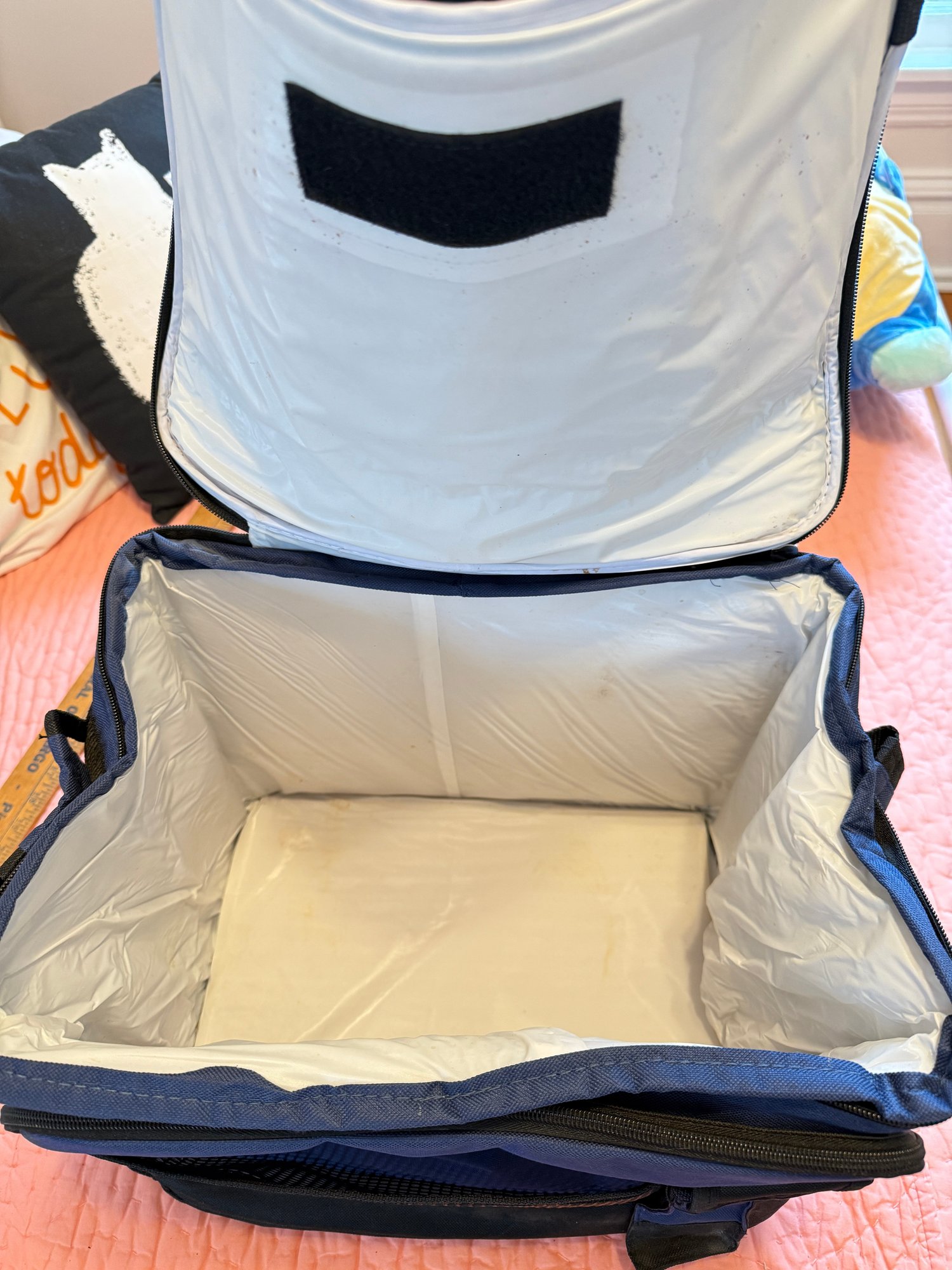 Three soft sidedcoolers. One large collapsible rolling cooler with adjustable handle. Has side handles, mesh front pouch, roomie inside, zip closure and velcro straps to secure when collapsed. Measures approximately 15 x 12 x 14” tall -gently used. Two additional small soft sided coolers intended for baby bottles both with zipper closures - one with carrying strap approximately 6 x 8”. Not used.