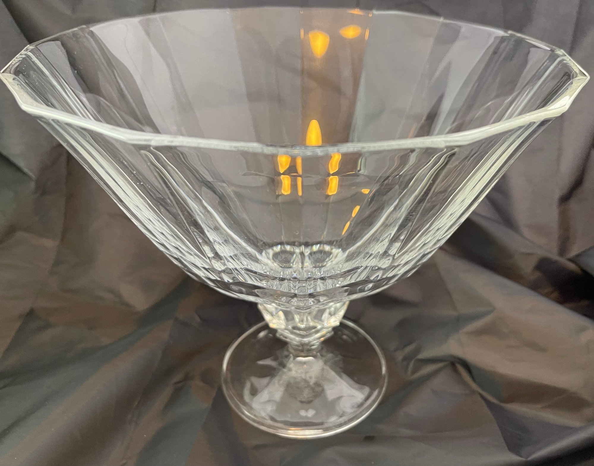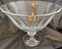 9 inches high, 10 inches diameter. Lovely crystal bowl iwith pedestal base