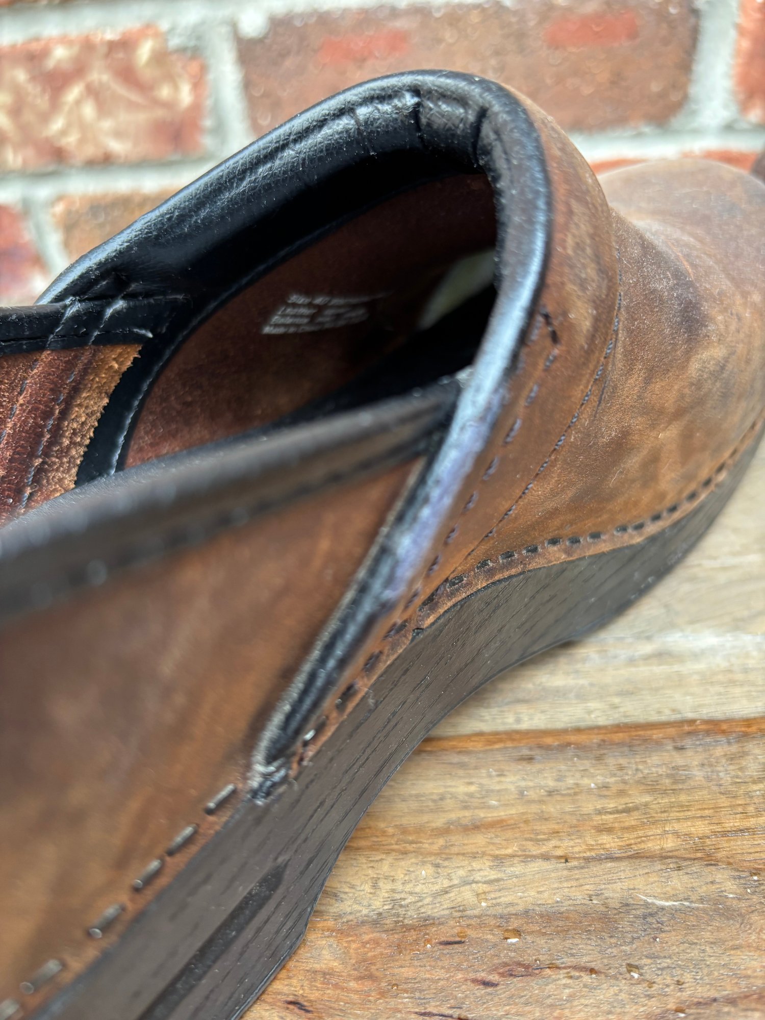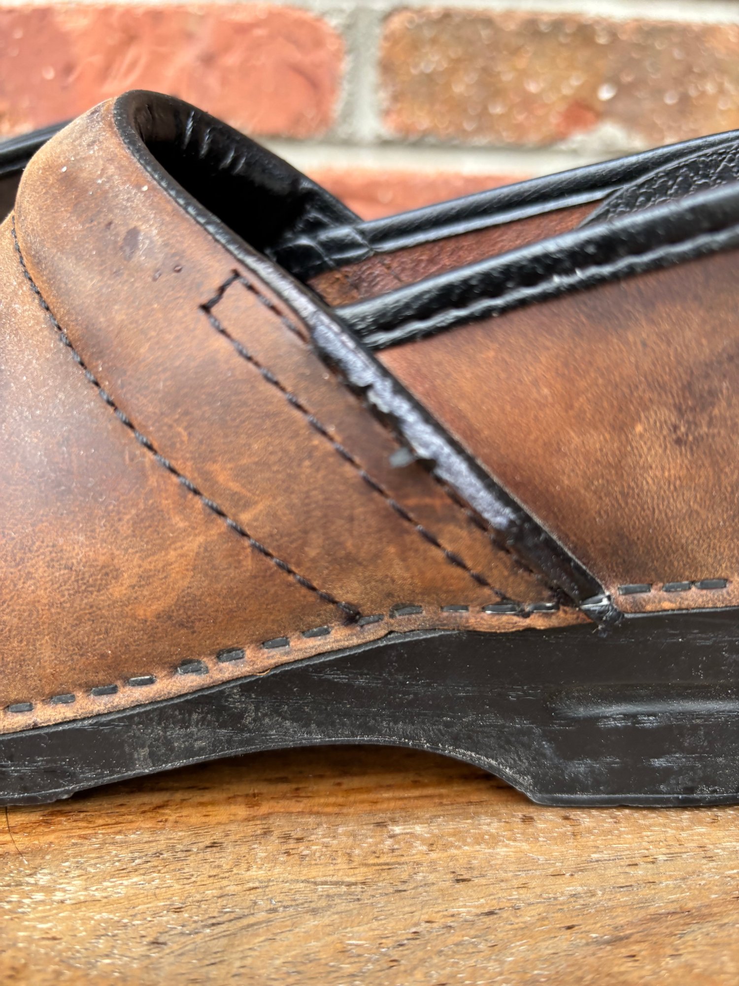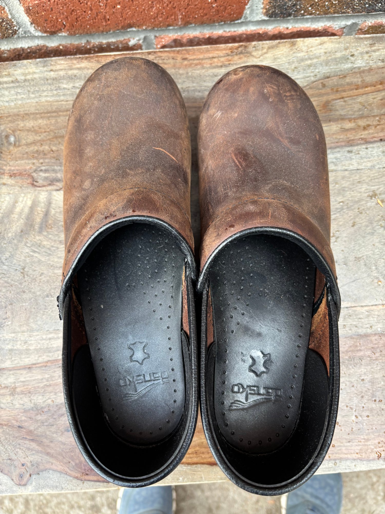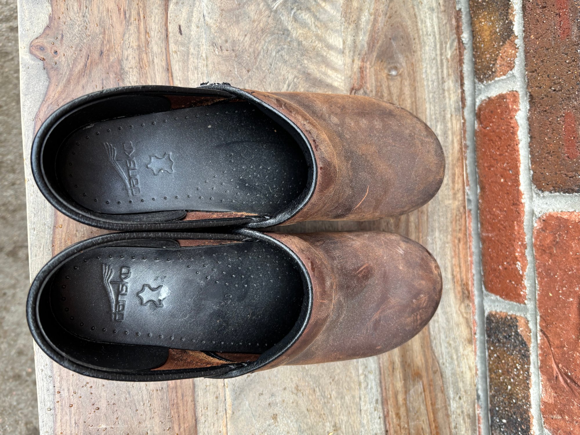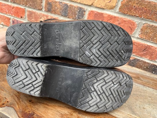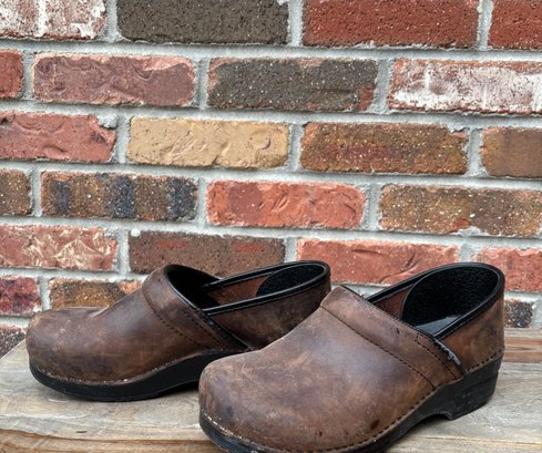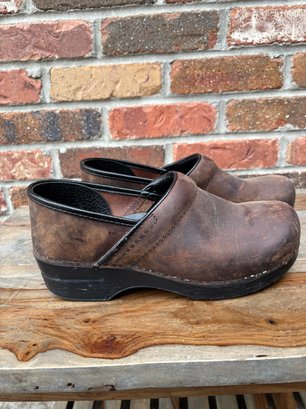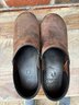 Hardly worn brown leather clogs