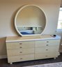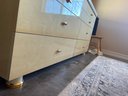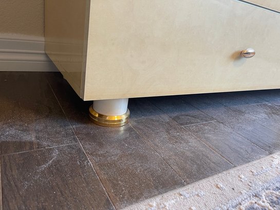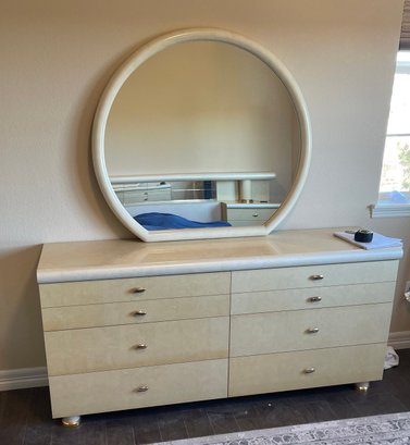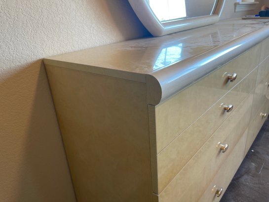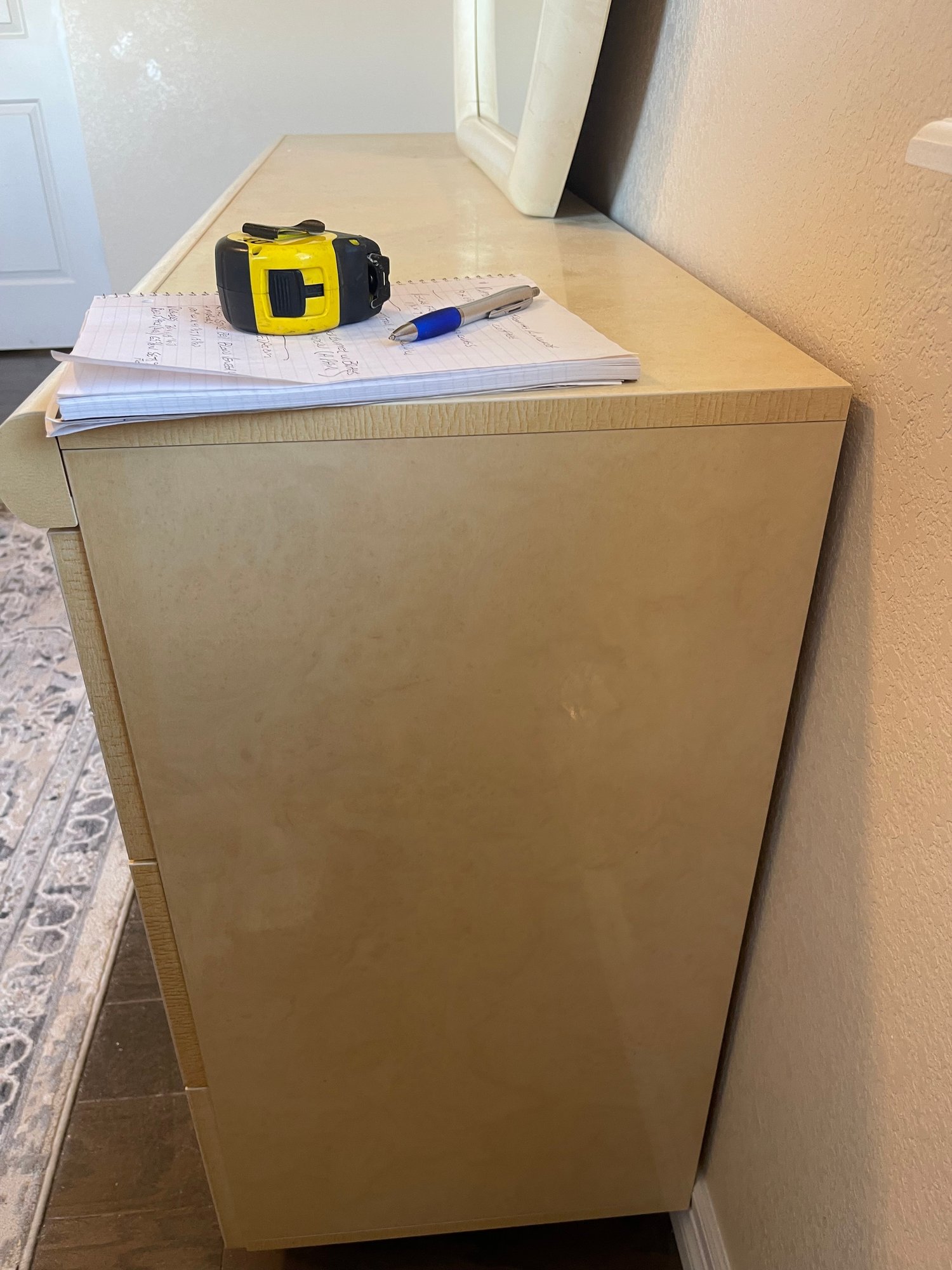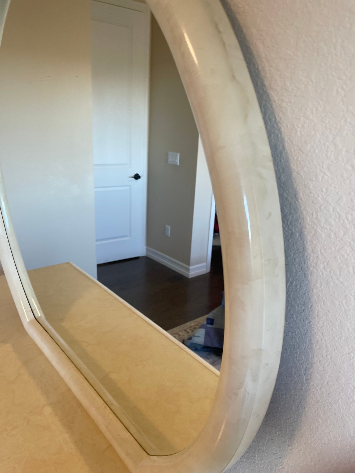 blond wood veneer, brass accent. Mirror - 43 w, 40 h