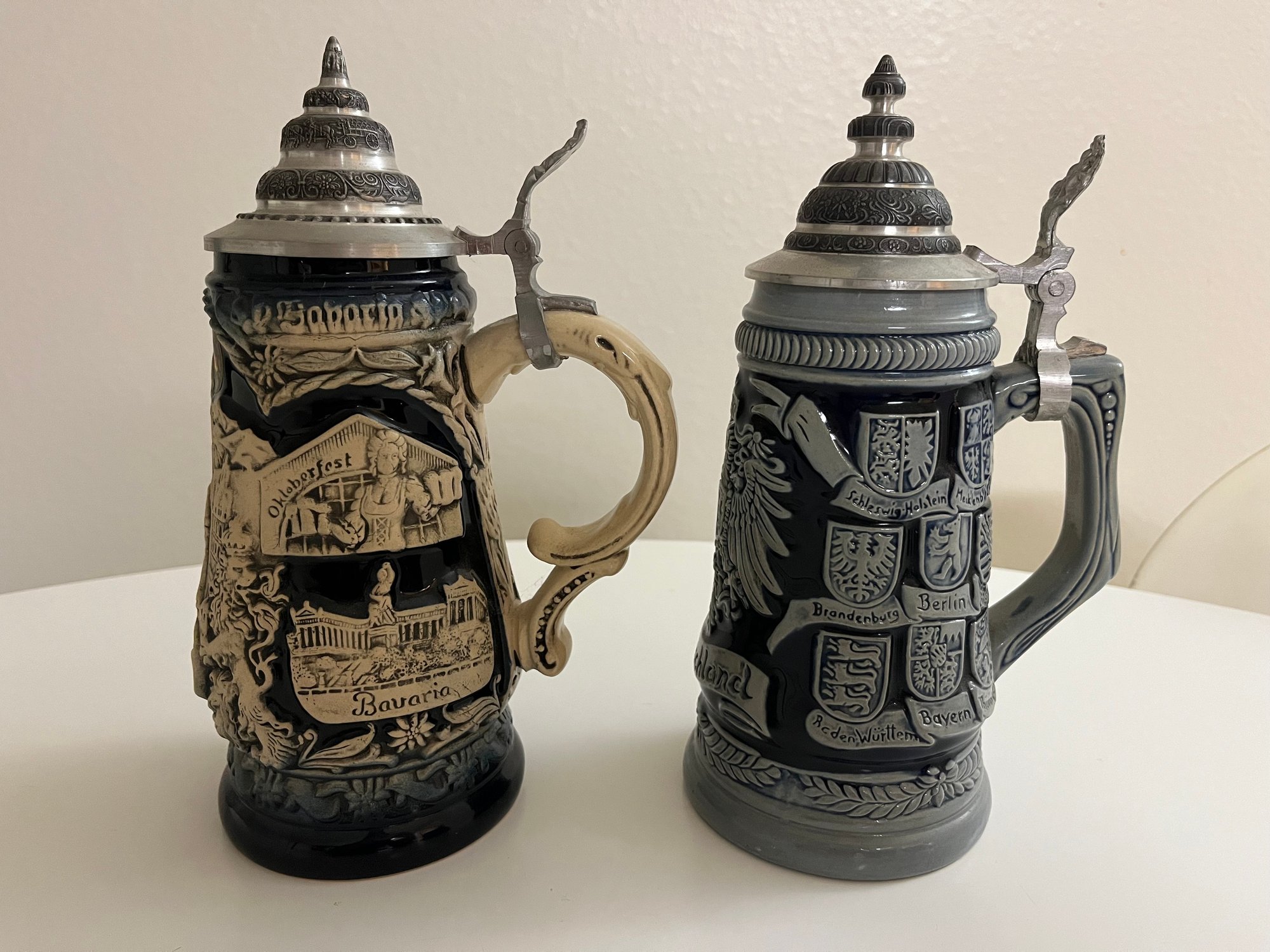 2 beer steins made in Germany, 1 is from Epcot Disney park collectable made in Germany, the other is a vintage beer stein also made in Germany. These items can be shipped.