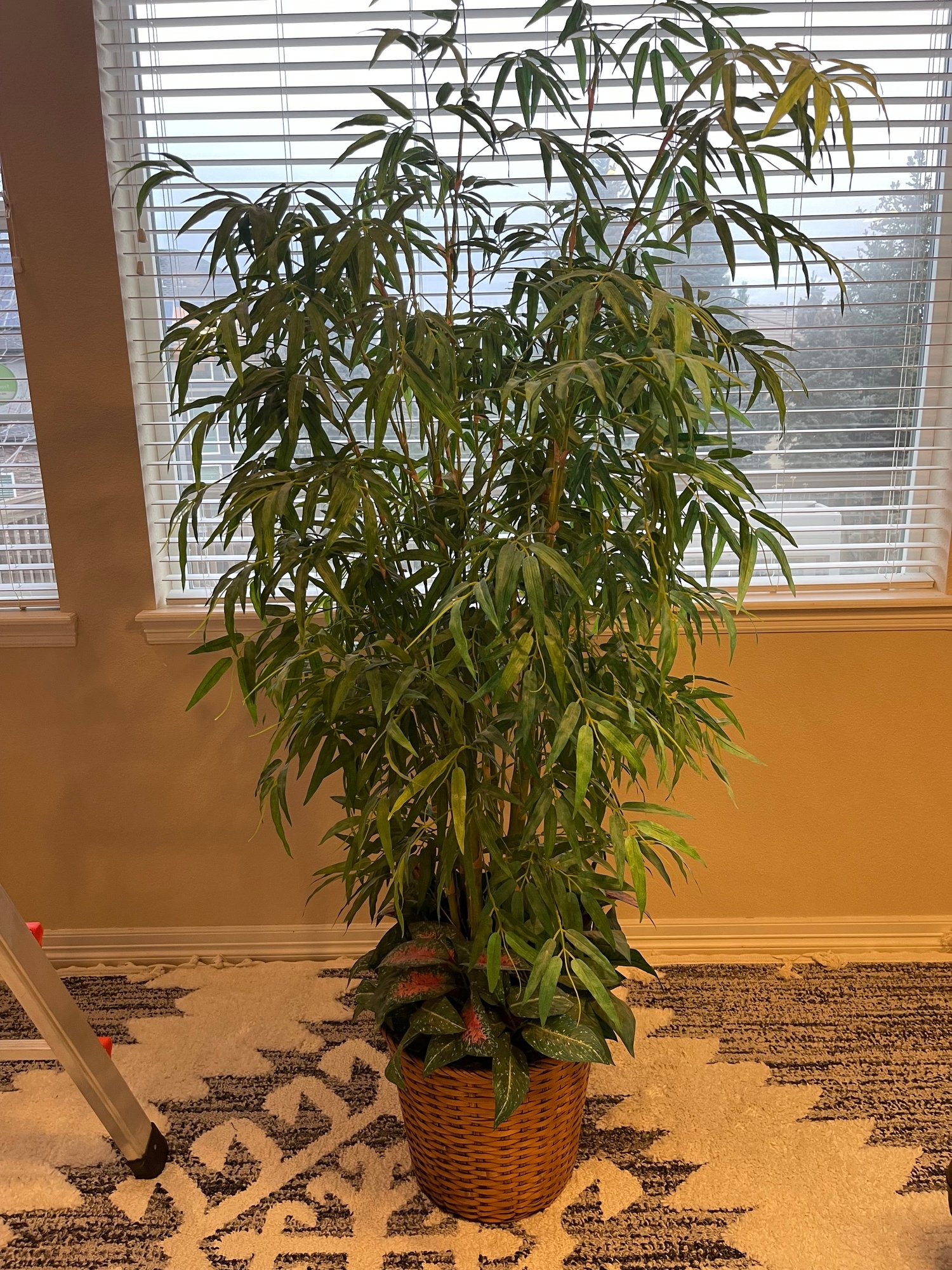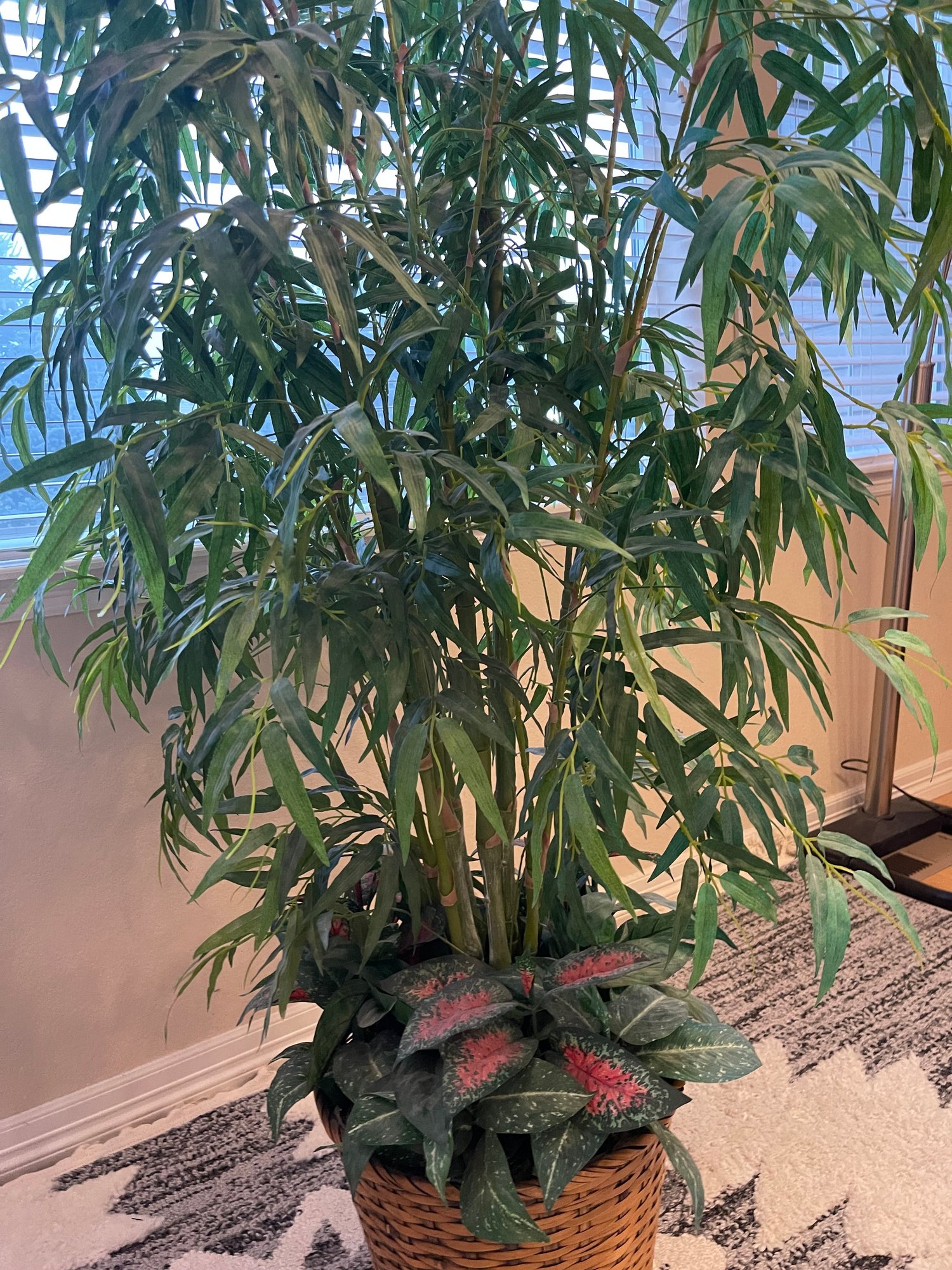 Bamboo with other plants in base, basket is 17 w x 14 h