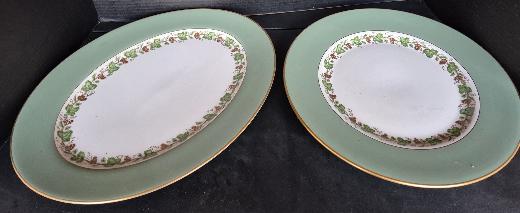 Two beautiful serving pieces. Platter measures 15.5 " long and 11.5 across and plate measures 13" round.