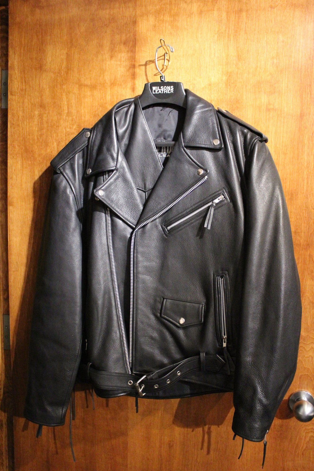 A black leather Frontier Leather men's Large Thinsulate Thermal Insulation bicker jacket with a vest like new. This item can be shipped.