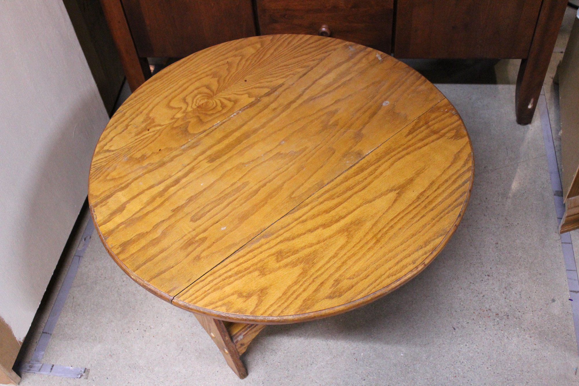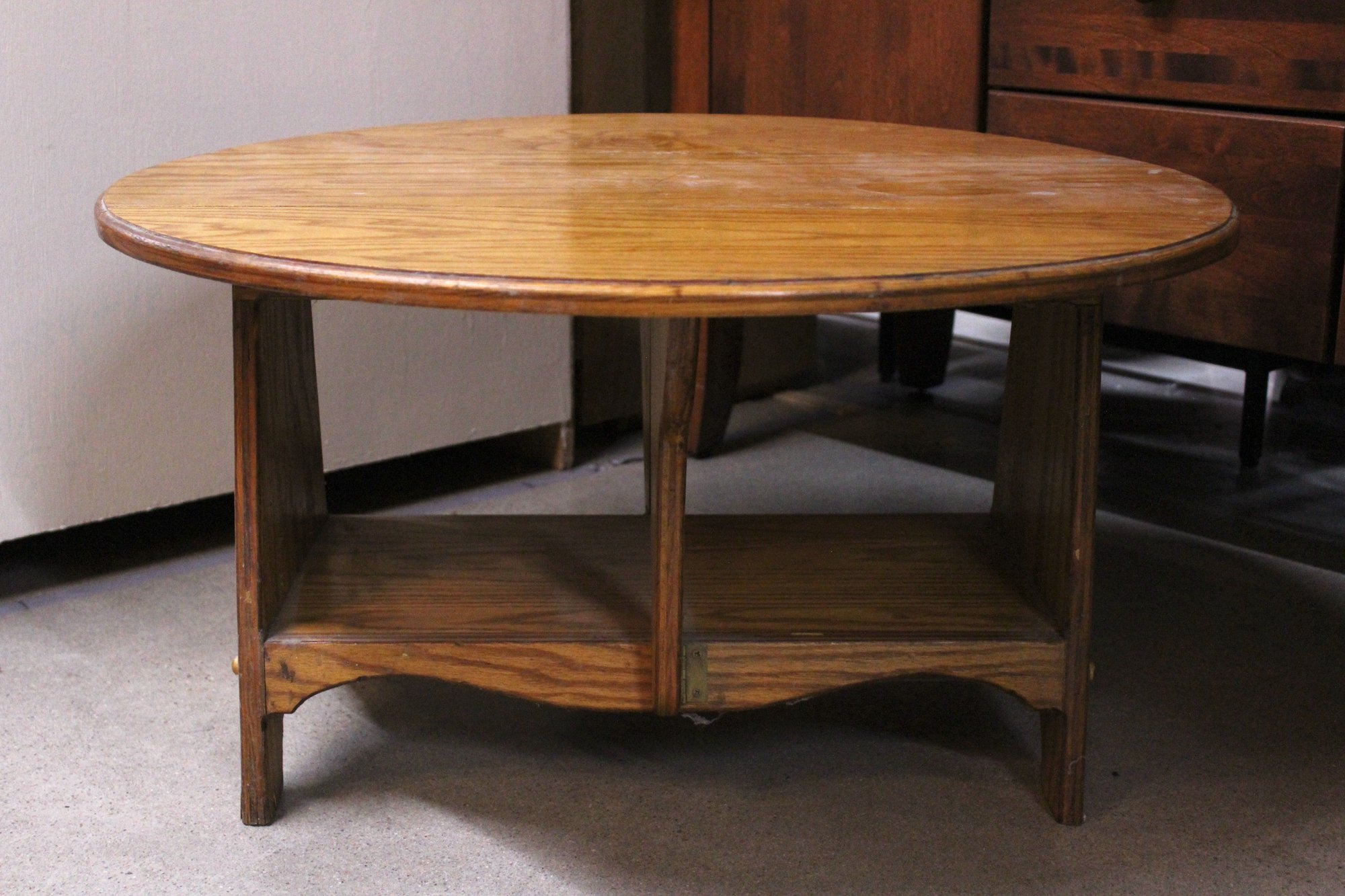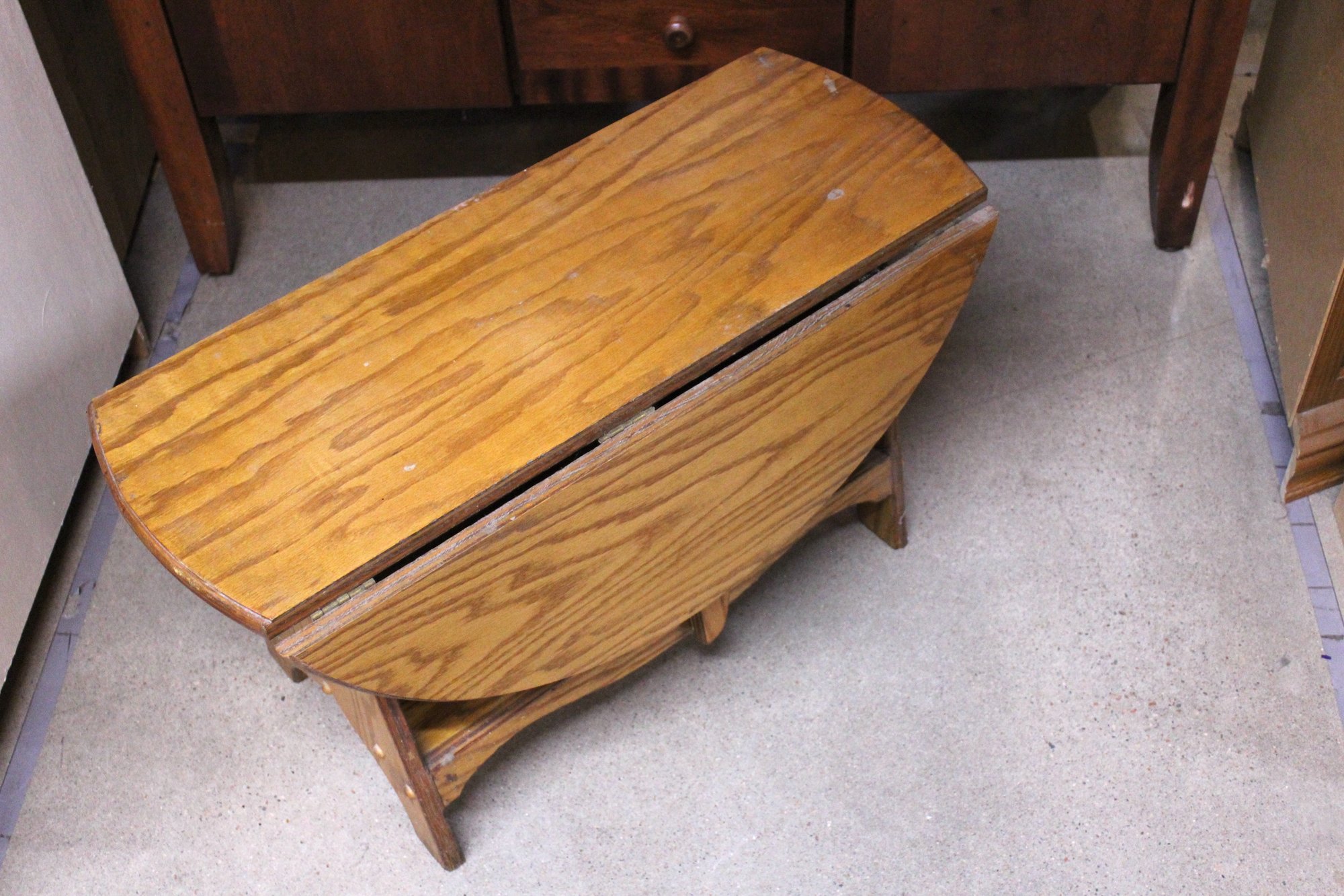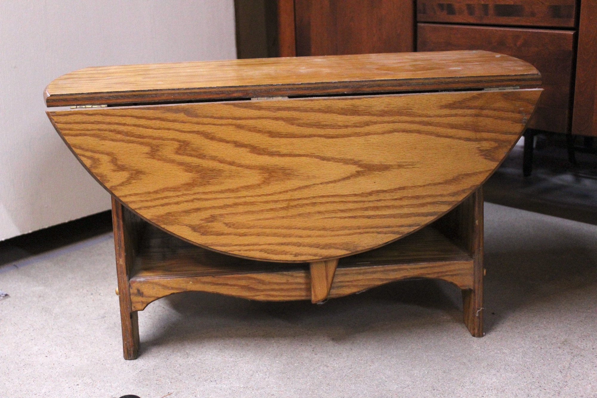 A fourth hard wood vintage drop leaf coffee table, 30" x 30" table, 30" x 12" not extended, 18" tall. There is ware on the wood as shown in pictures. This item can not be shipped.
