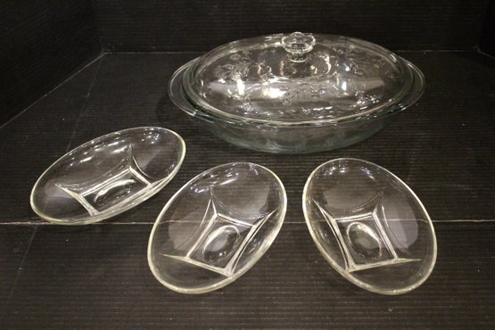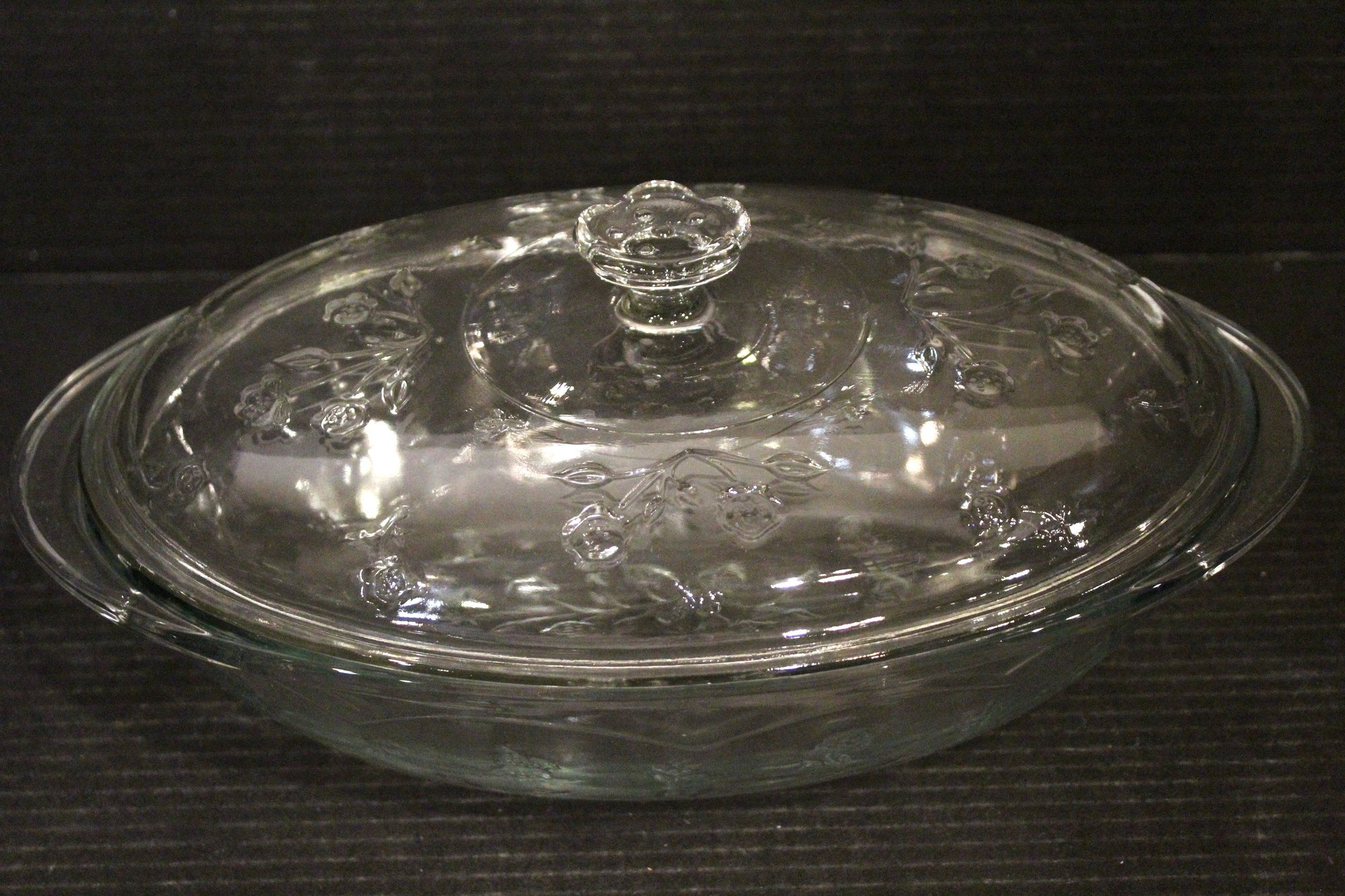 Anchor Hocking "Savannah" clear glass oval covered casserole dish, 13" x 8" x 6"