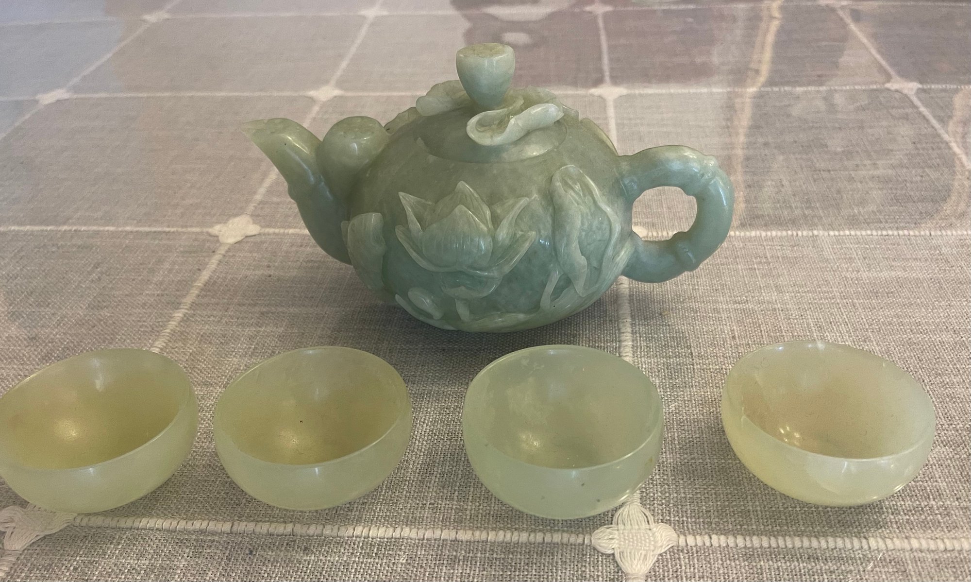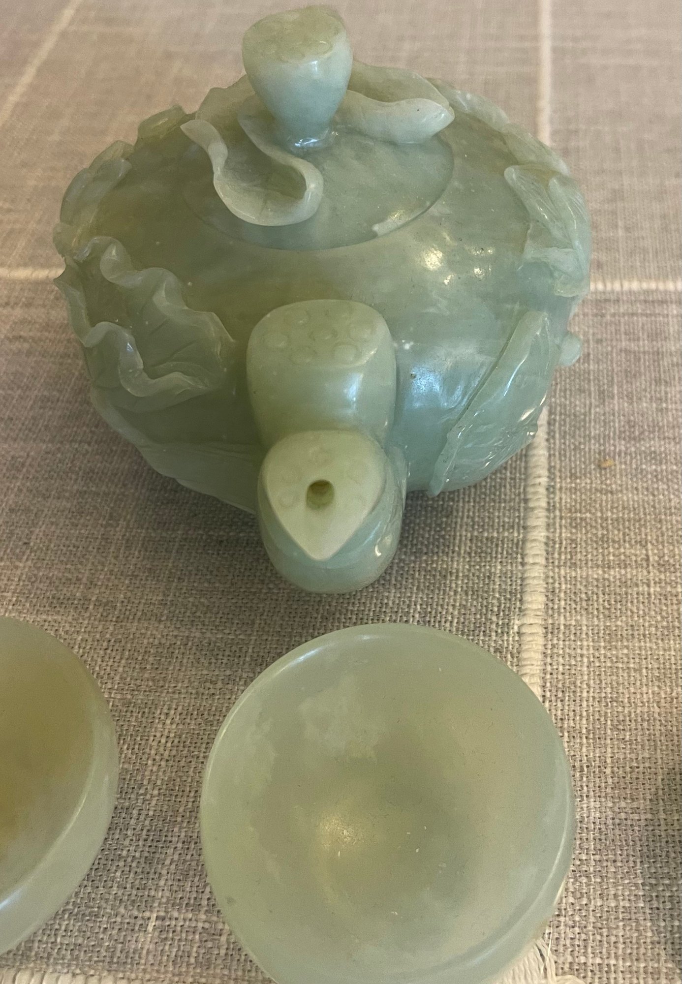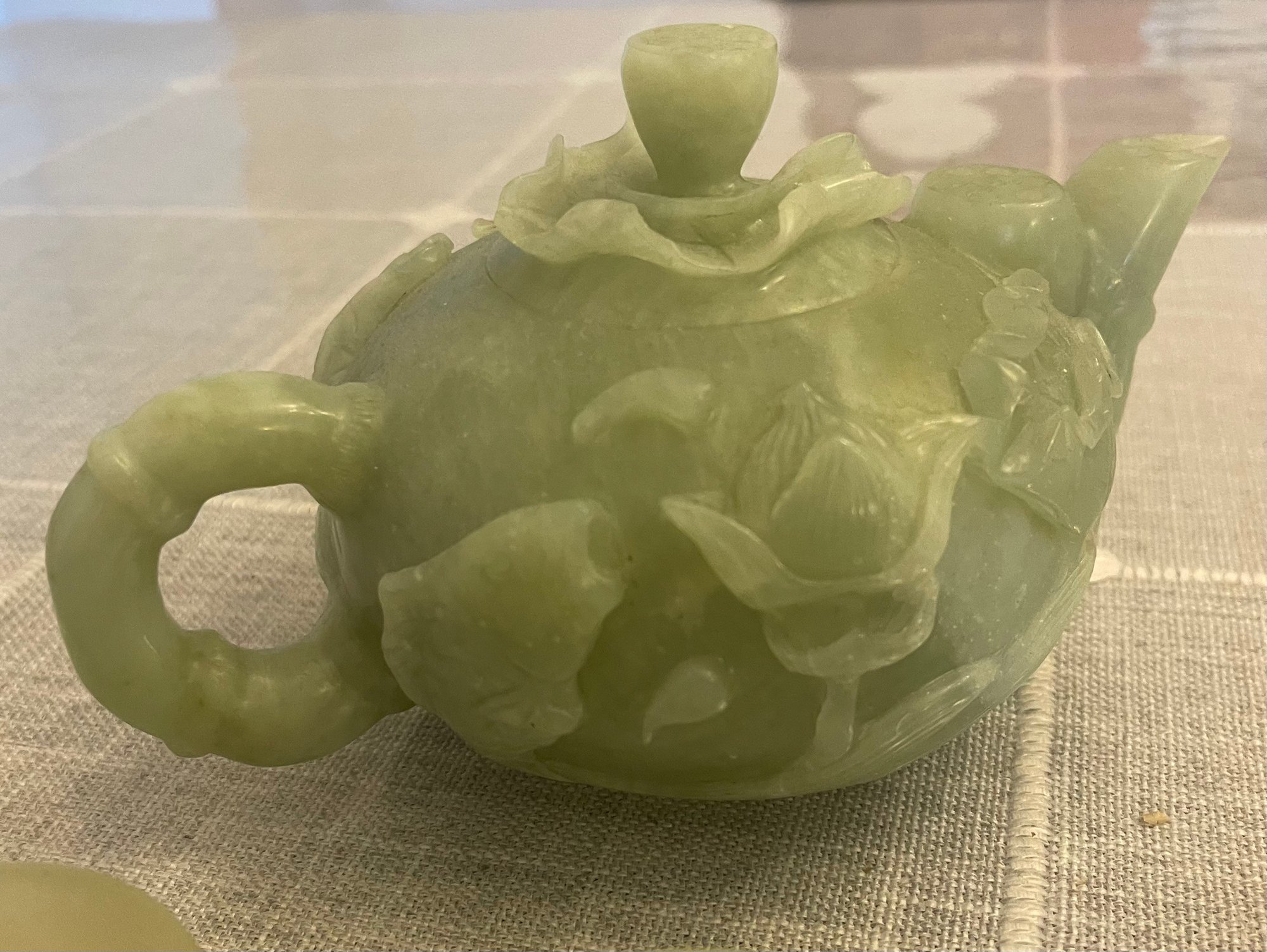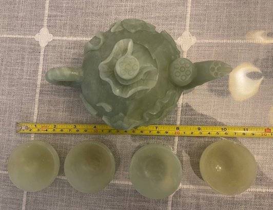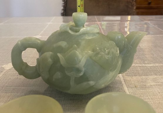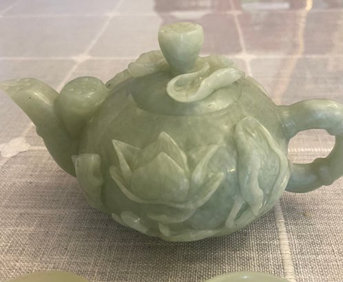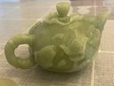 Heavy green jade teapot, 7 inches long, 4 inches wide, x 4.5 h