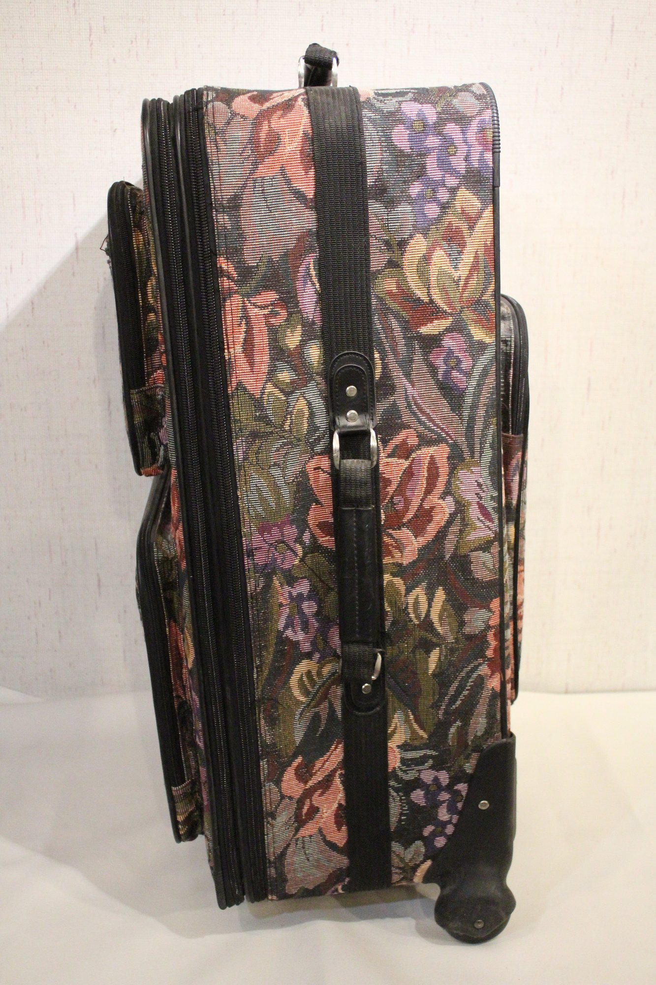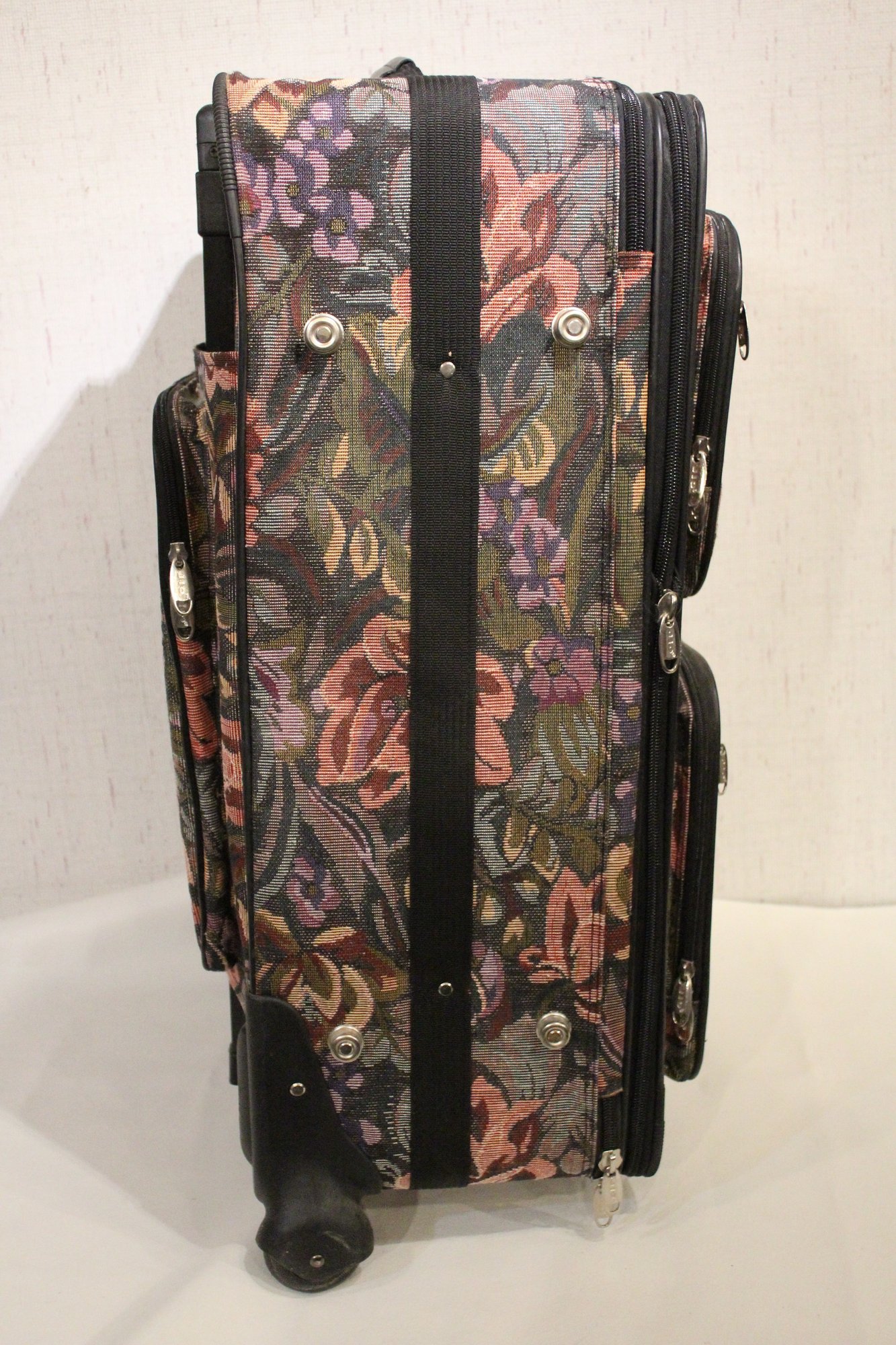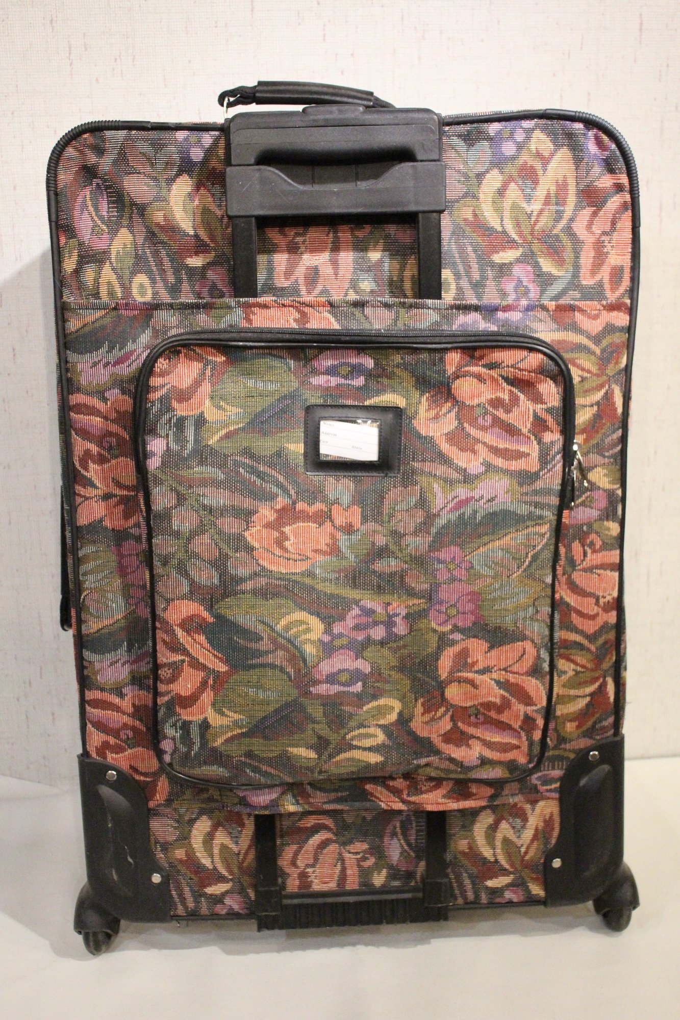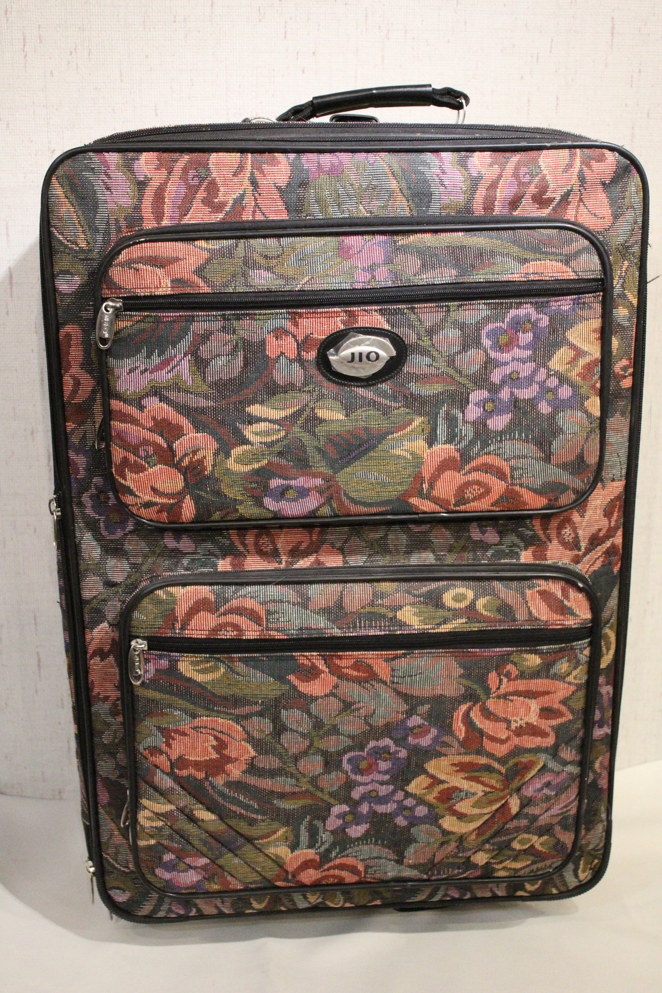 A Jio brand vintage-style floral tapestry pattern large suit case at 30" x 20" x 13". This item can not be shipped.