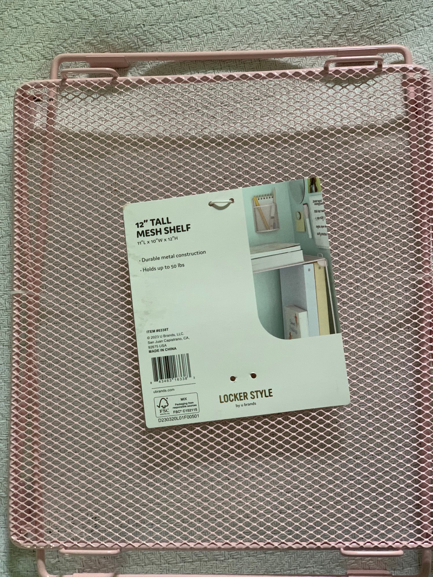 12” tall pink locker shelf. Never been used. In original packaging.