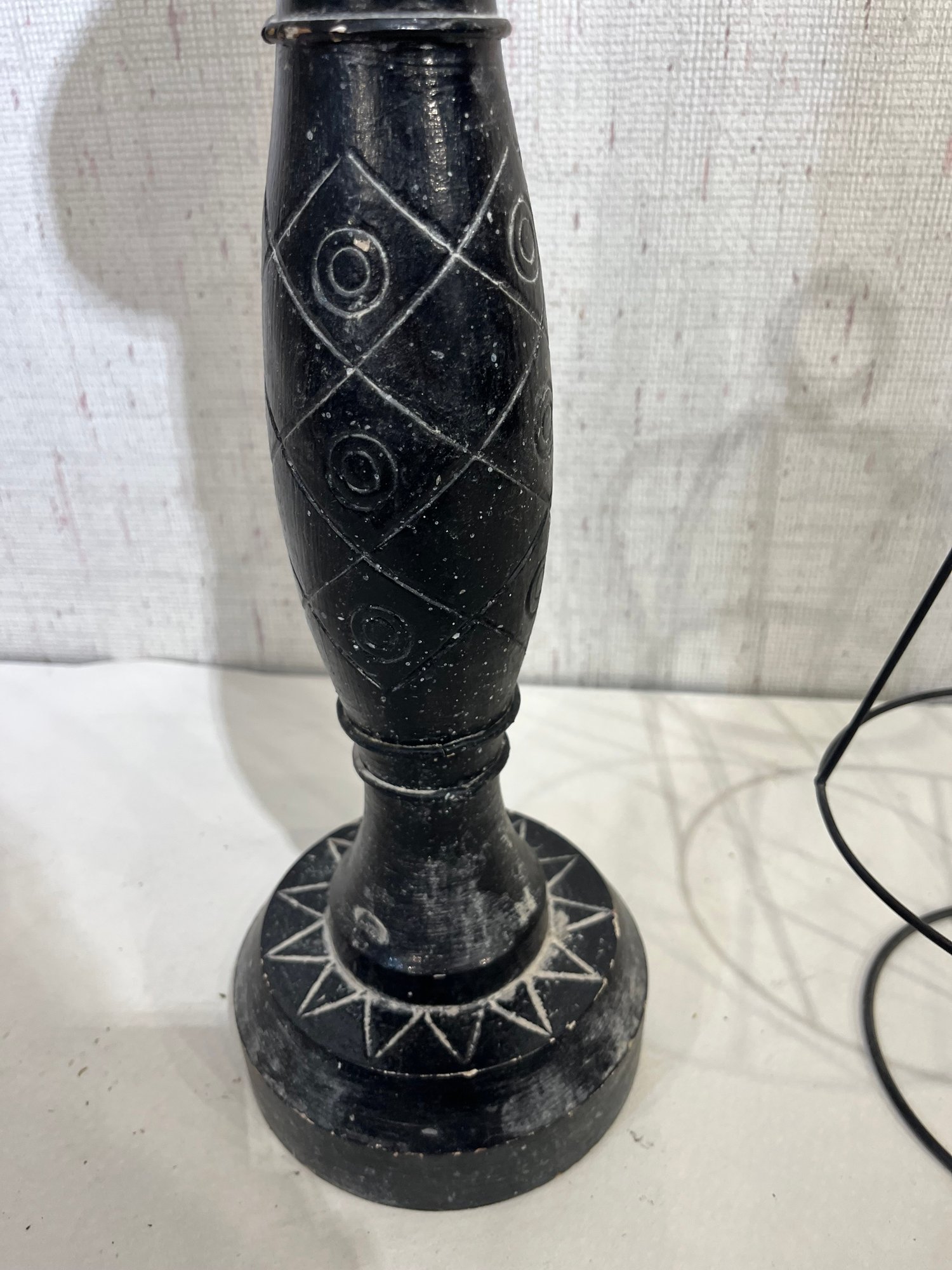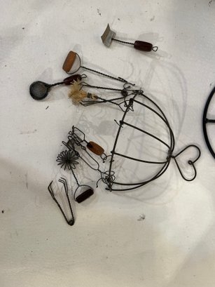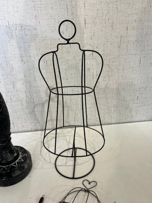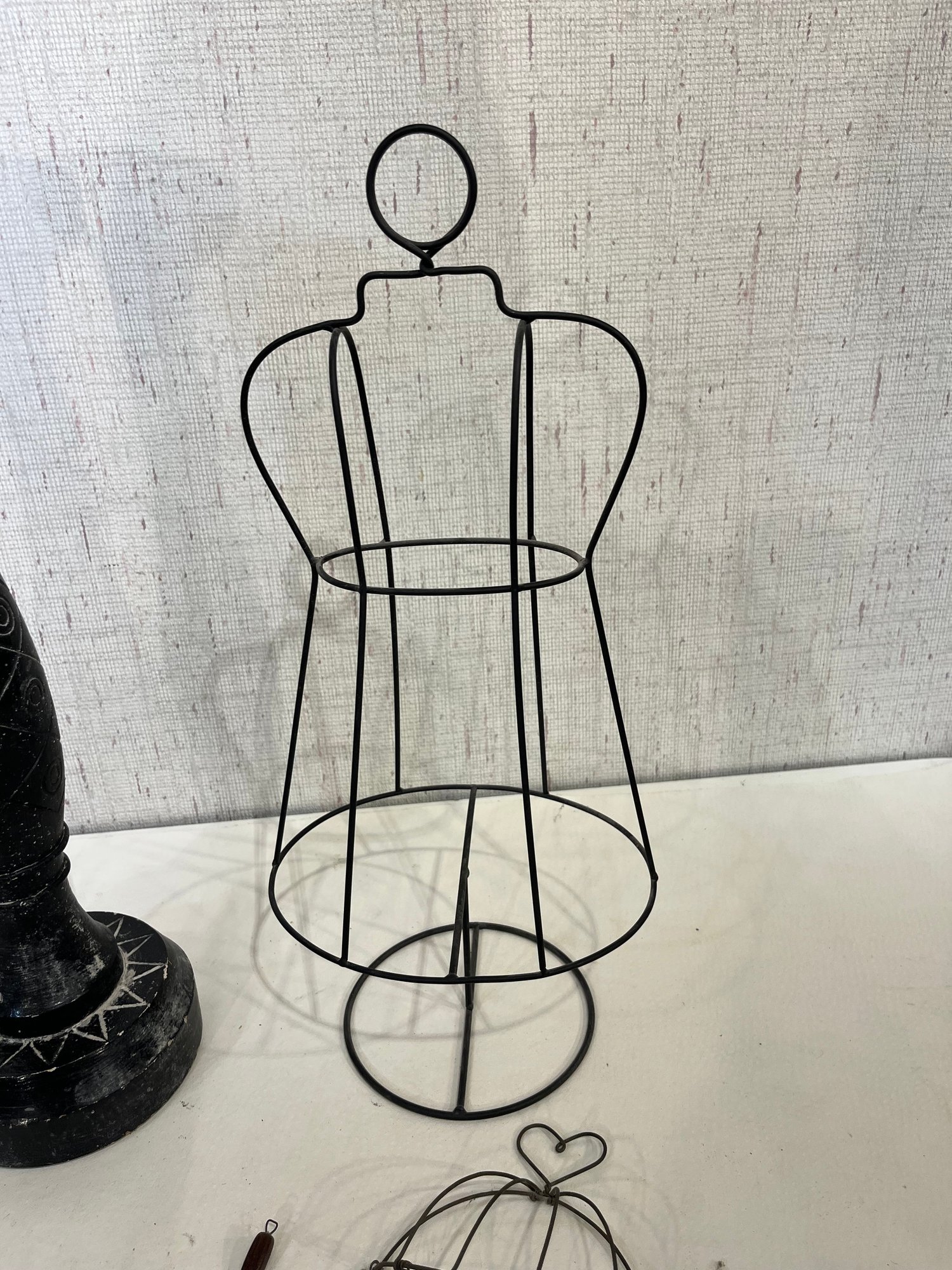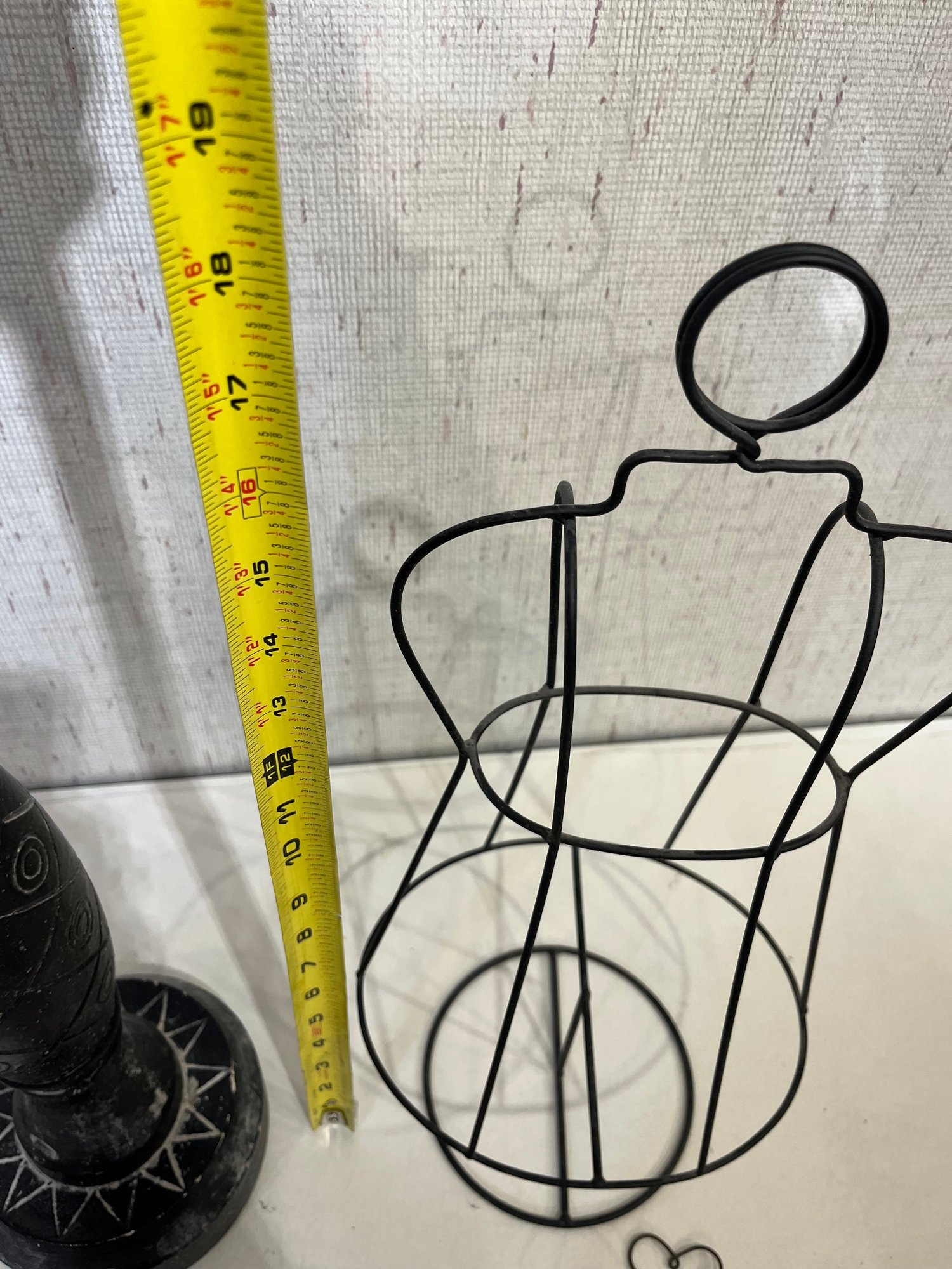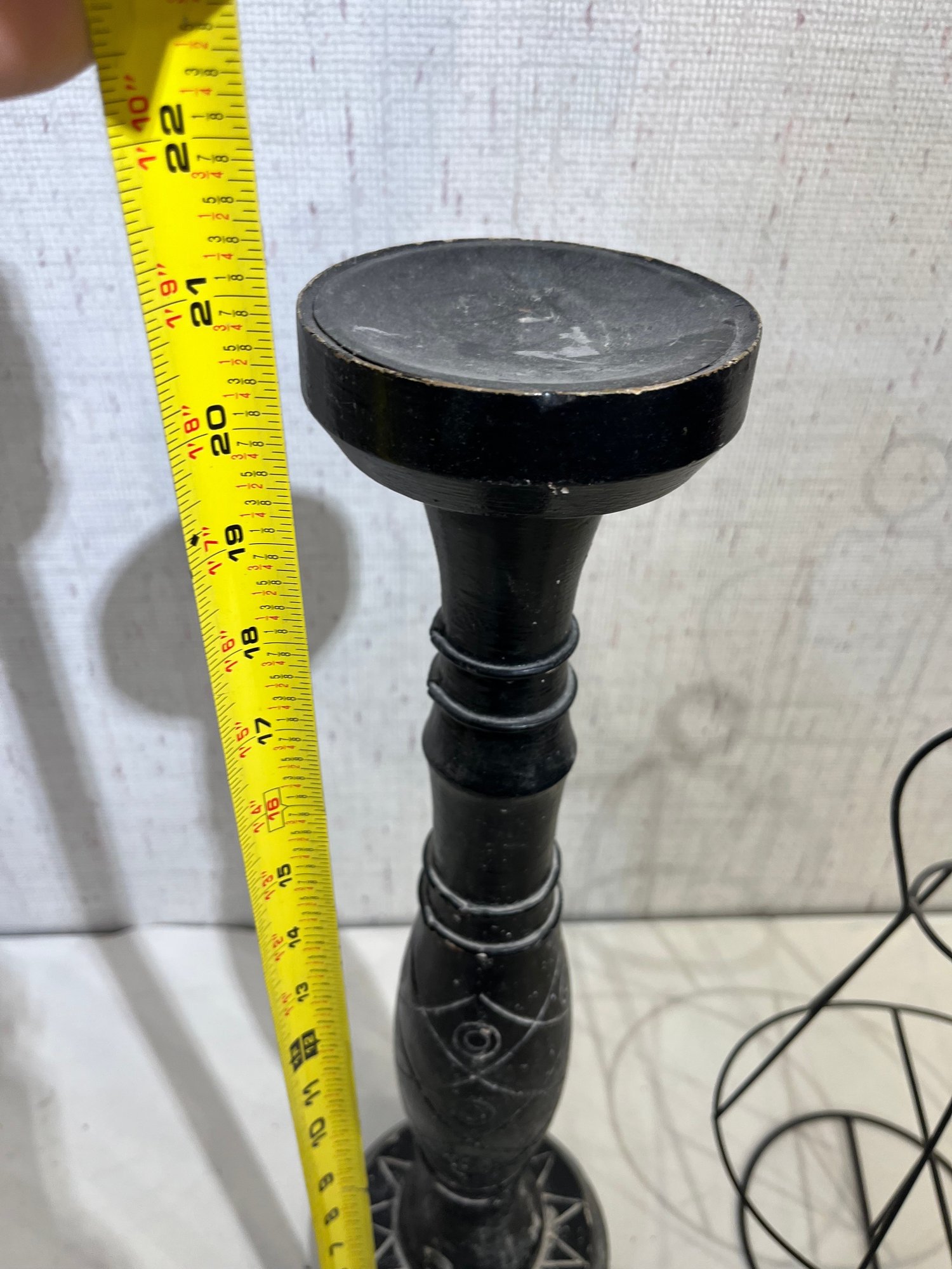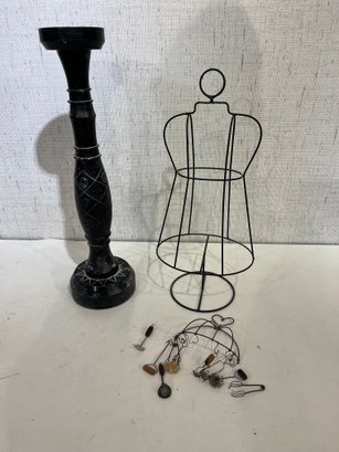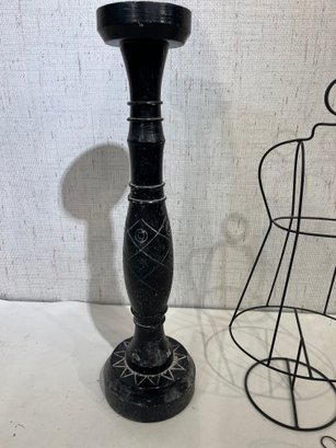 A large wood candle holder 21", with 2 wire decor pieces 18", and 8". These items can be shipped.