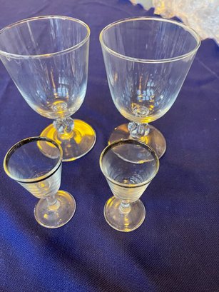 18 glass salad plates, 2 wine glasses and 2 cordial glasses