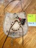 Leather bag with brown leather circle. Animal fur tassel on the strap.