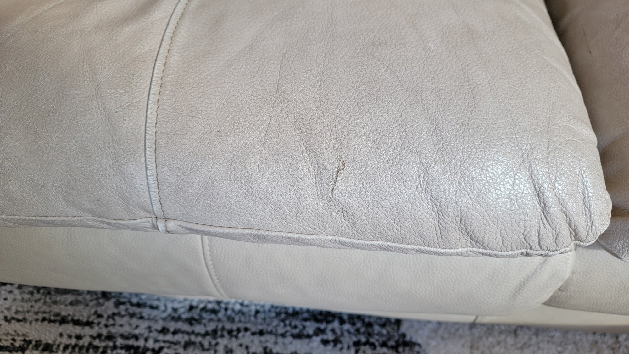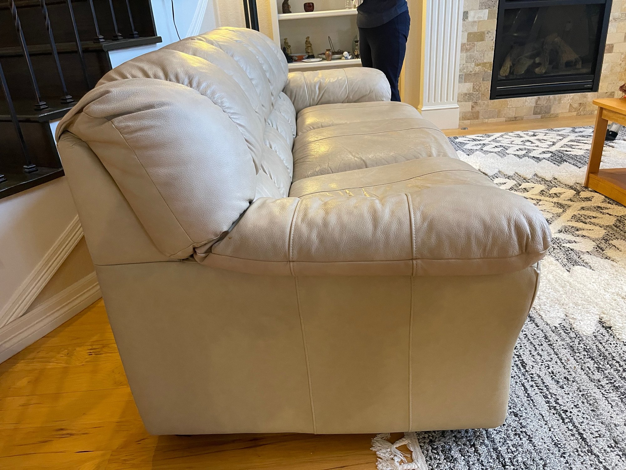 very good condition. No pet, non-smoking home. No stains or tears . I small scratch , see photo. 92 W, 36 H, 40 deep