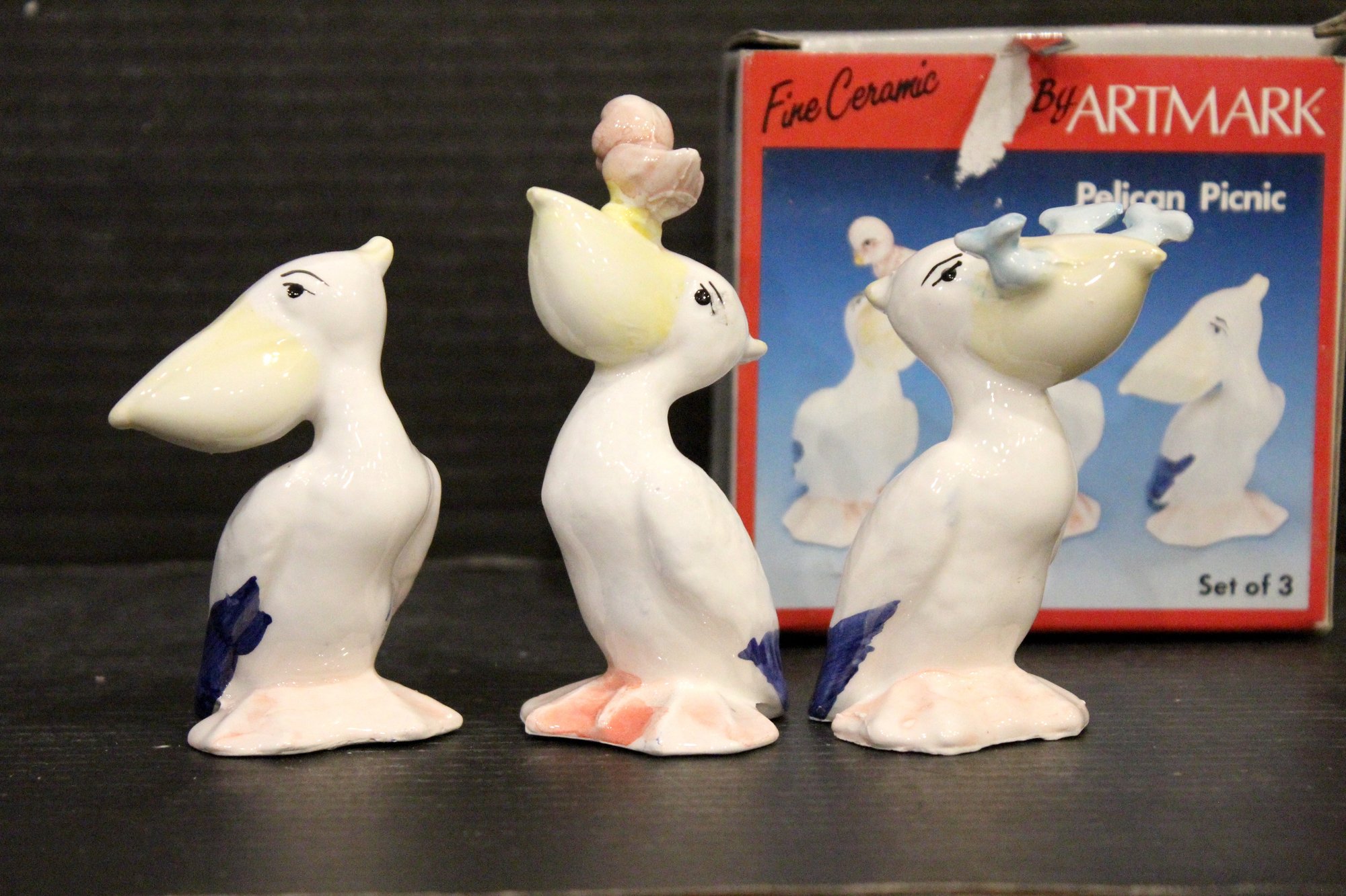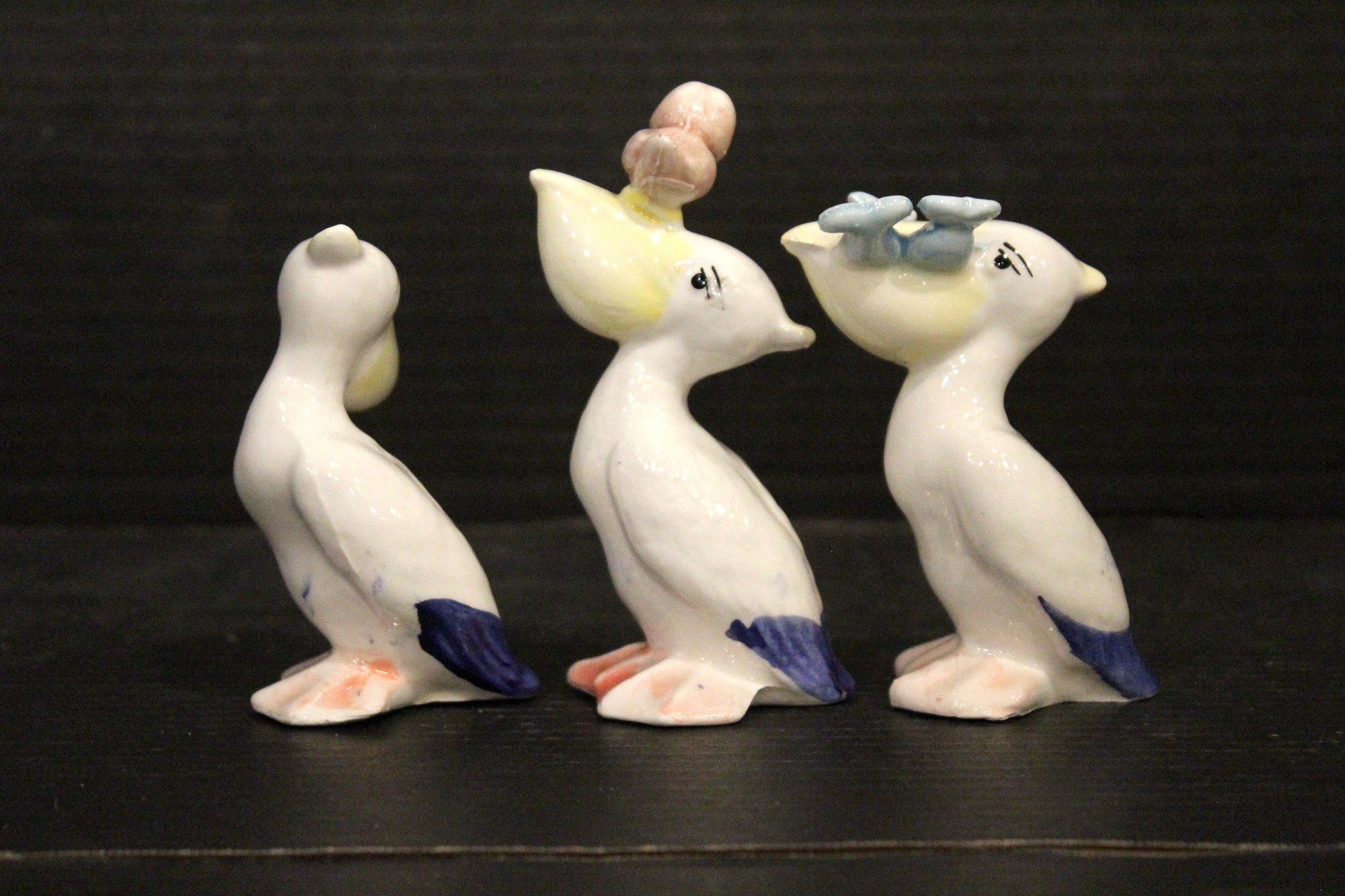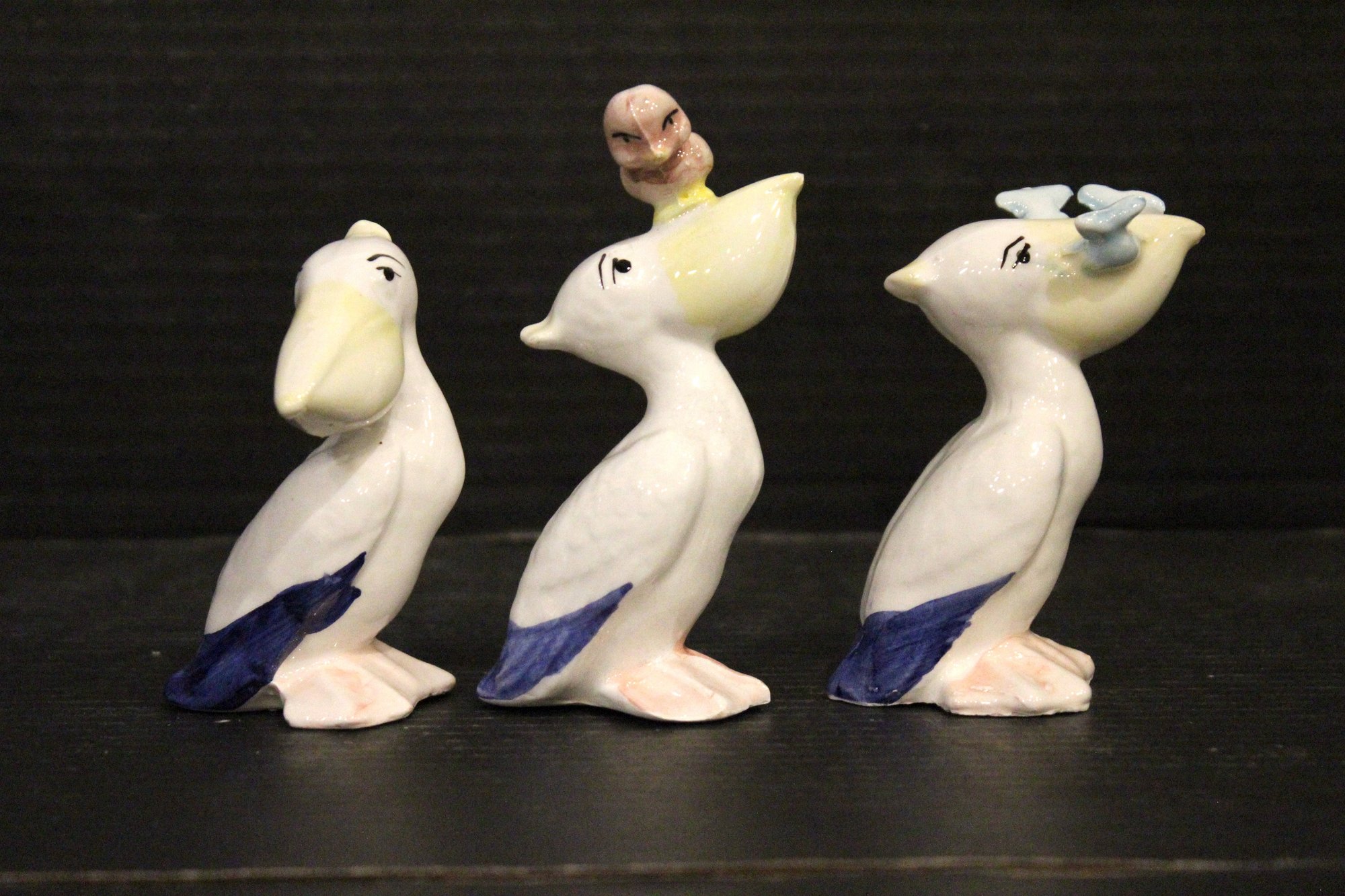 Set of three Vintage Pelican Picnic ceramic figurines 4" tall