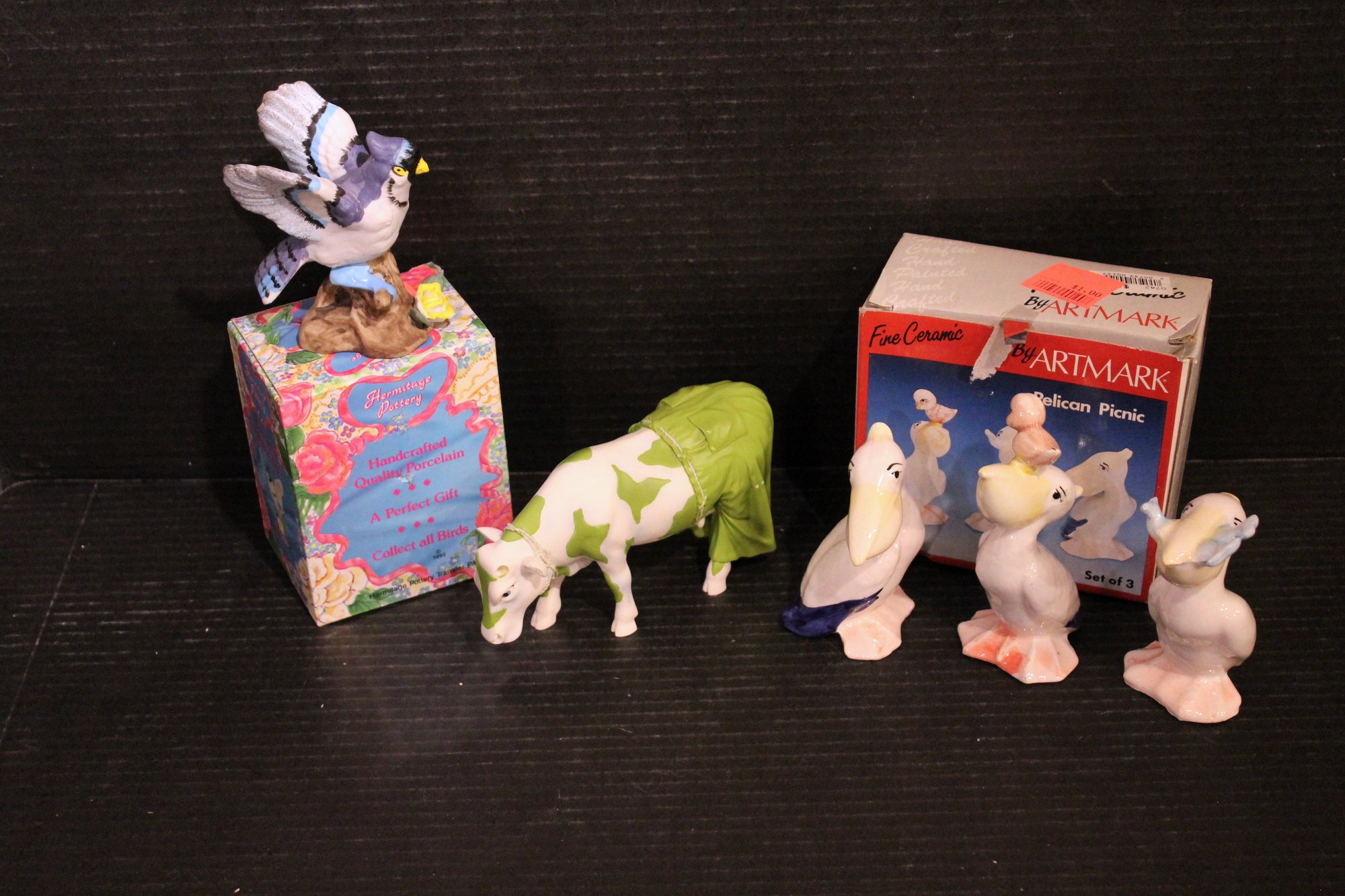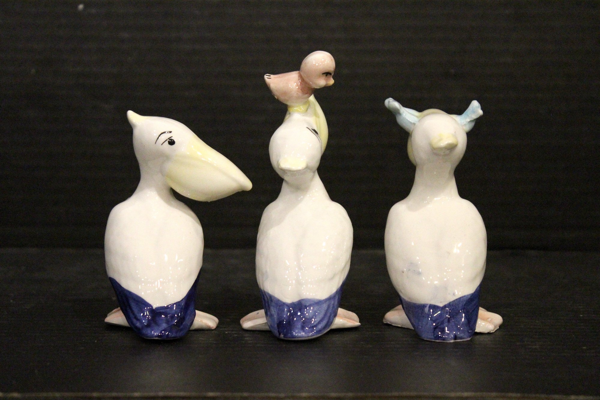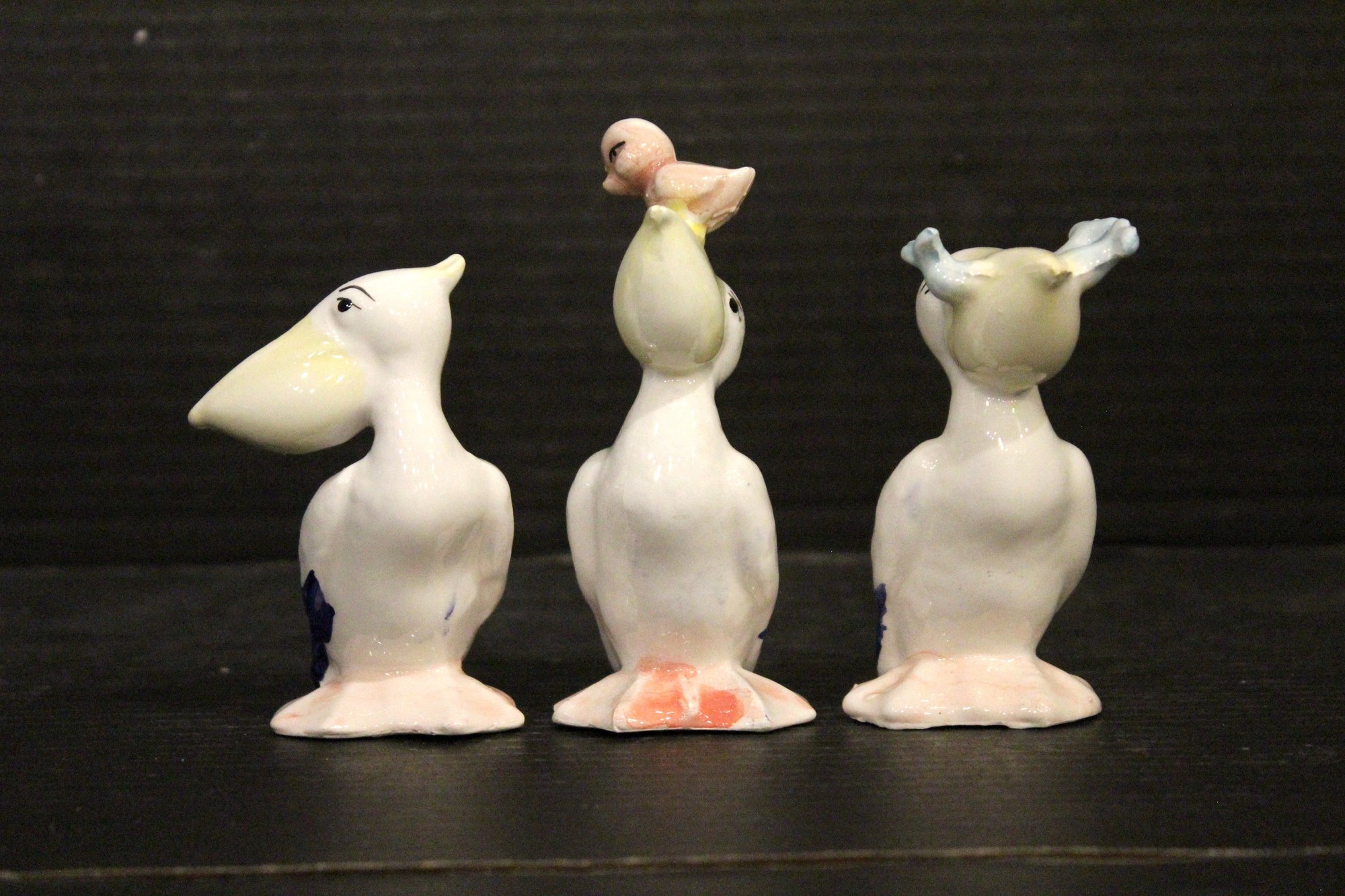 Set of three Vintage Pelican Picnic ceramic figurines 4" tall