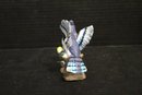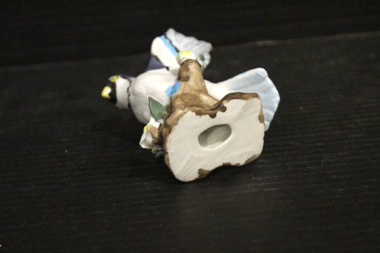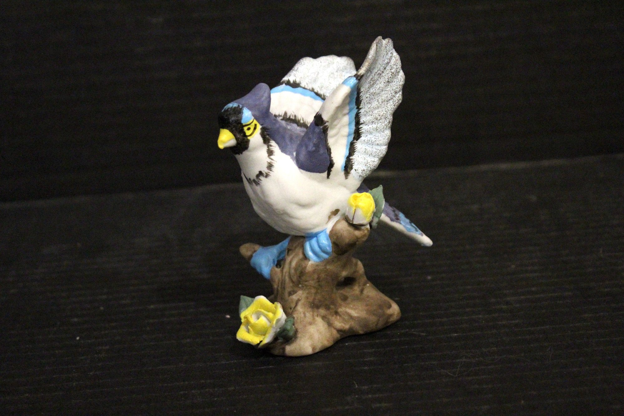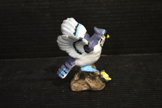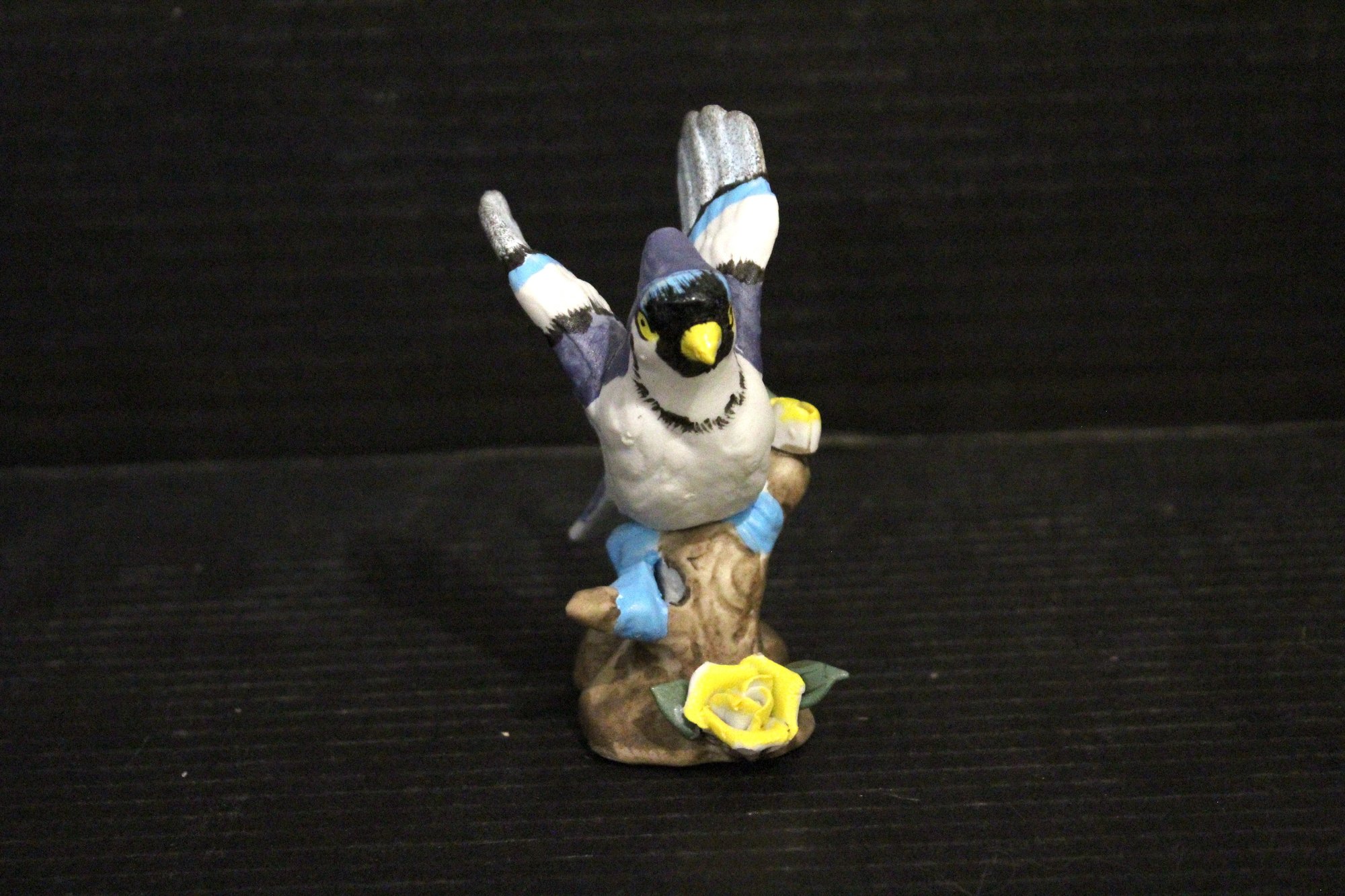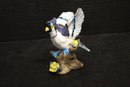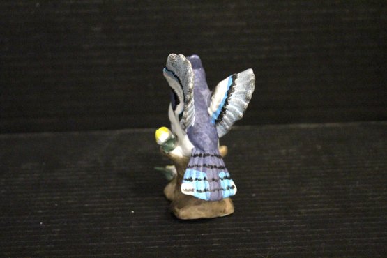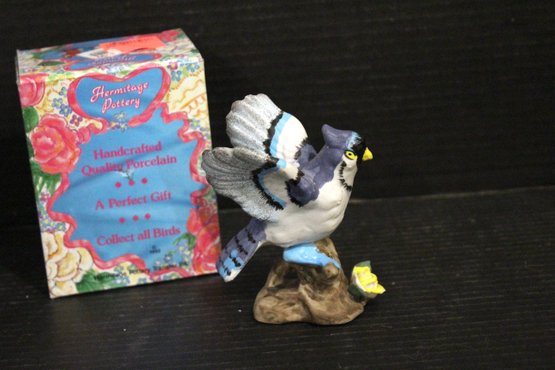 Hermitage pottery vintage hand painted vibrant blue jay ceramic figurine, 4" x 4"