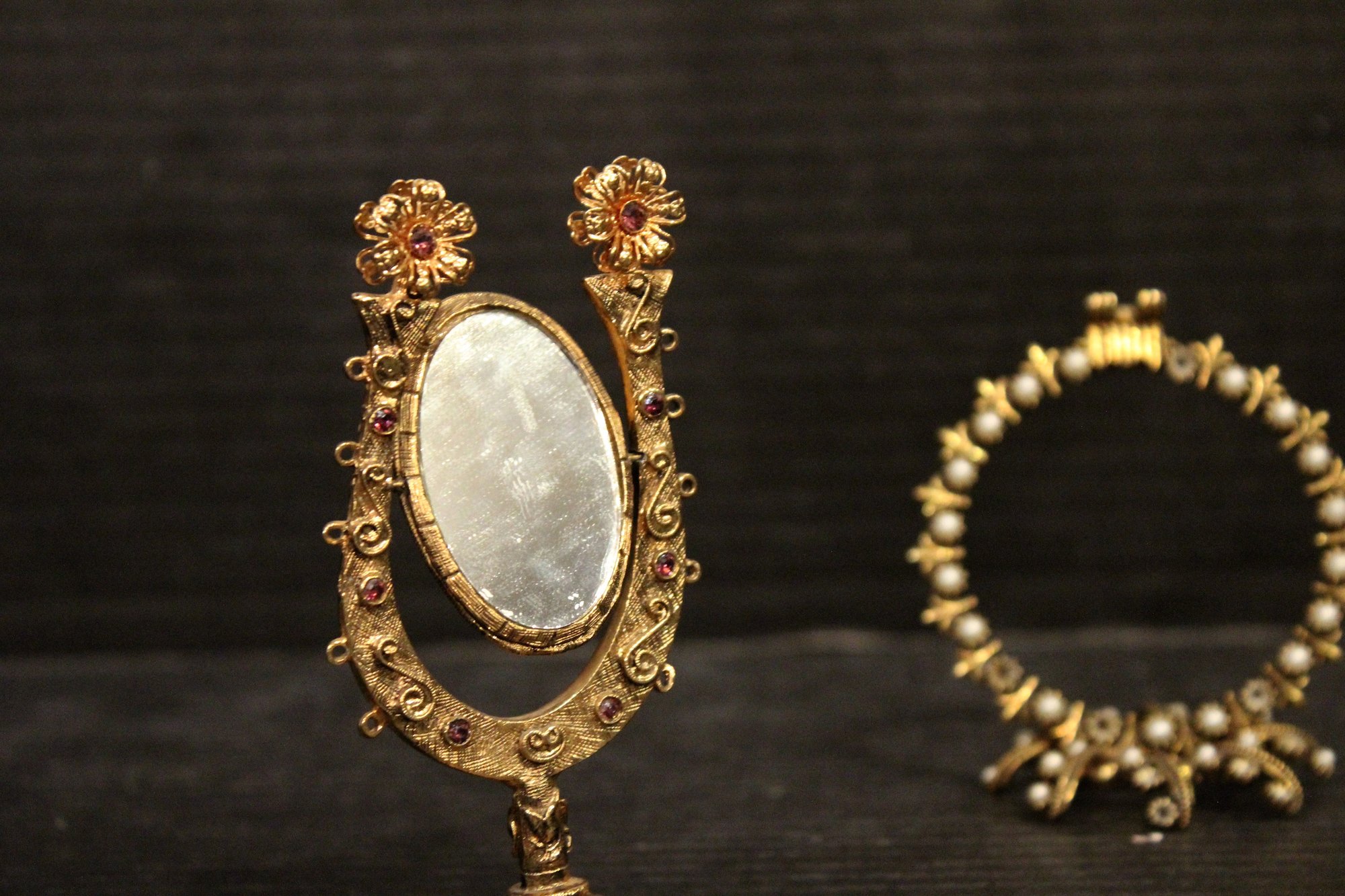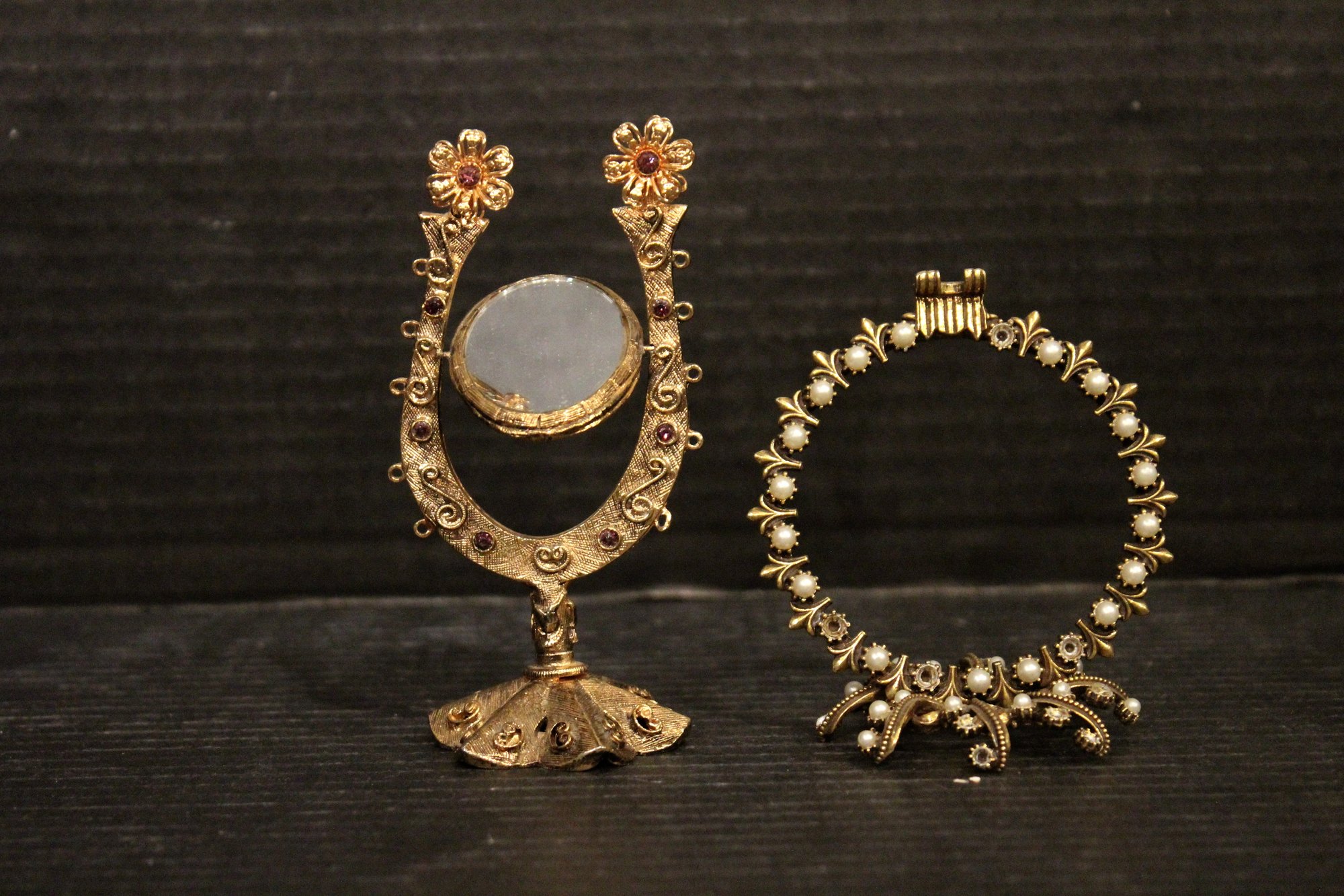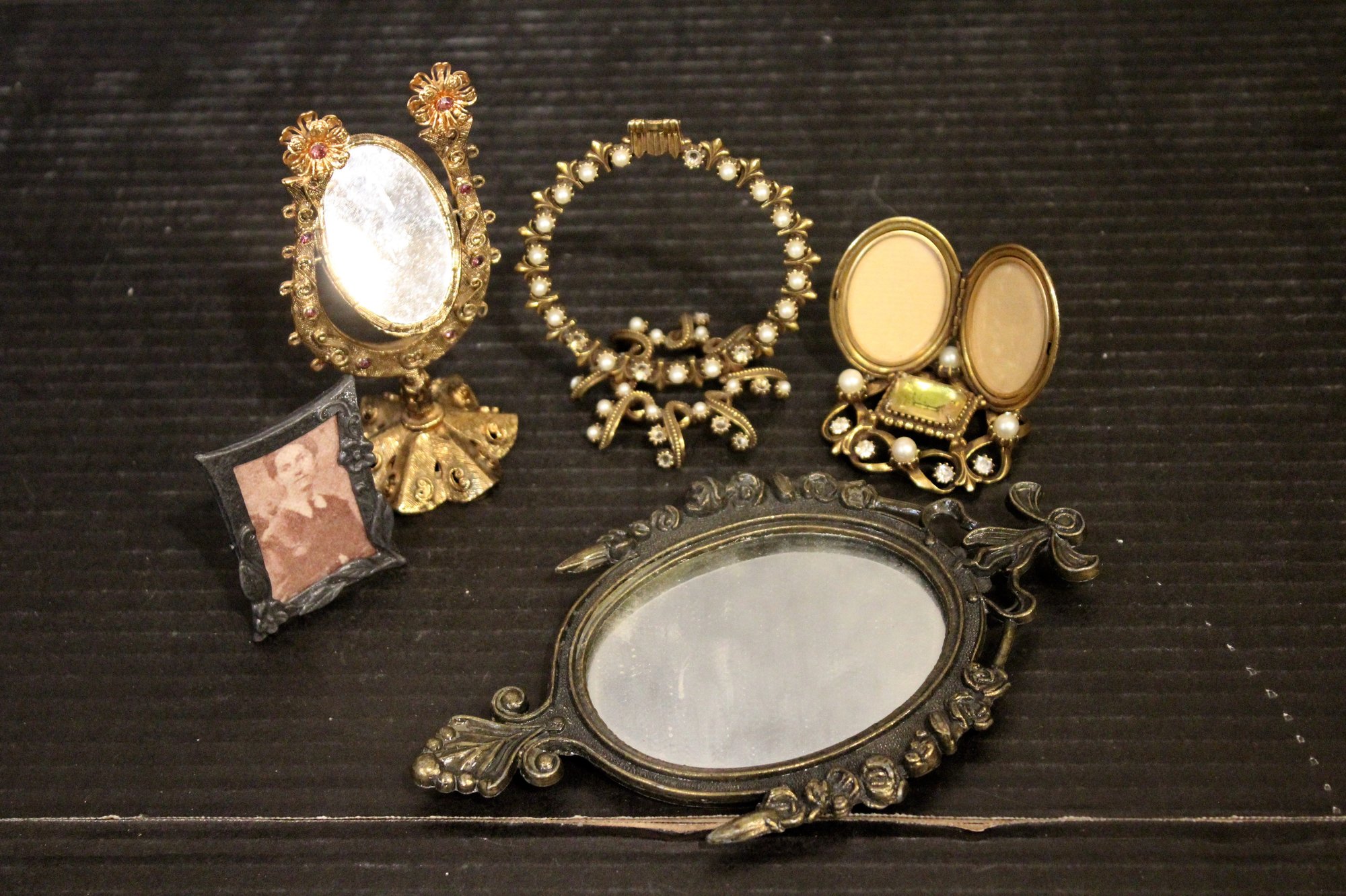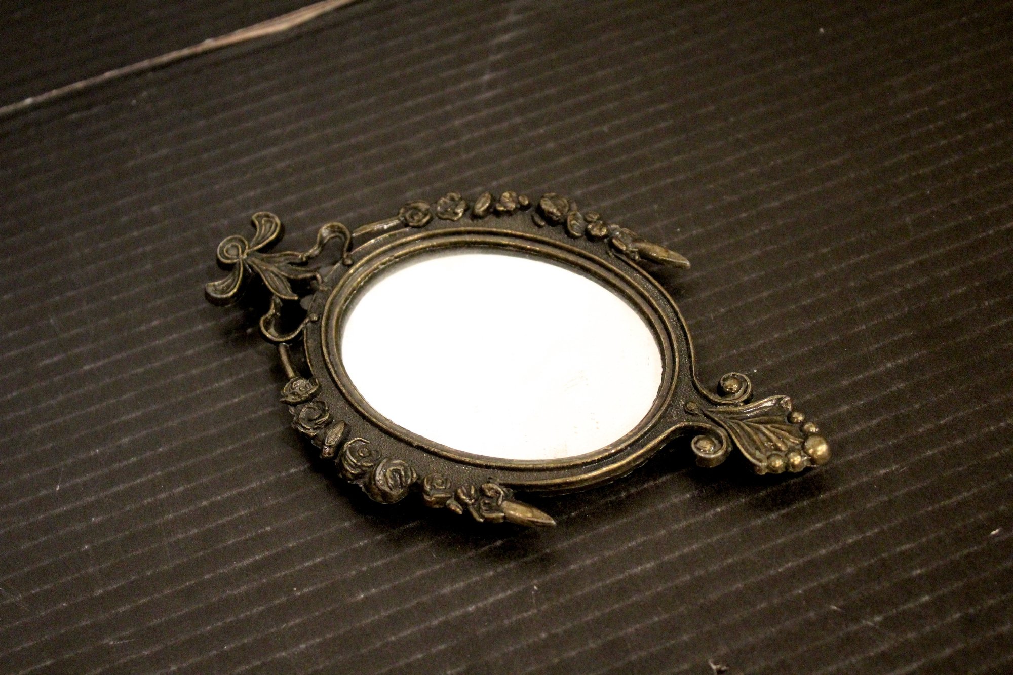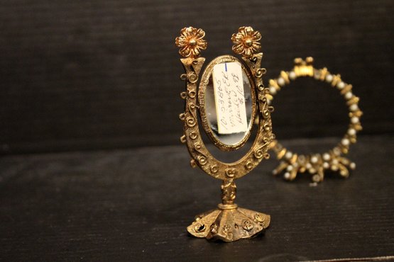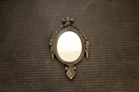 vintage Italian ornate metal-framed mirror 6"