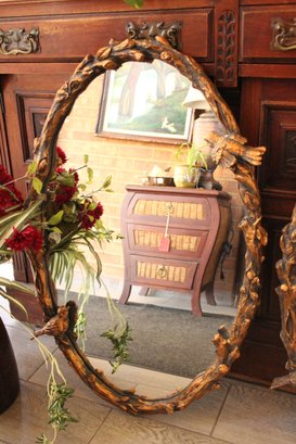 Lamps Plus Uttermost Plaza Love Birds antique style gold leaf oval wall mirror, 34". This item is not eligible for shipping.