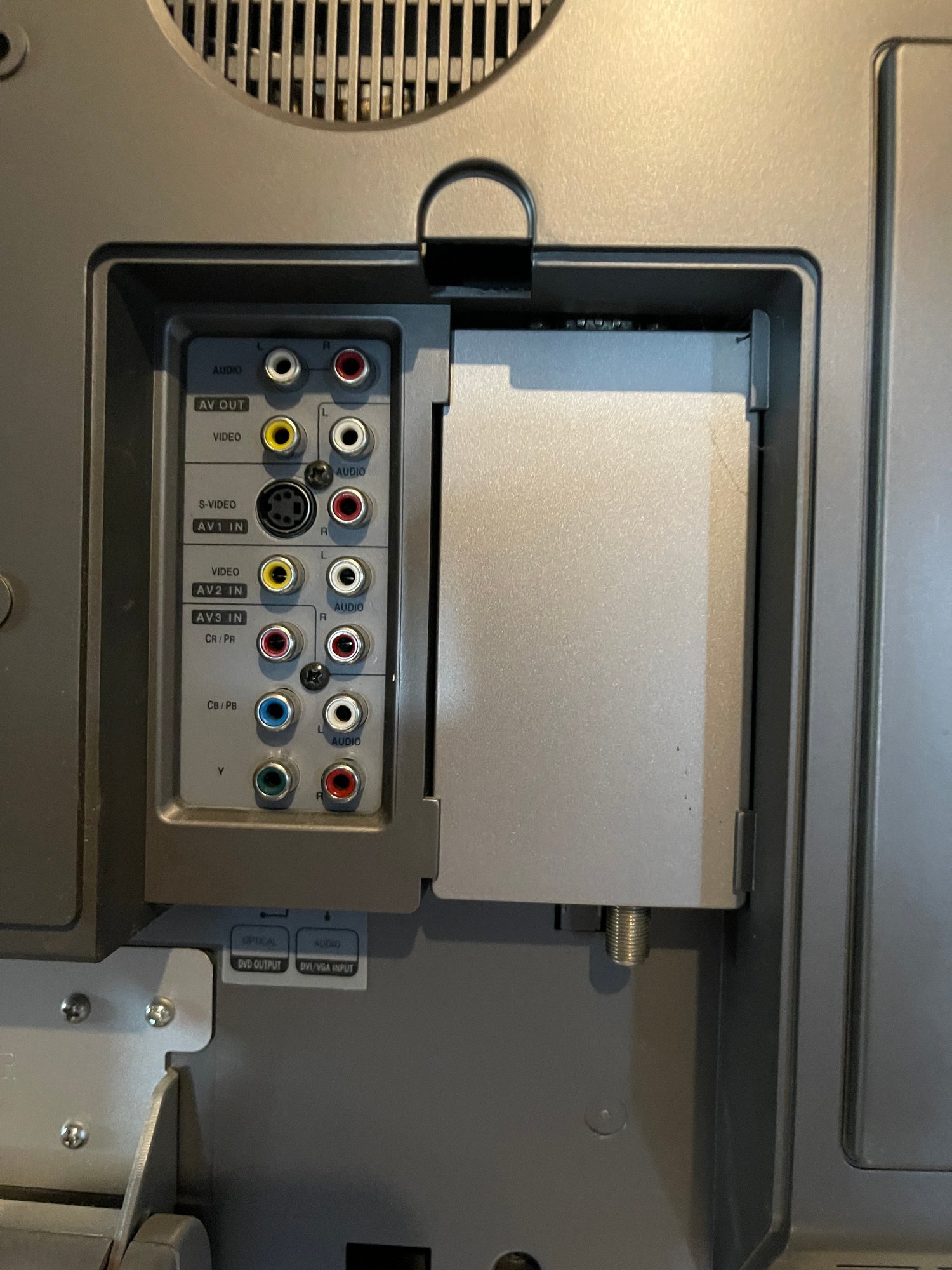 screen 13.5 x 21.5 x 25.5 , works, DVD player built in. HDTV