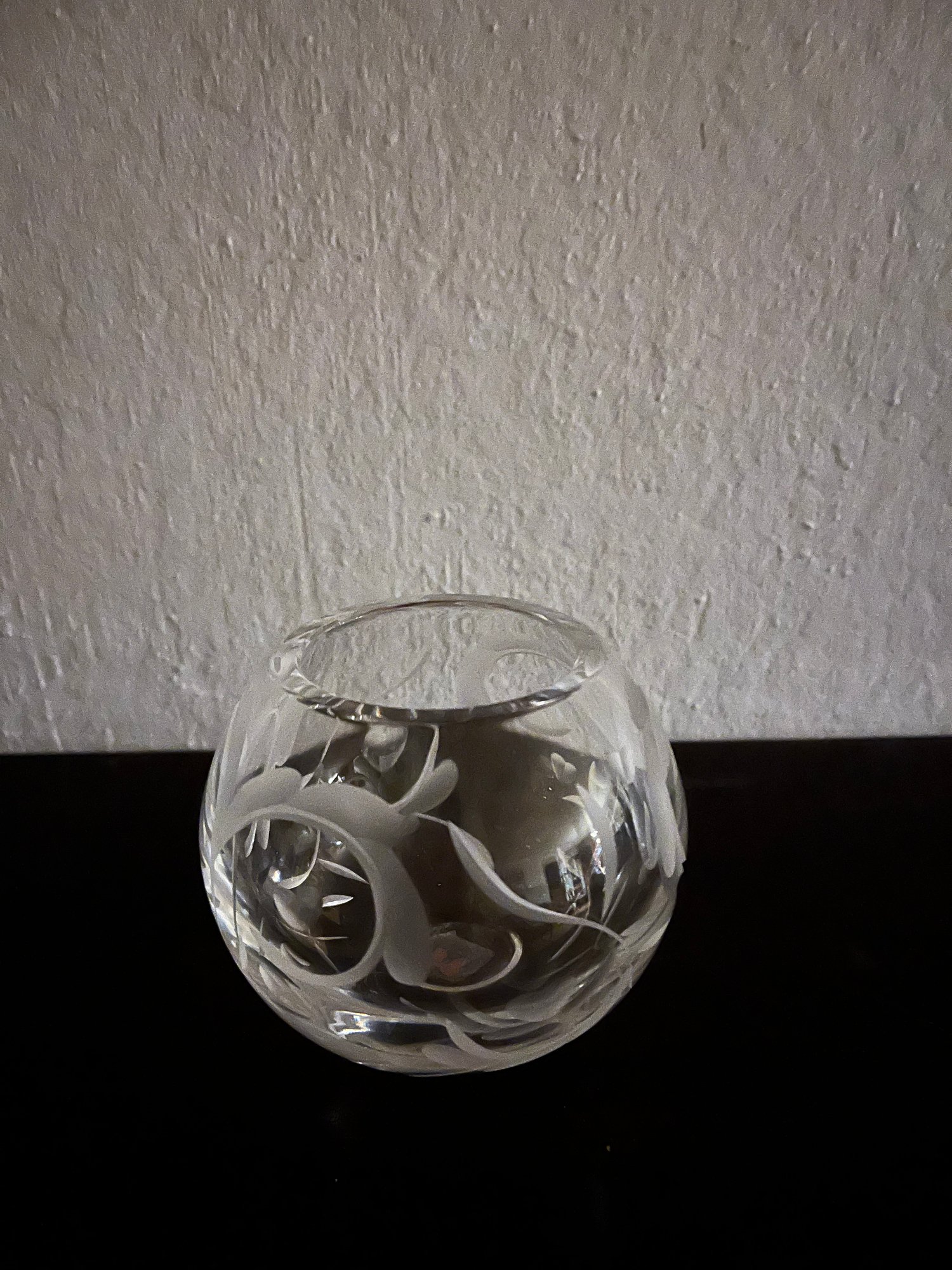 Lovely Waterford Crystal votive candle holder, etched with fronds and small hearts.