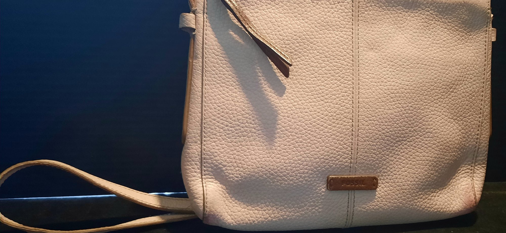 Crossbody handbag by Fossil. It has an zippered outside pocket and the main compartment. A bit of wear but in great condition.