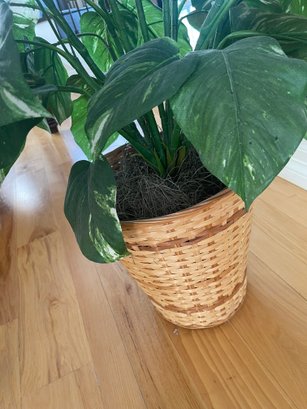 48 inches high, approx 30 inches wide, basket is 11 inches in diameter