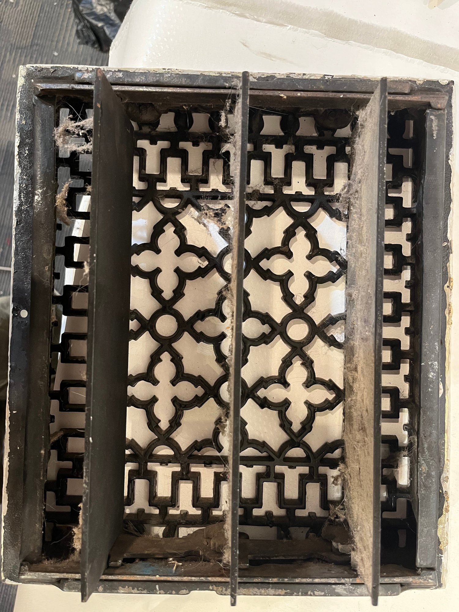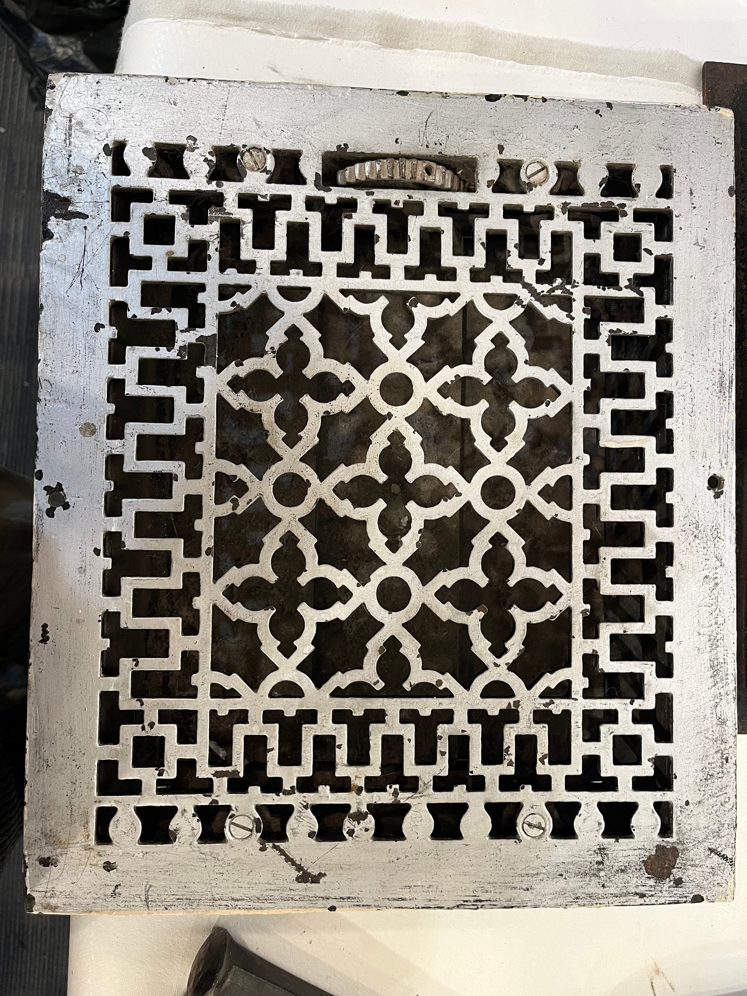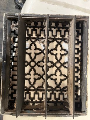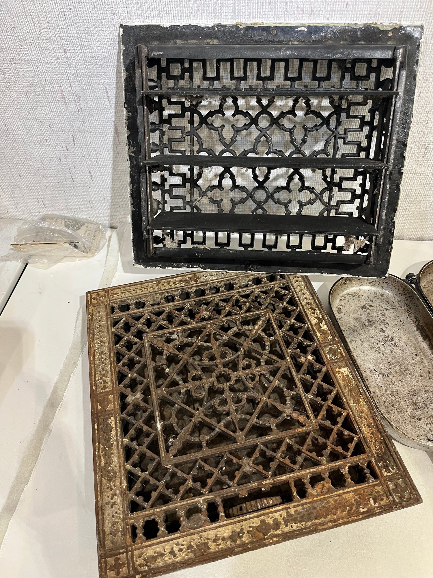 antique cast-iron heat grates or vents, 14" x 12" x 2.5"