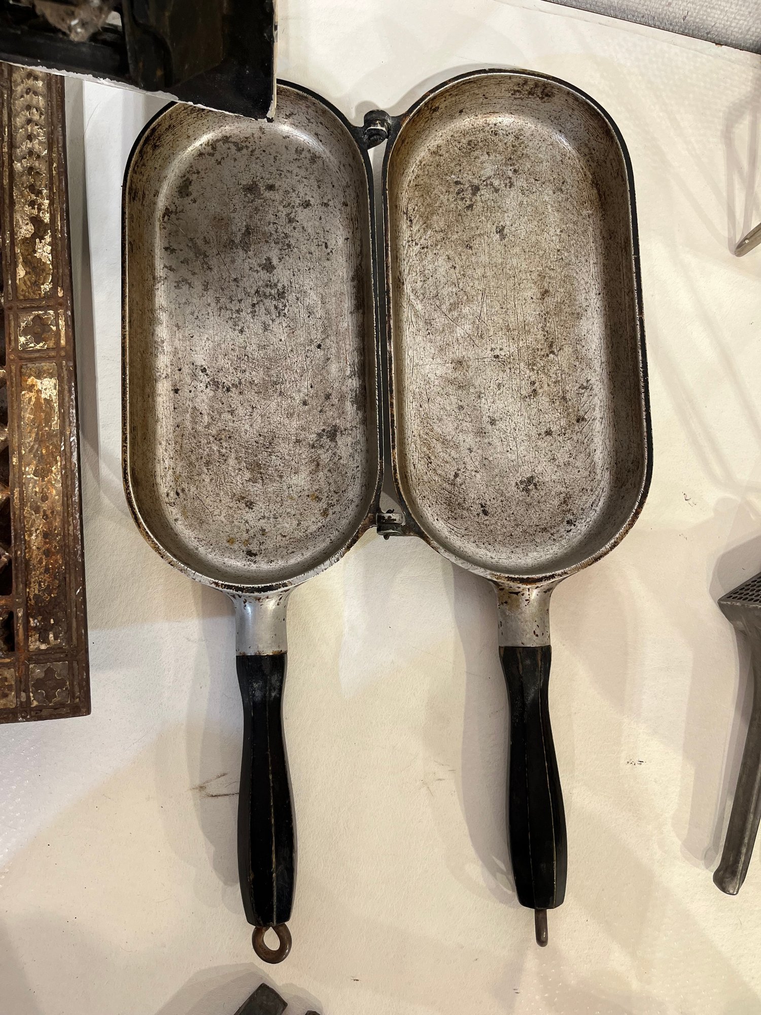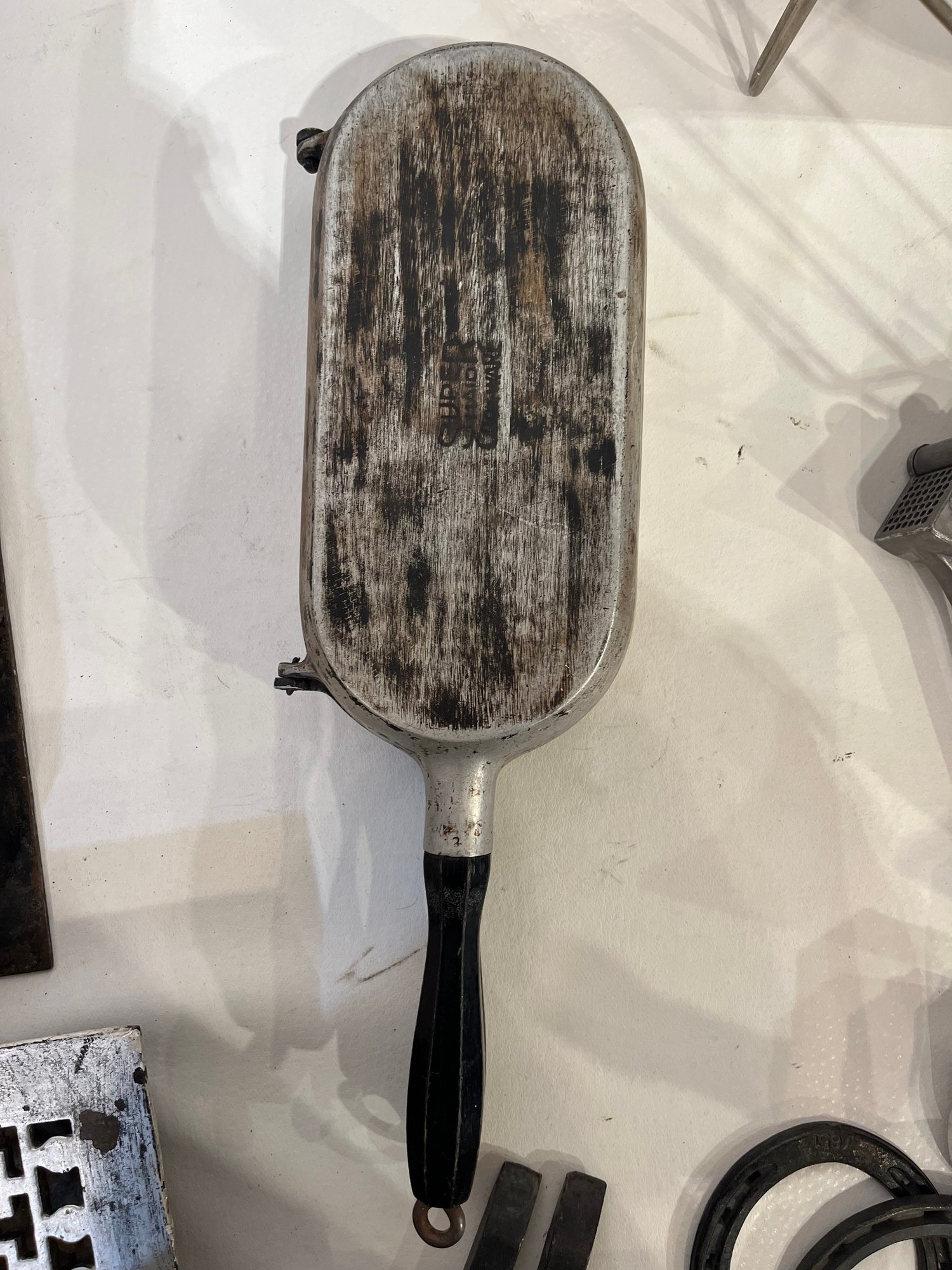 vintage Miracle Maid or Super Maid cast aluminum folding omelet or fish pan, 17" x 6" x 3"