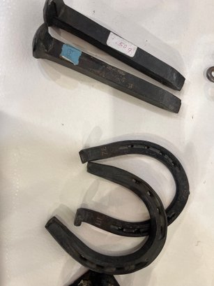 2 horse shoes 5" x 5" and 2 huge nails 7"