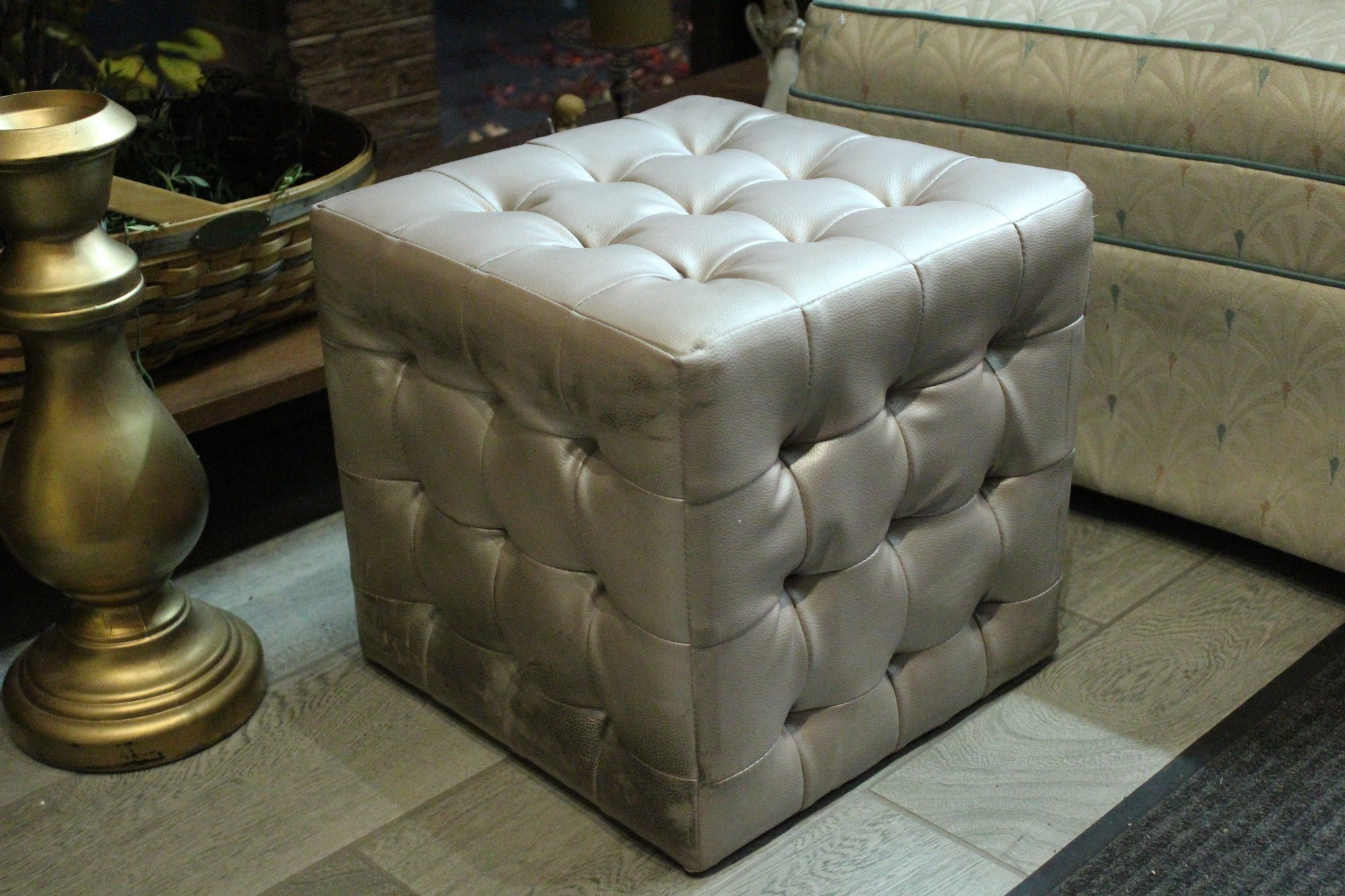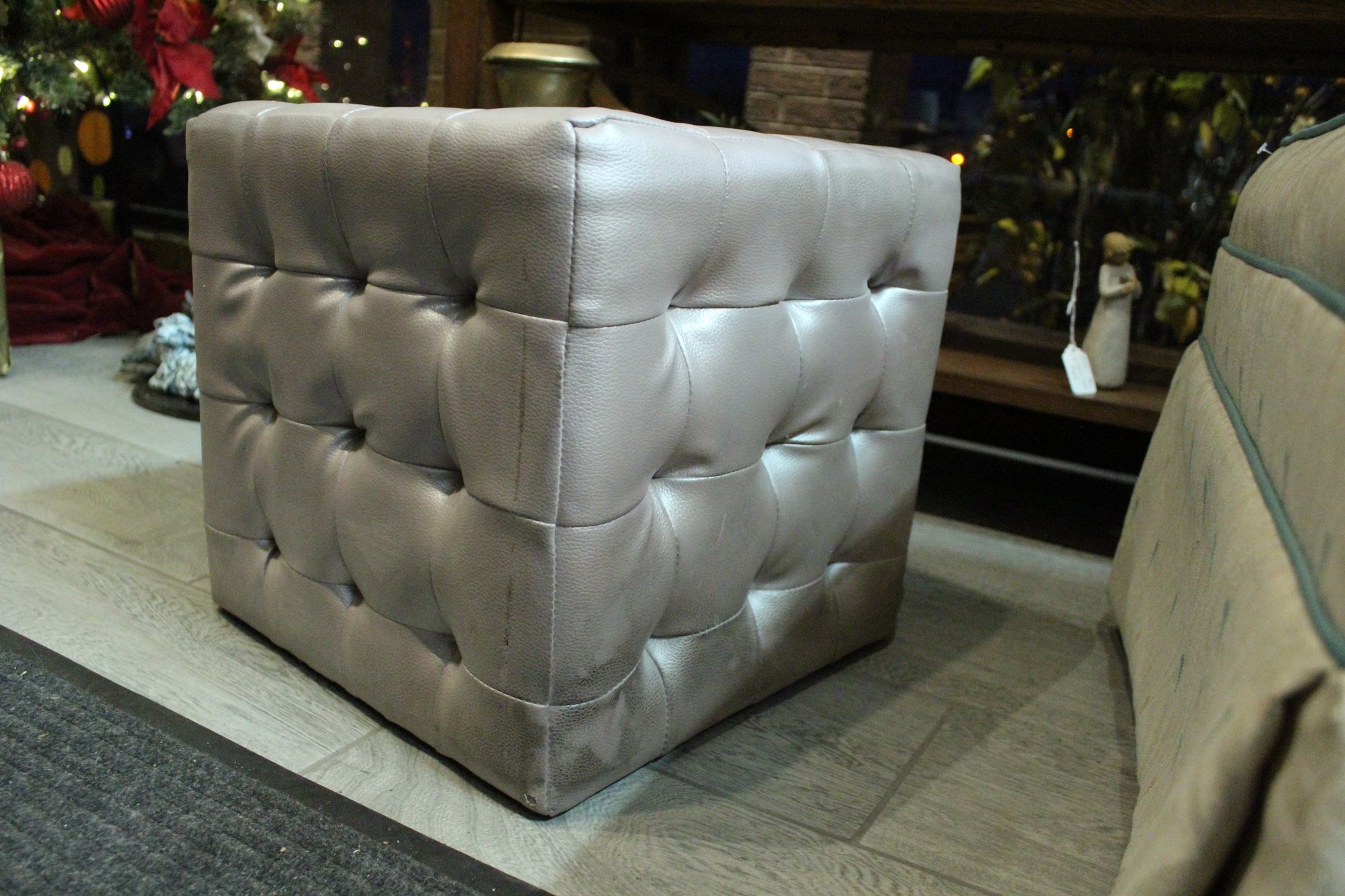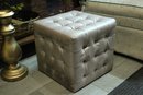A metallic silver cube ottoman in faux leather, 12.5" x 12.5" x 12.5". This item can not be shipped.