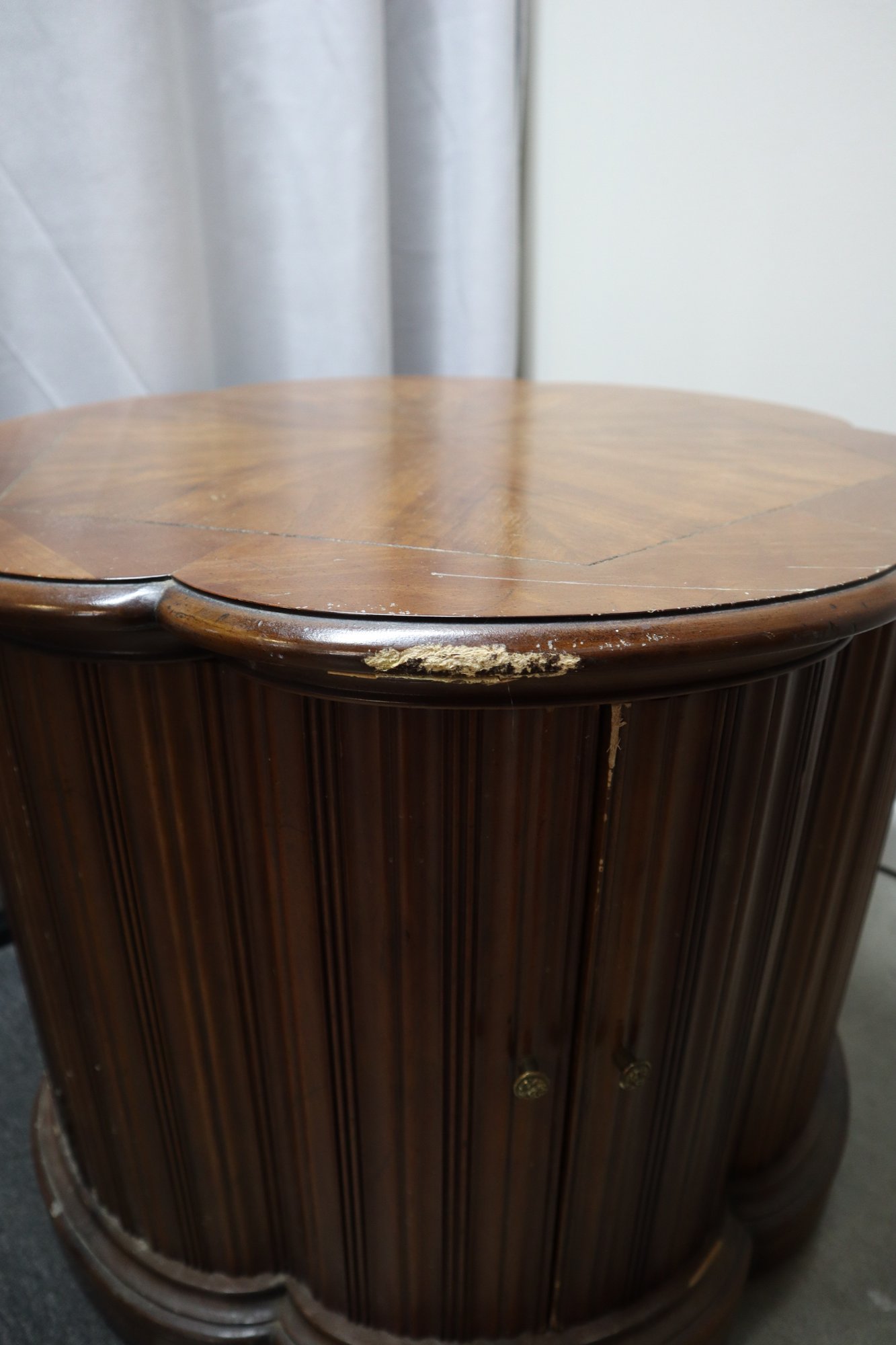 Notes: There is minor cosmetic damage from wear and one spot of deeper damage on the top, as well as a few dings in the doors. The right hand door sticks slightly on opening and closing.
