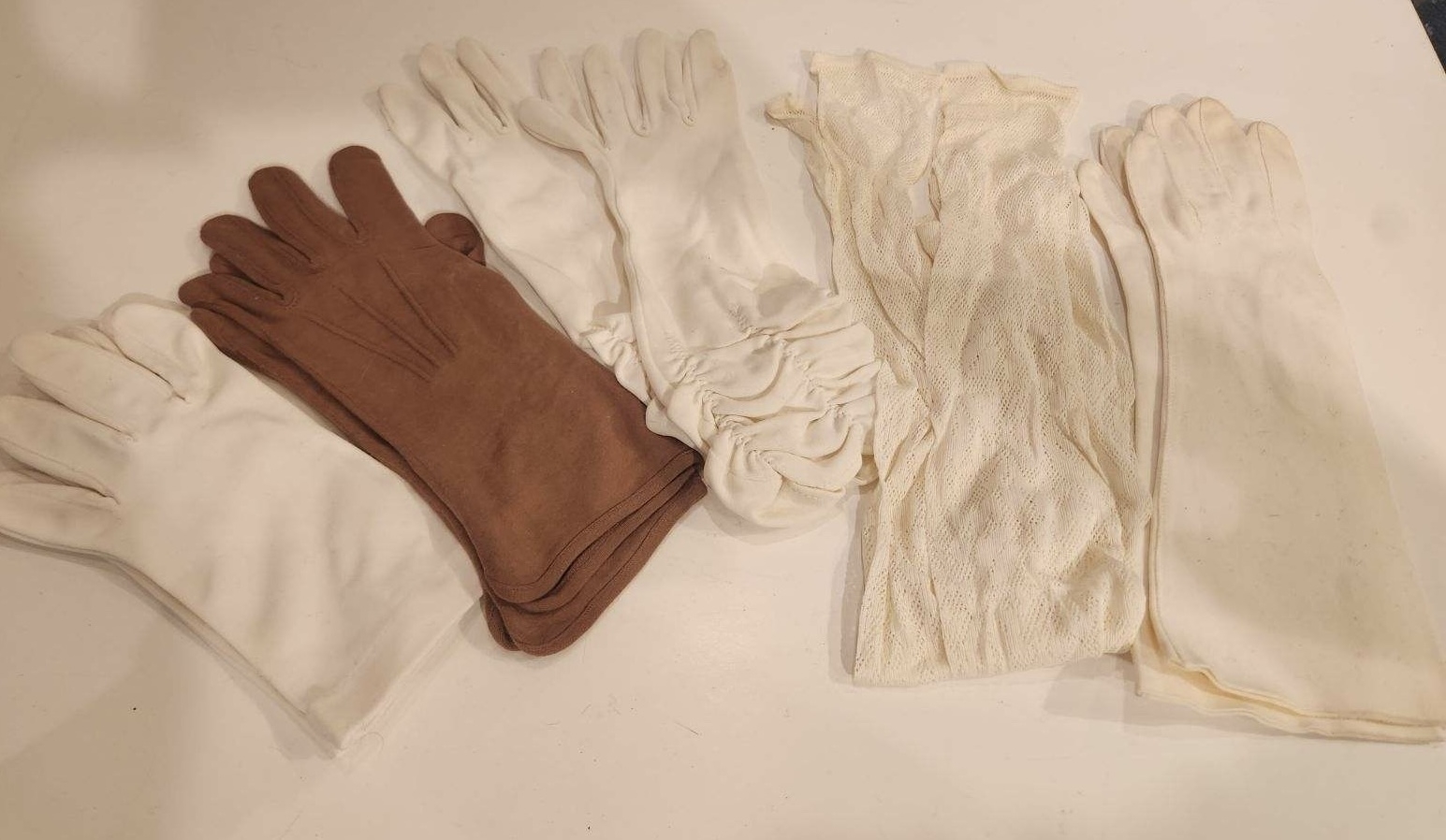 5 pairs of vintage women's gloves, including a pair of stretch fingerless elbow gloves for when you want to dress like Madonna. All vintage and in nice condition.