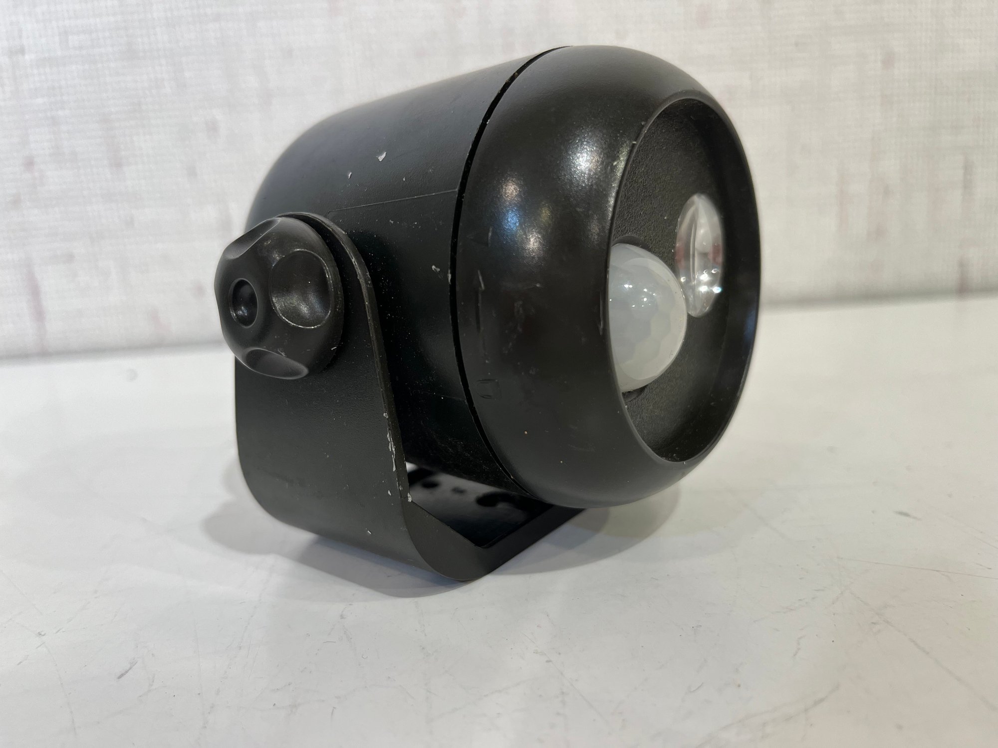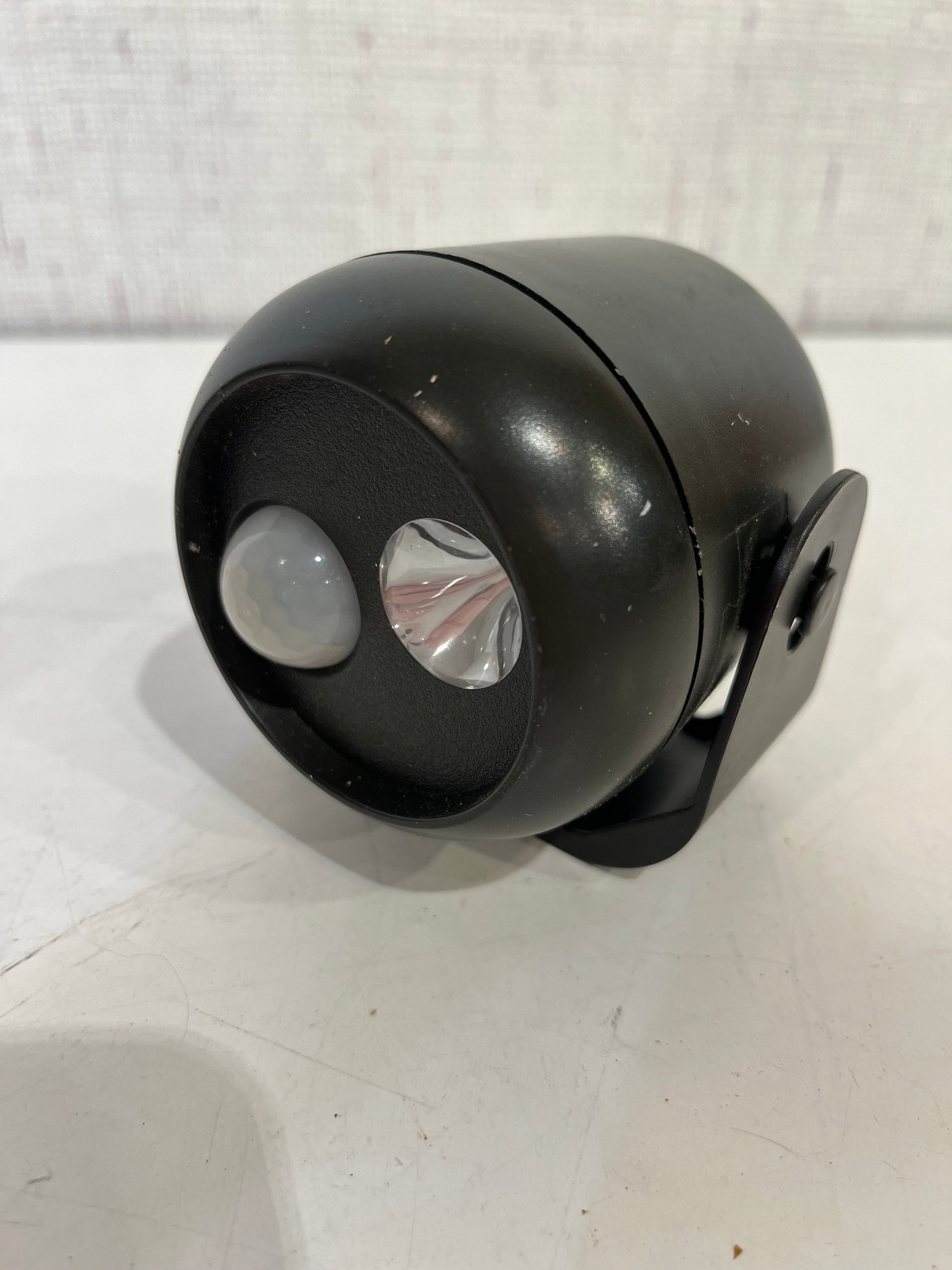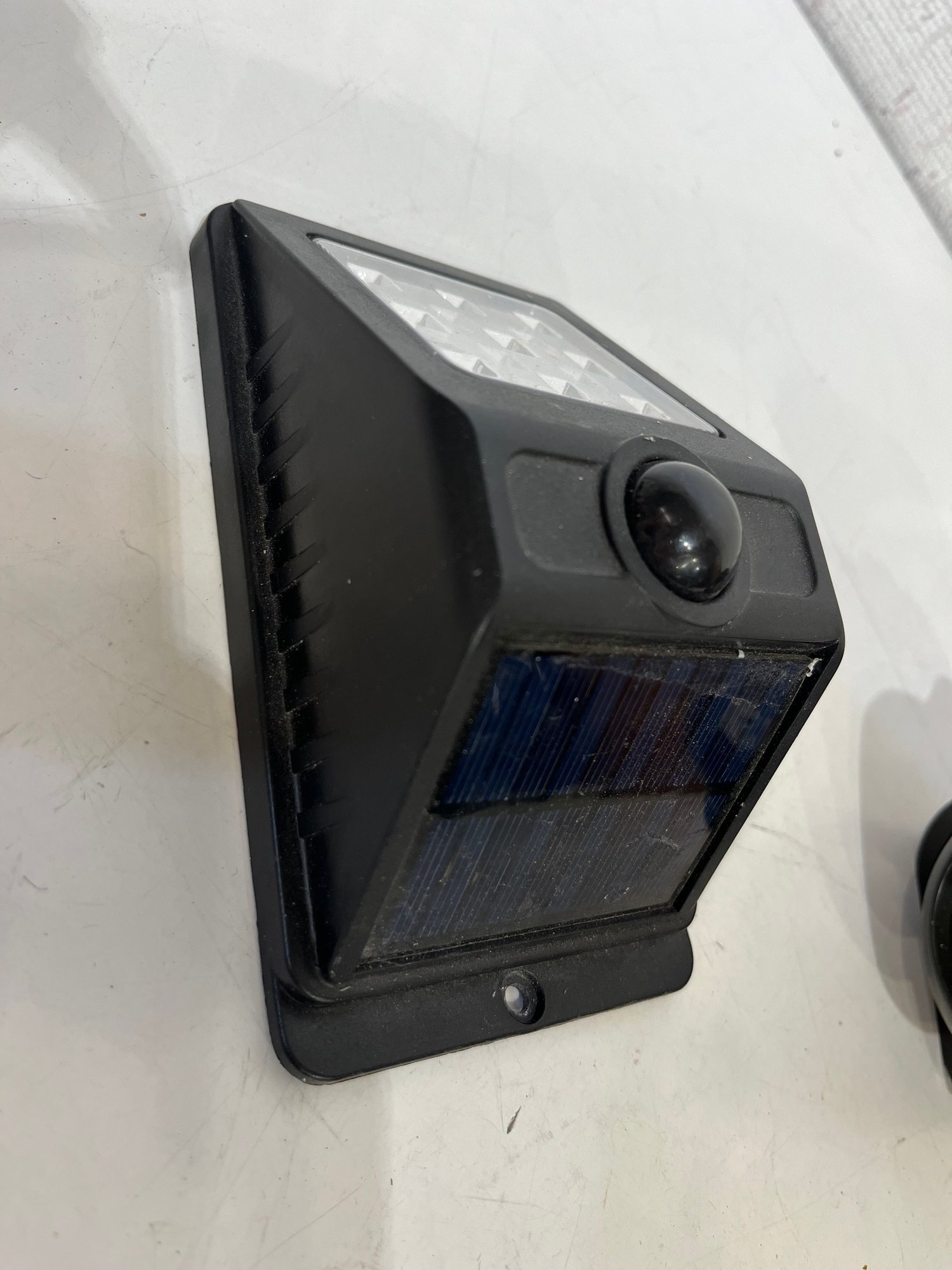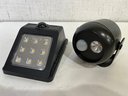 A black plastic solar-powered LED motion sensor outdoor wall light, and a Mr Beams Mini Spotlight, battery-powered, motion-activated mini LED spotlight. untested. These items can be shipped.