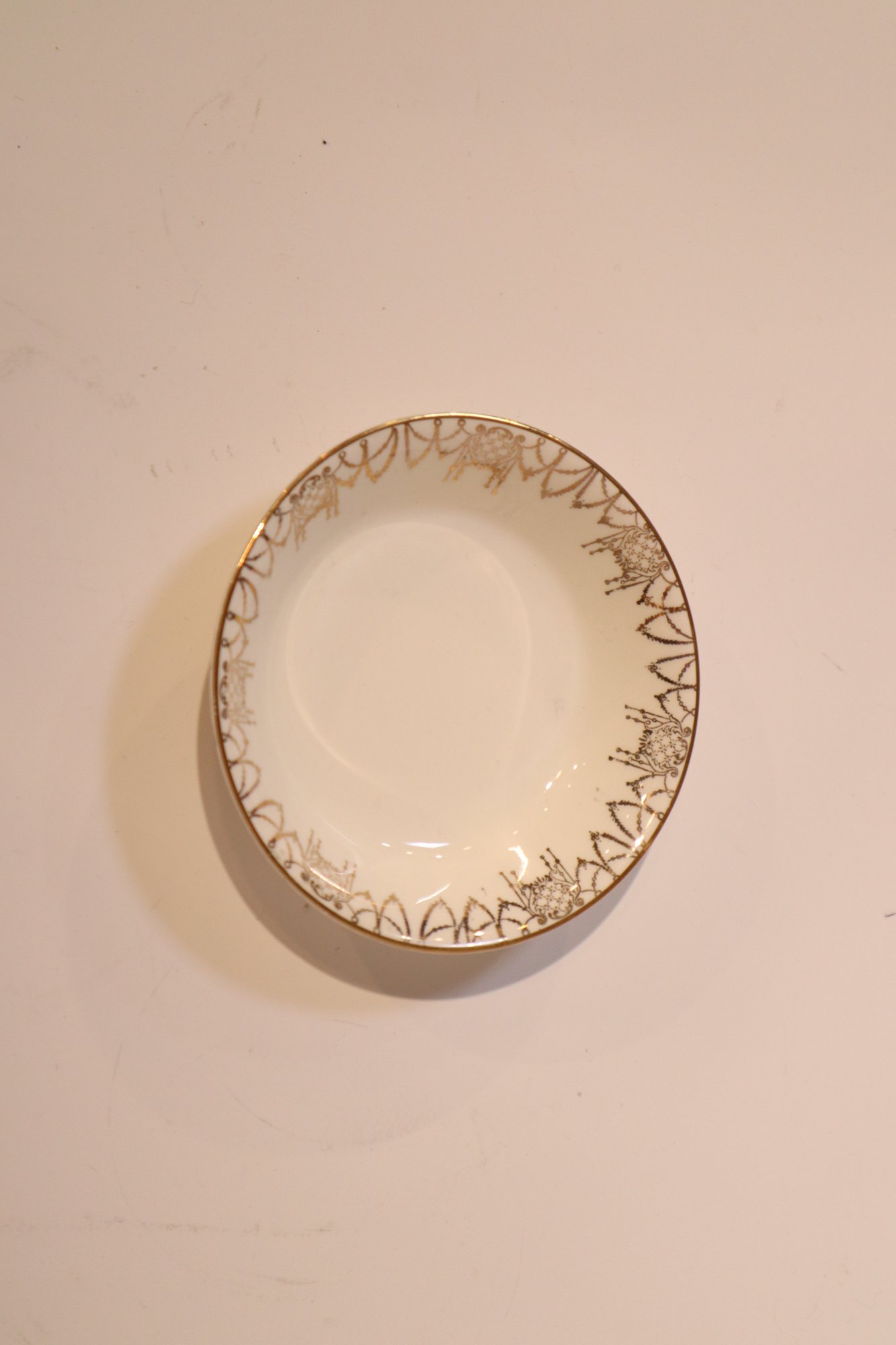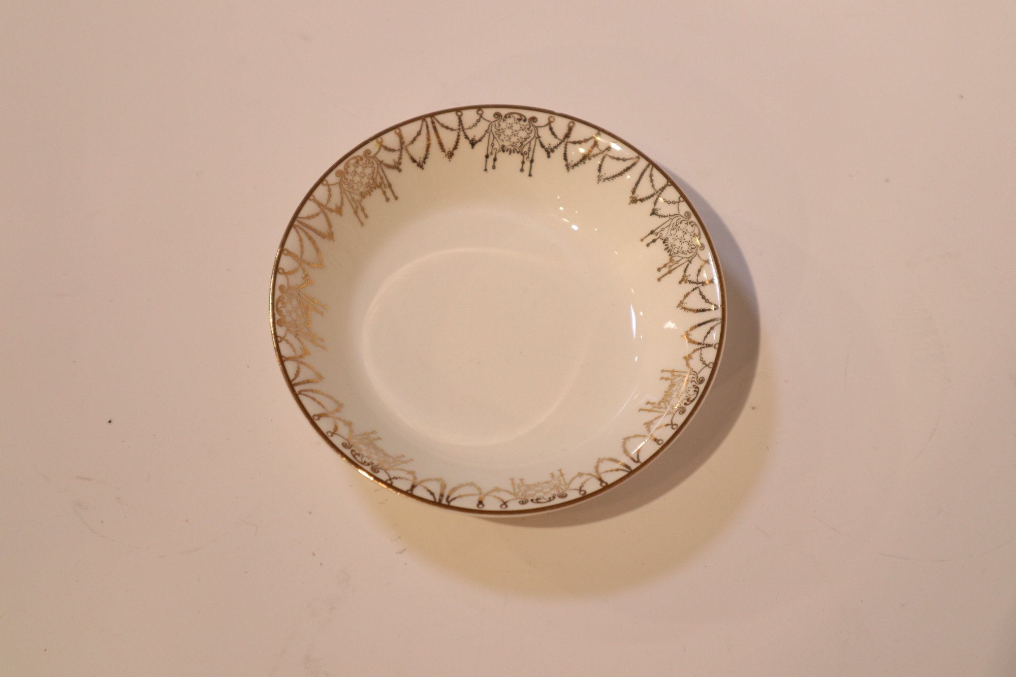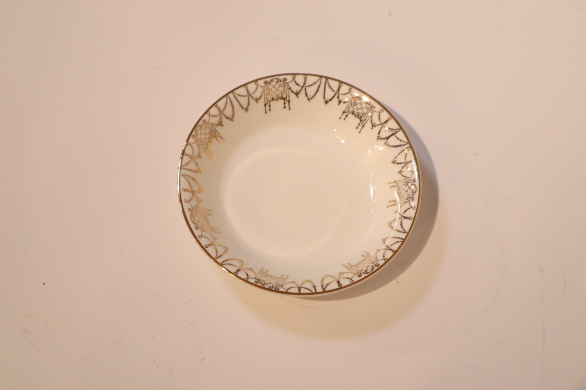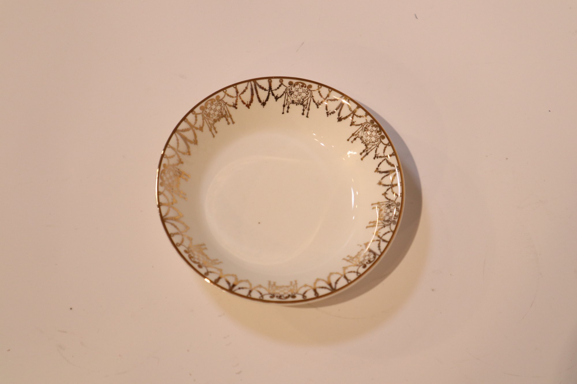 Notes: minor blemishes on the gold filigree and minor crazing on one of the larger bowls